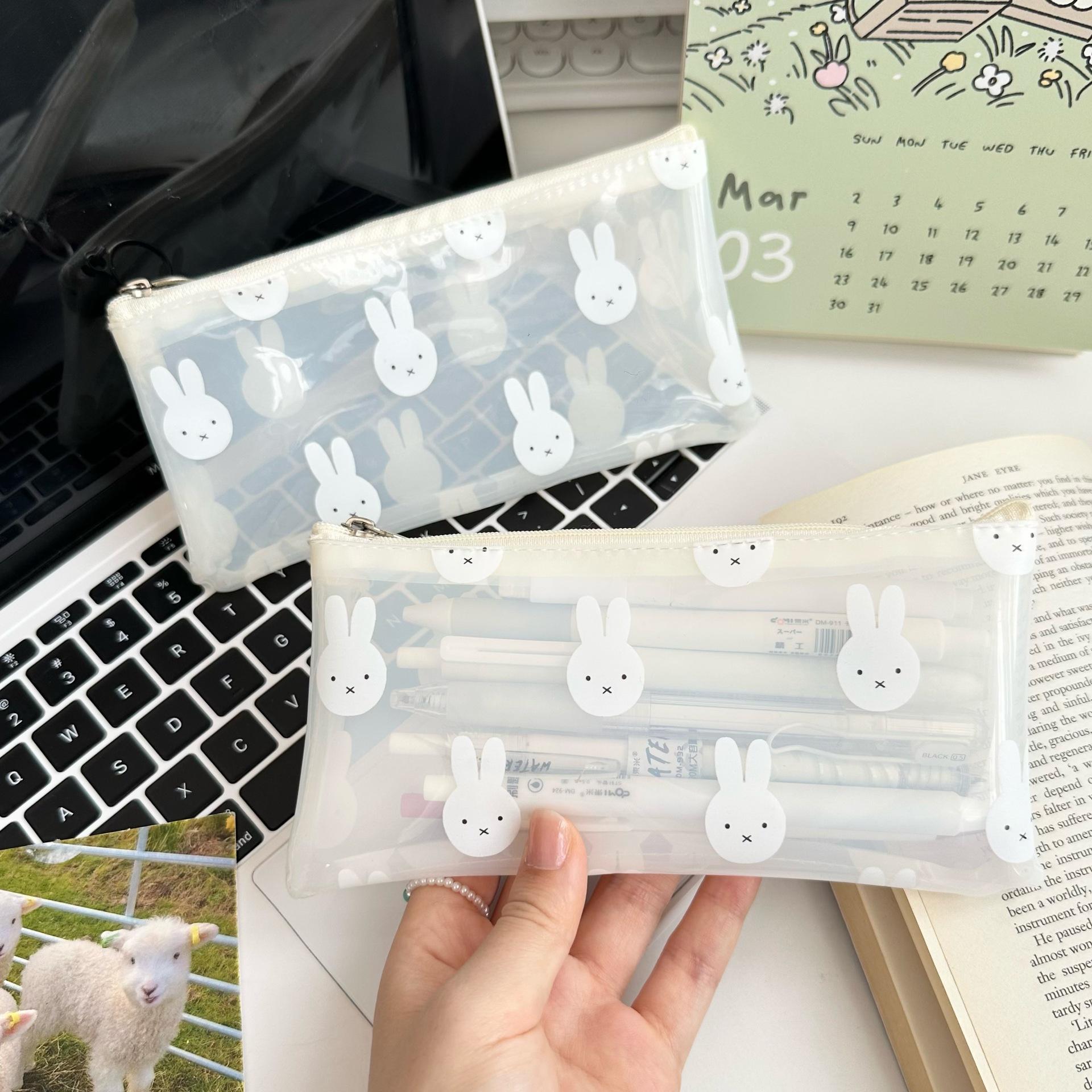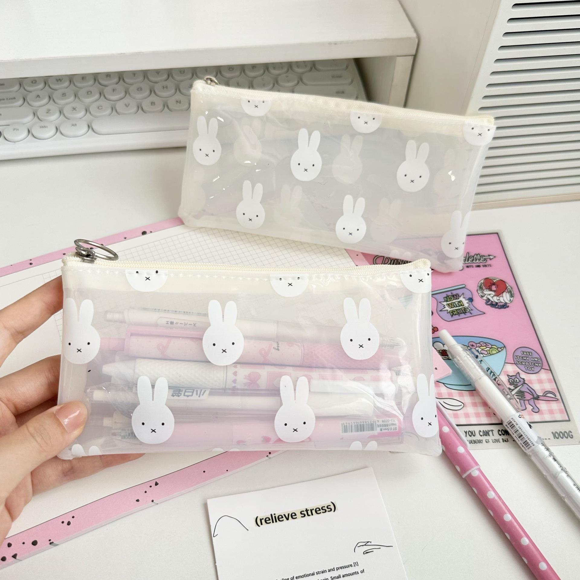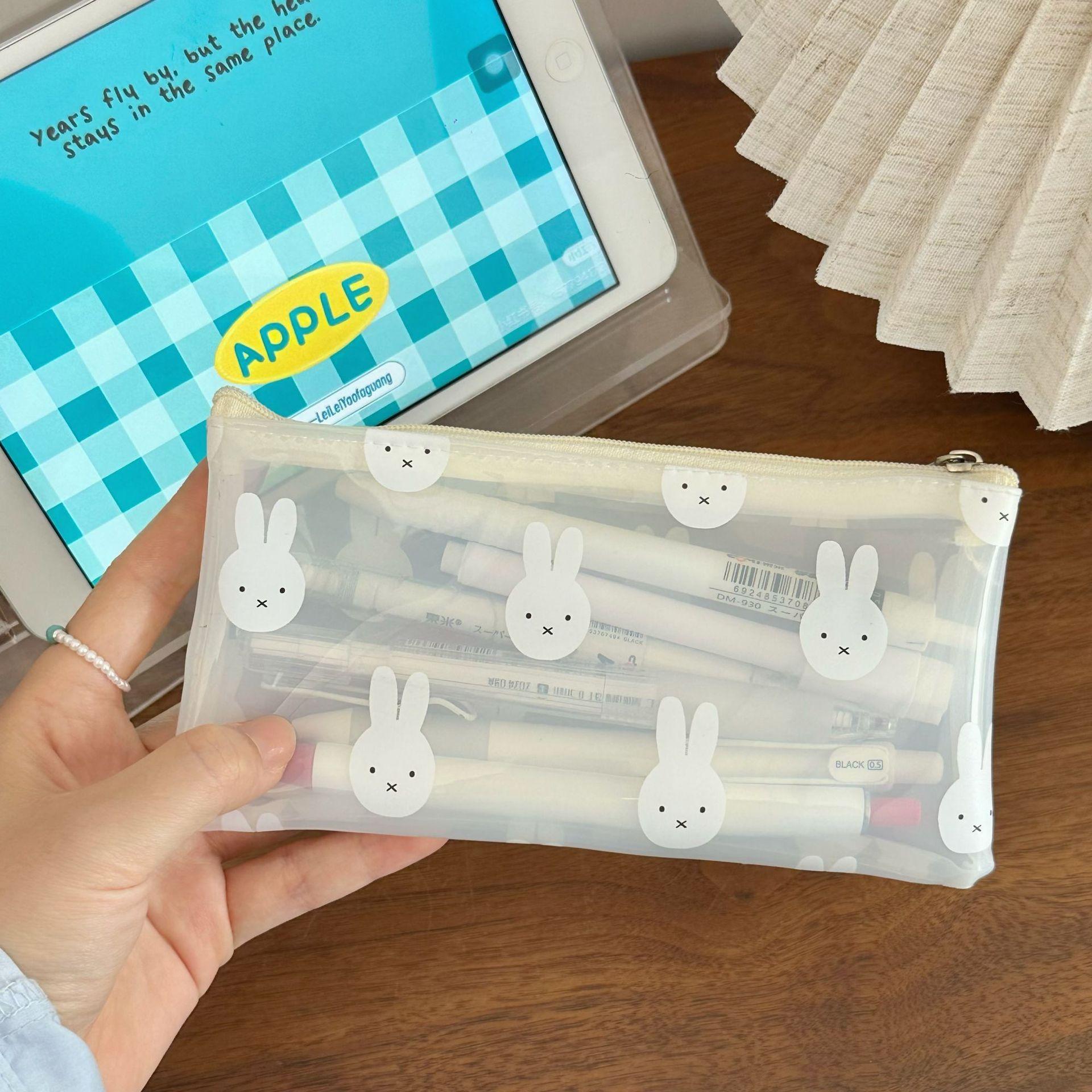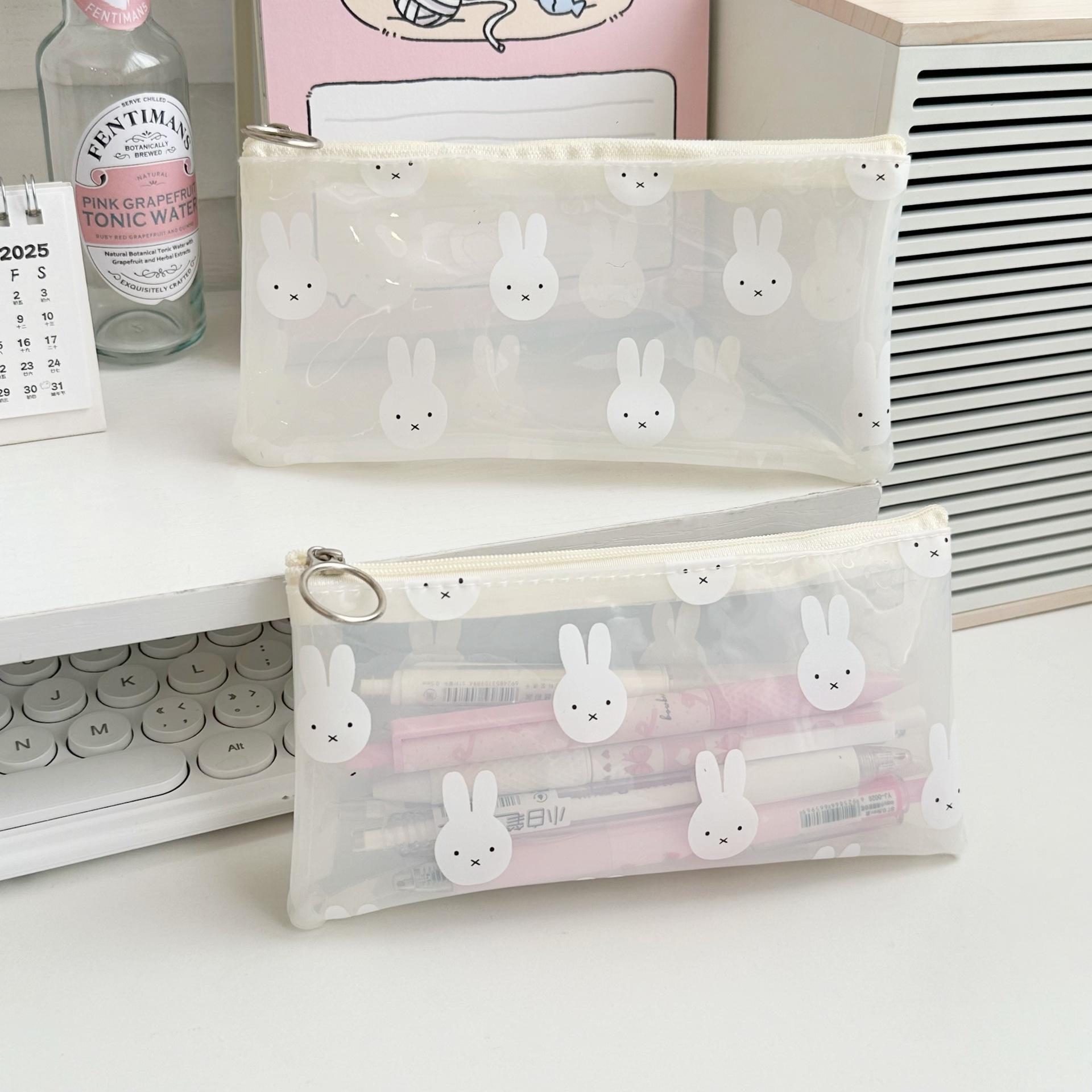 Linda Lapicera de Conejo Bolsa de Papelería Estampada de PVC 2025 Nueva Moda Estudiante Bolsa de Lápices Transparente Bolsa de Almacenamiento Impermeable