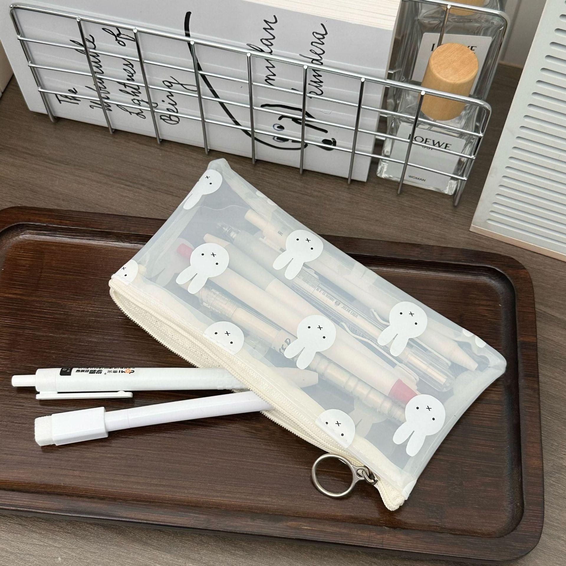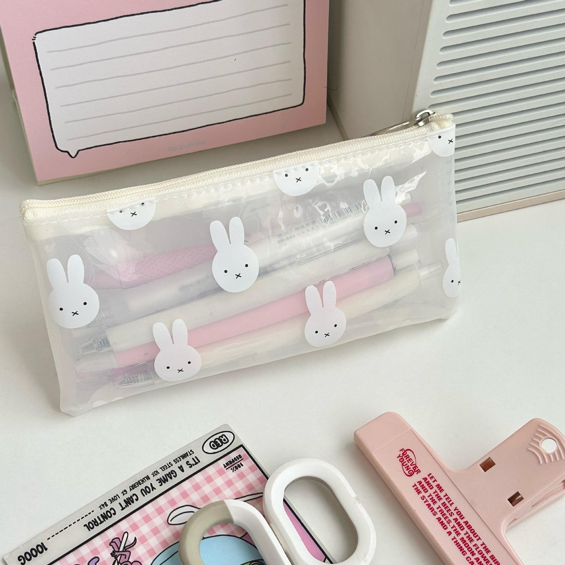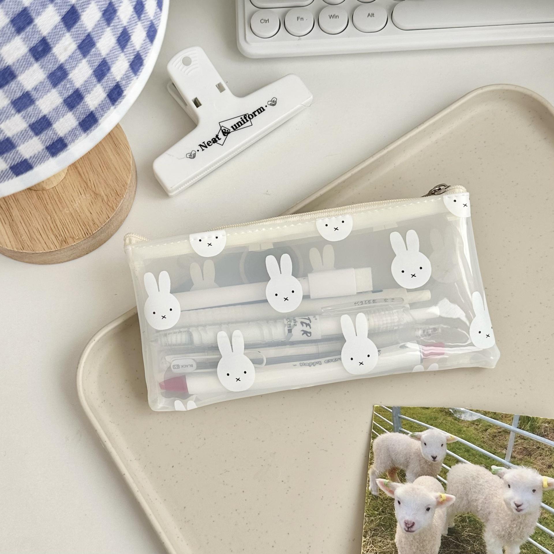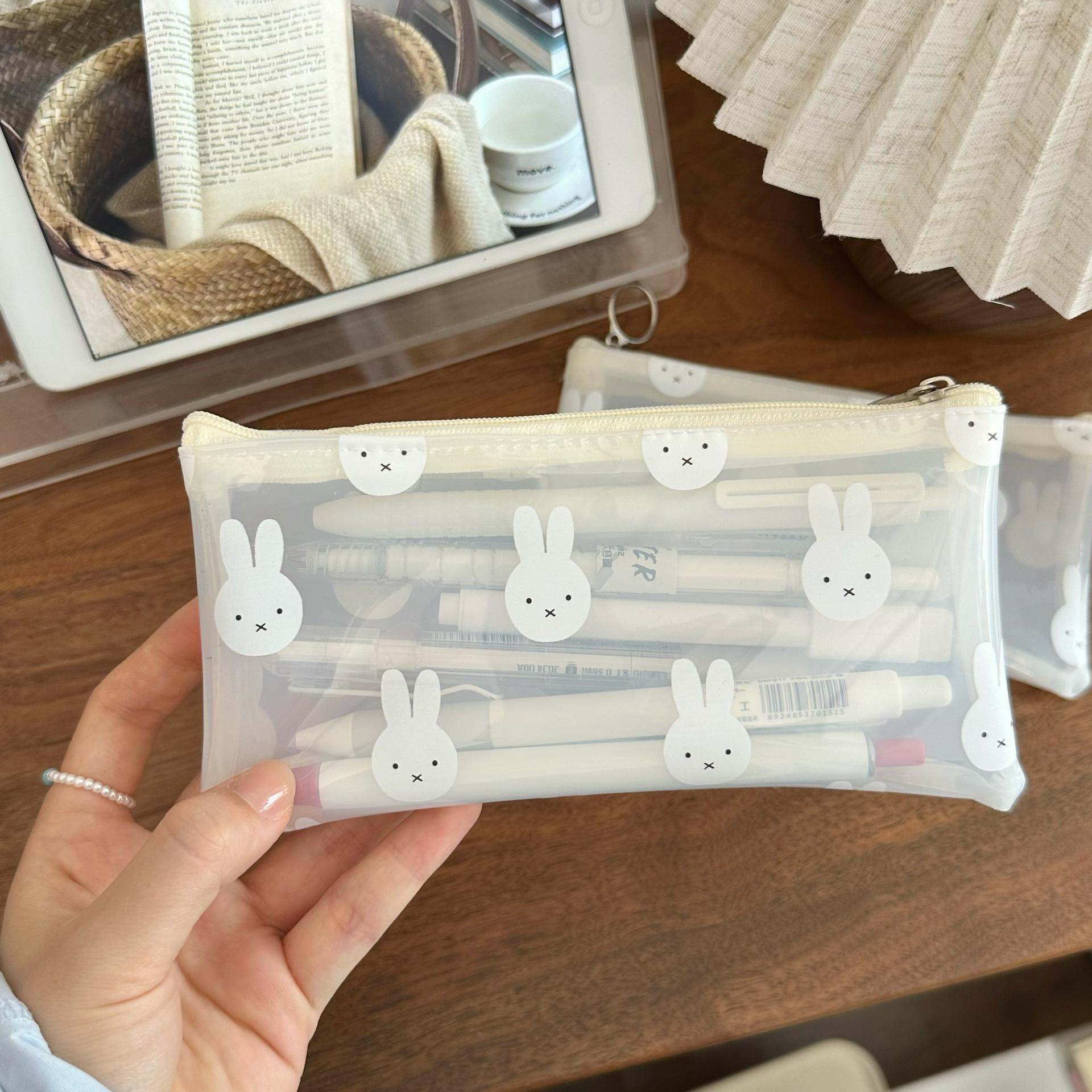 Linda Lapicera de Conejo Bolsa de Papelería Estampada de PVC 2025 Nueva Moda Estudiante Bolsa de Lápices Transparente Bolsa de Almacenamiento Impermeable
