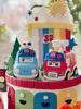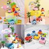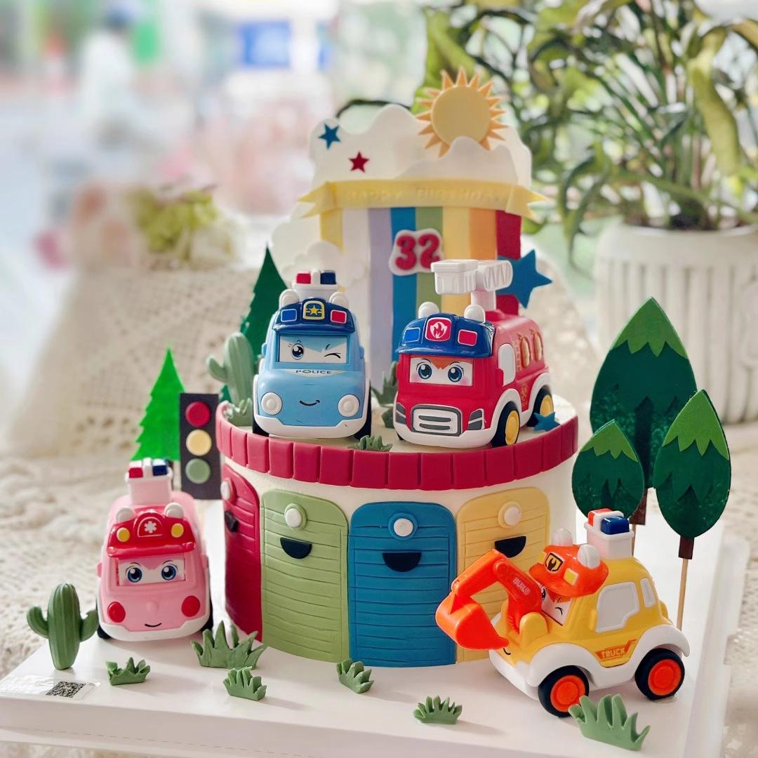 Q lindos niños Coche de prensa decoración de pastel de coche de policía de dibujos animados camión de bomberos excavadora adorno de vestido de cumpleaños