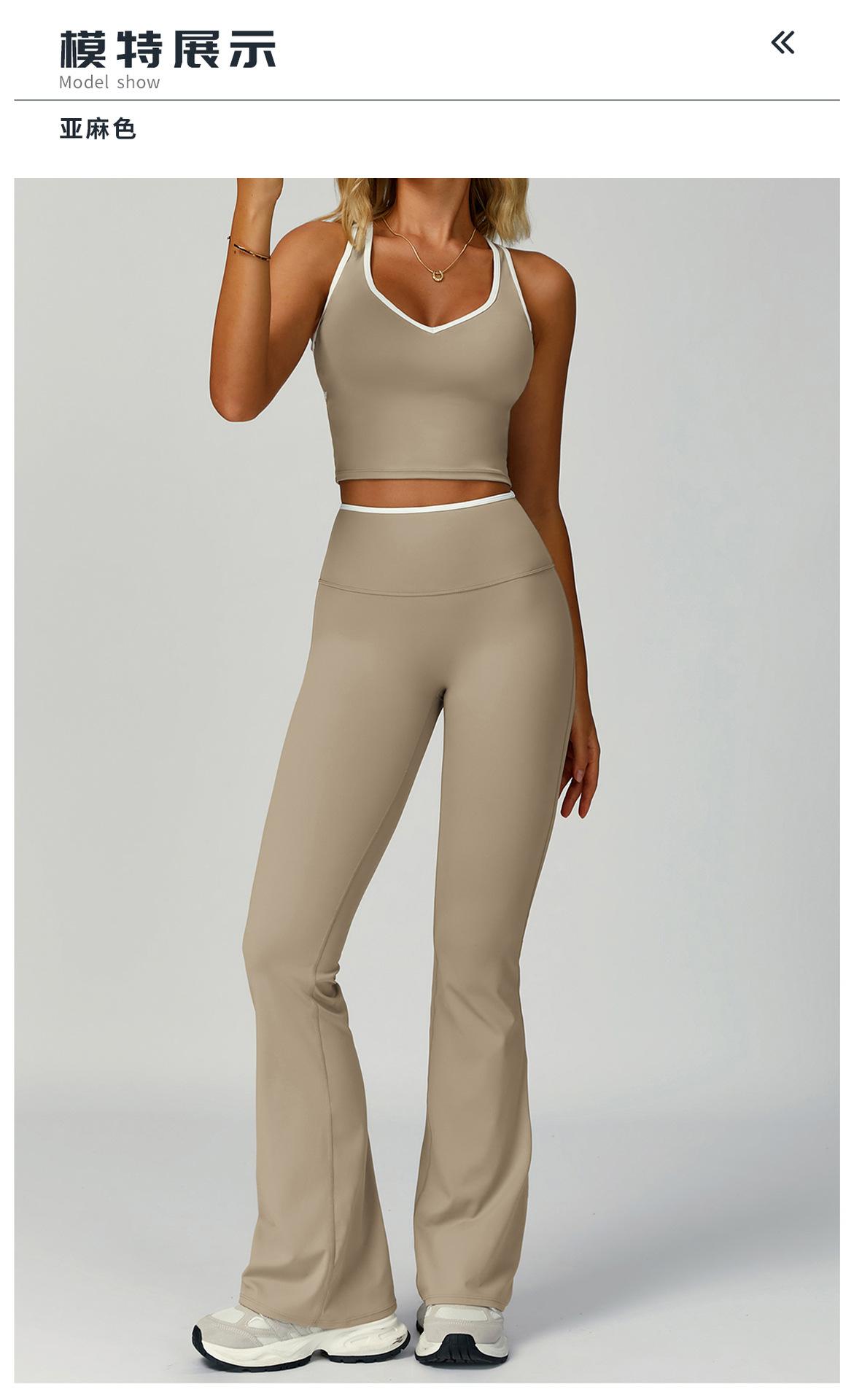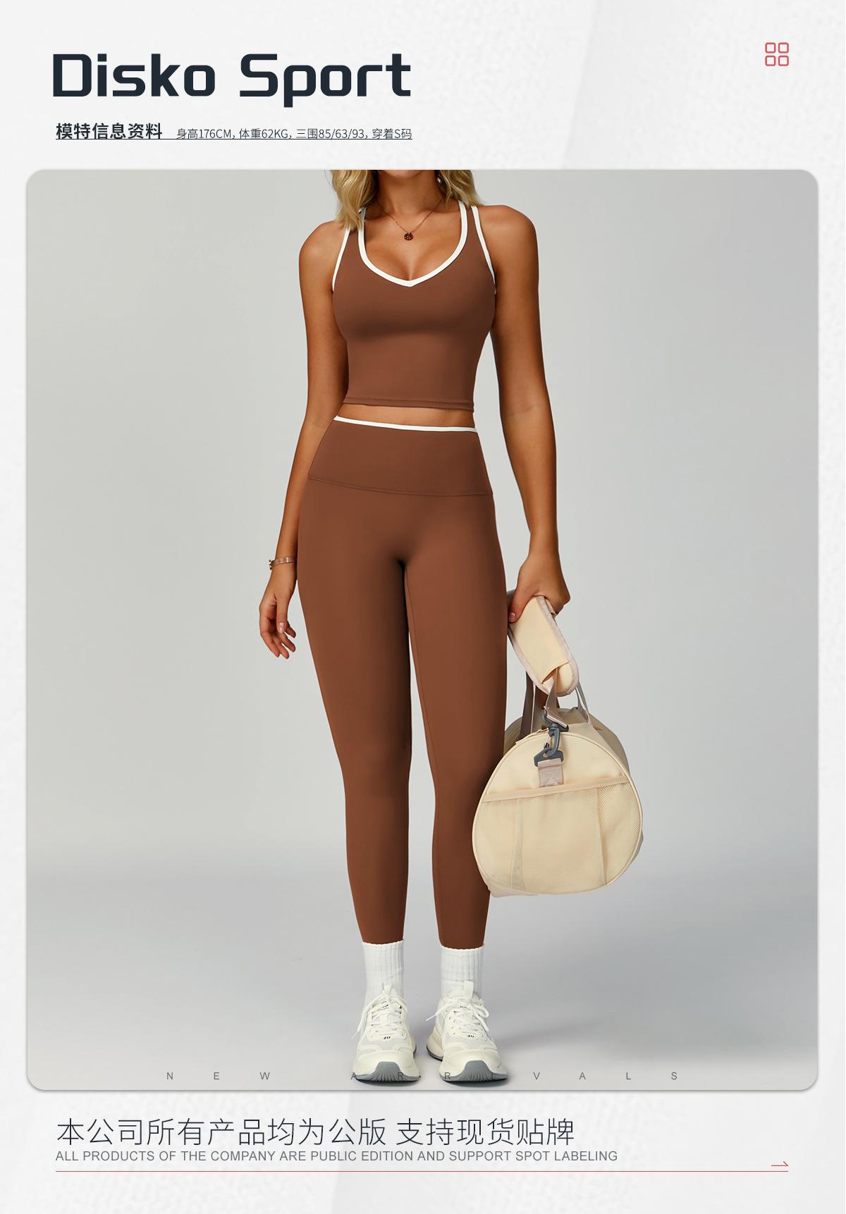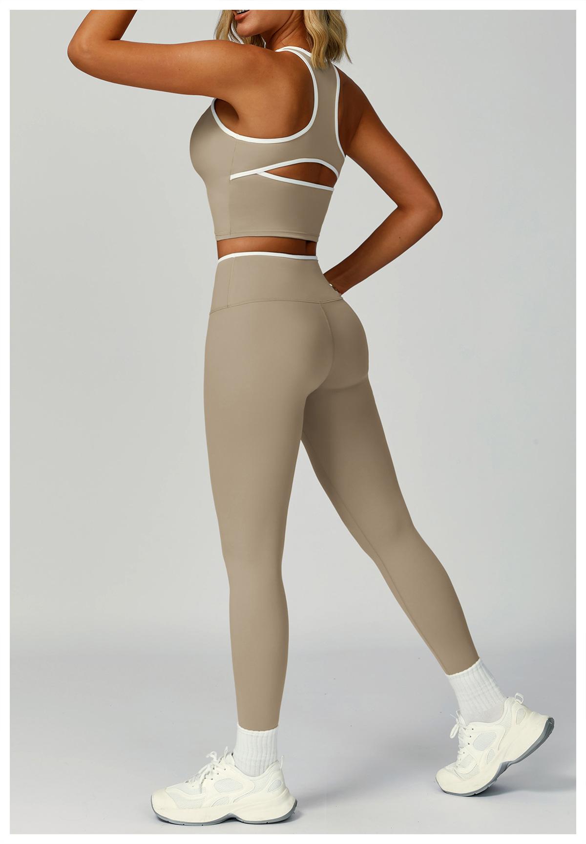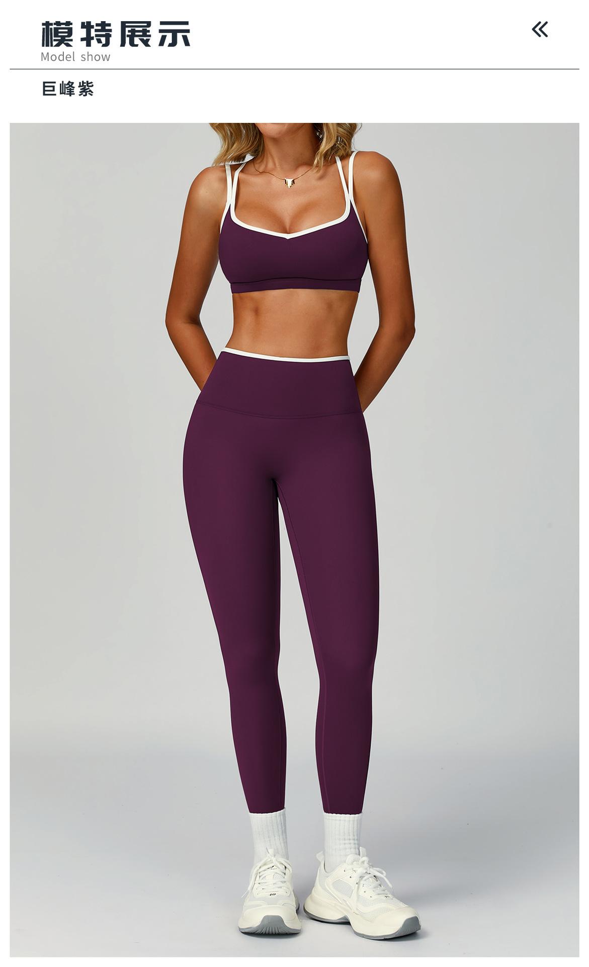 Traje Deportivo Ze Chuang con Ribete de Color en Contraste para Mujer, Ajustado, Espalda Hermosa, Conjunto de Yoga con Sensación de Desnudez, Traje Deportivo para Fitness al Aire Libre 9238