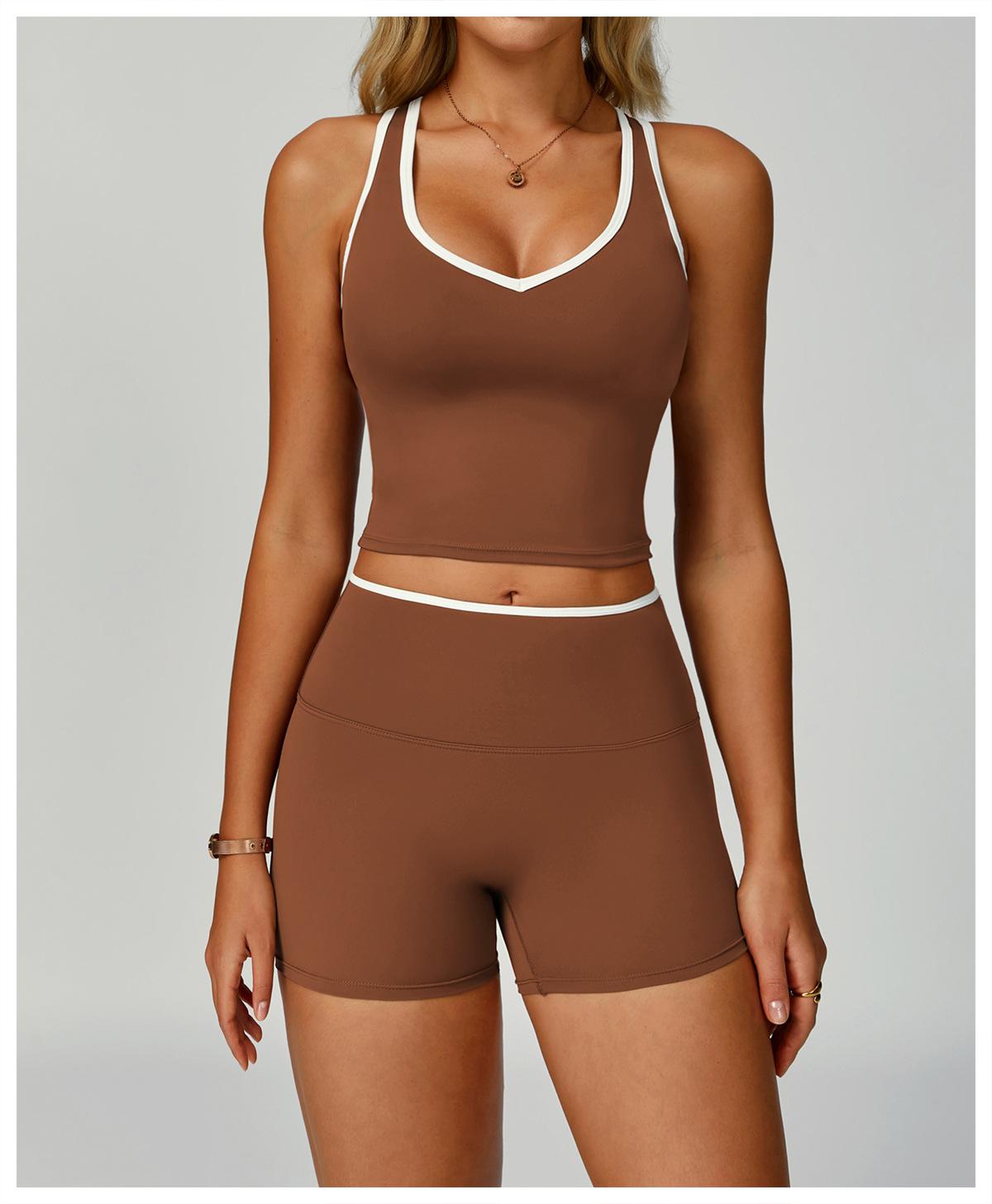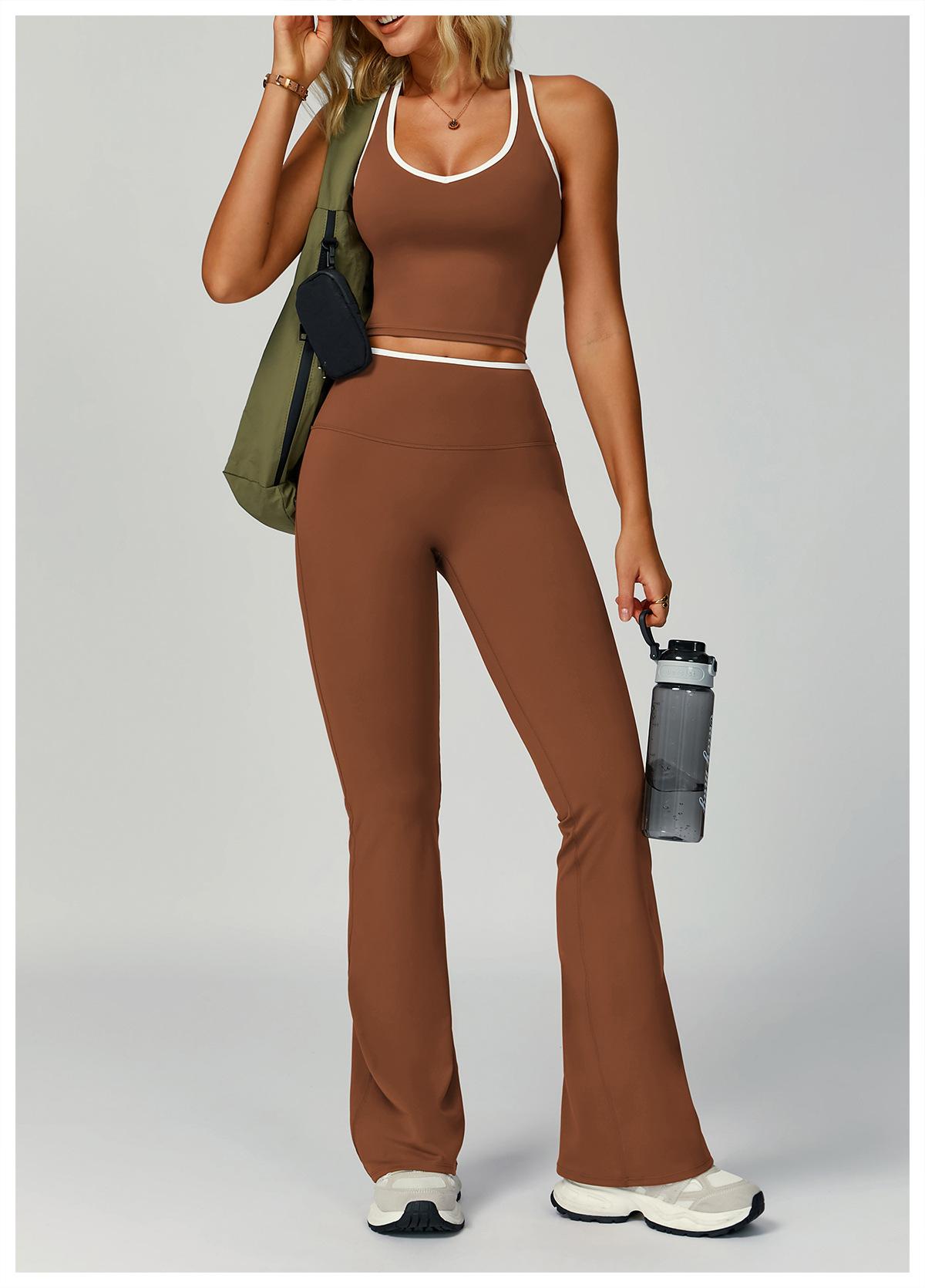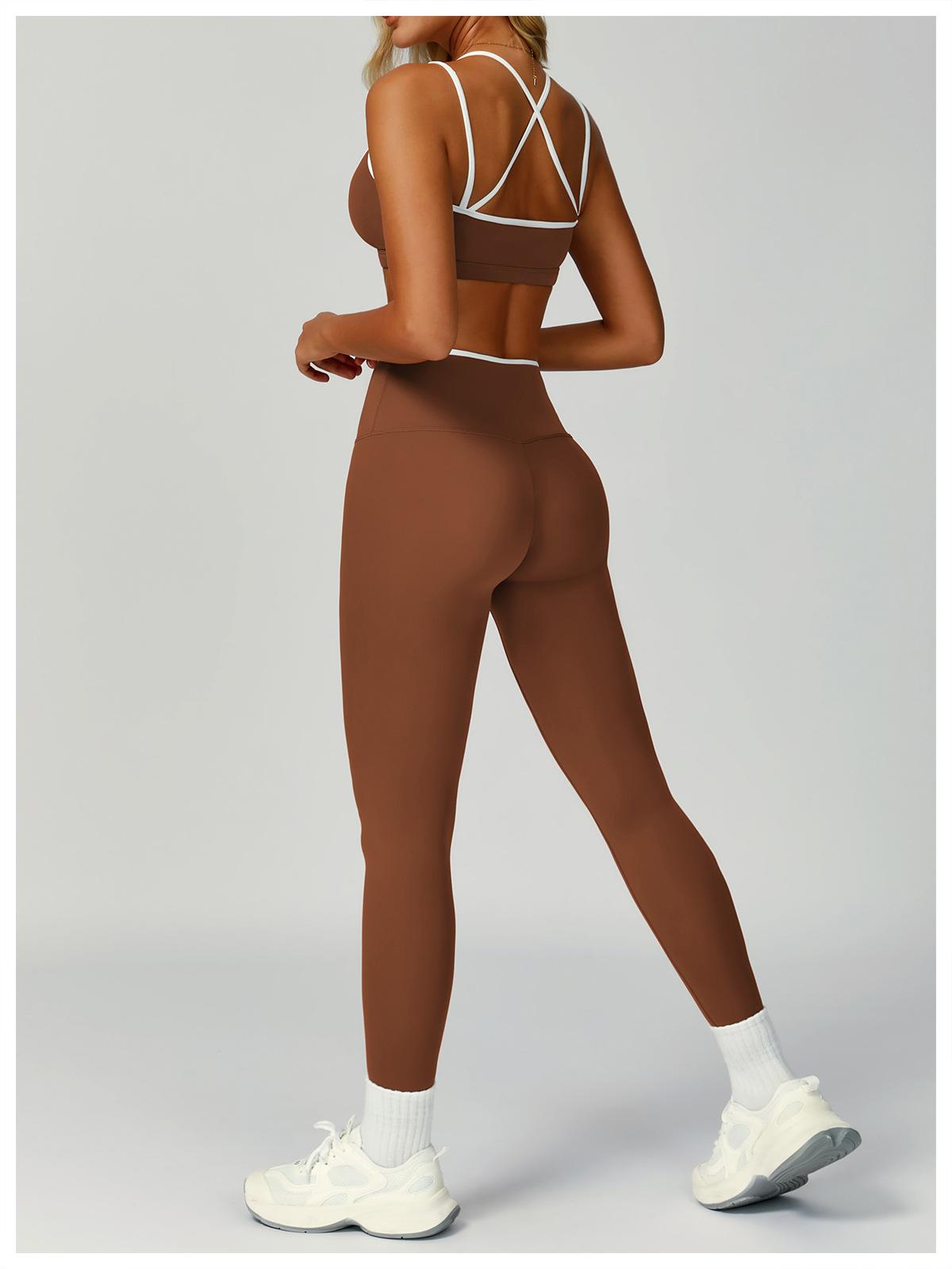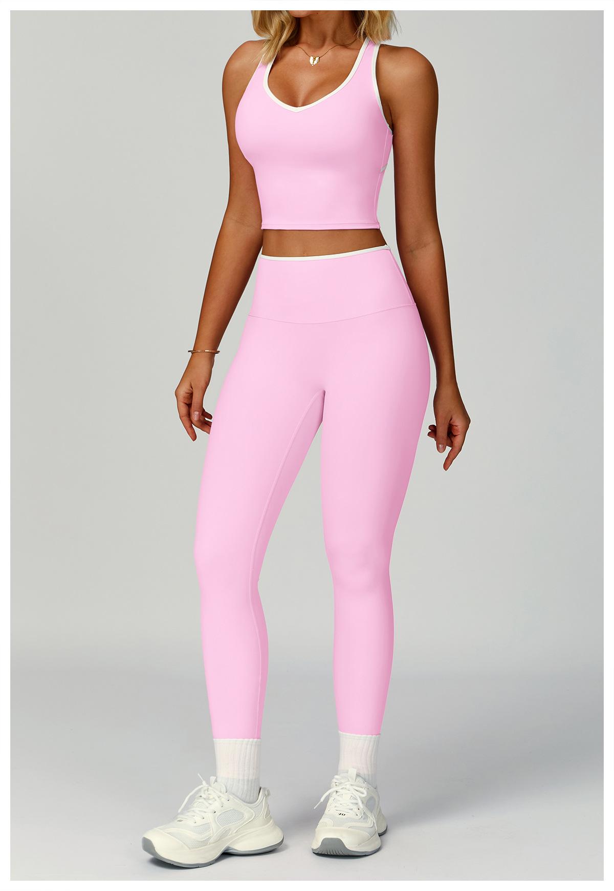 Traje Deportivo Ze Chuang con Ribete de Color en Contraste para Mujer, Ajustado, Espalda Hermosa, Conjunto de Yoga con Sensación de Desnudez, Traje Deportivo para Fitness al Aire Libre 9238
