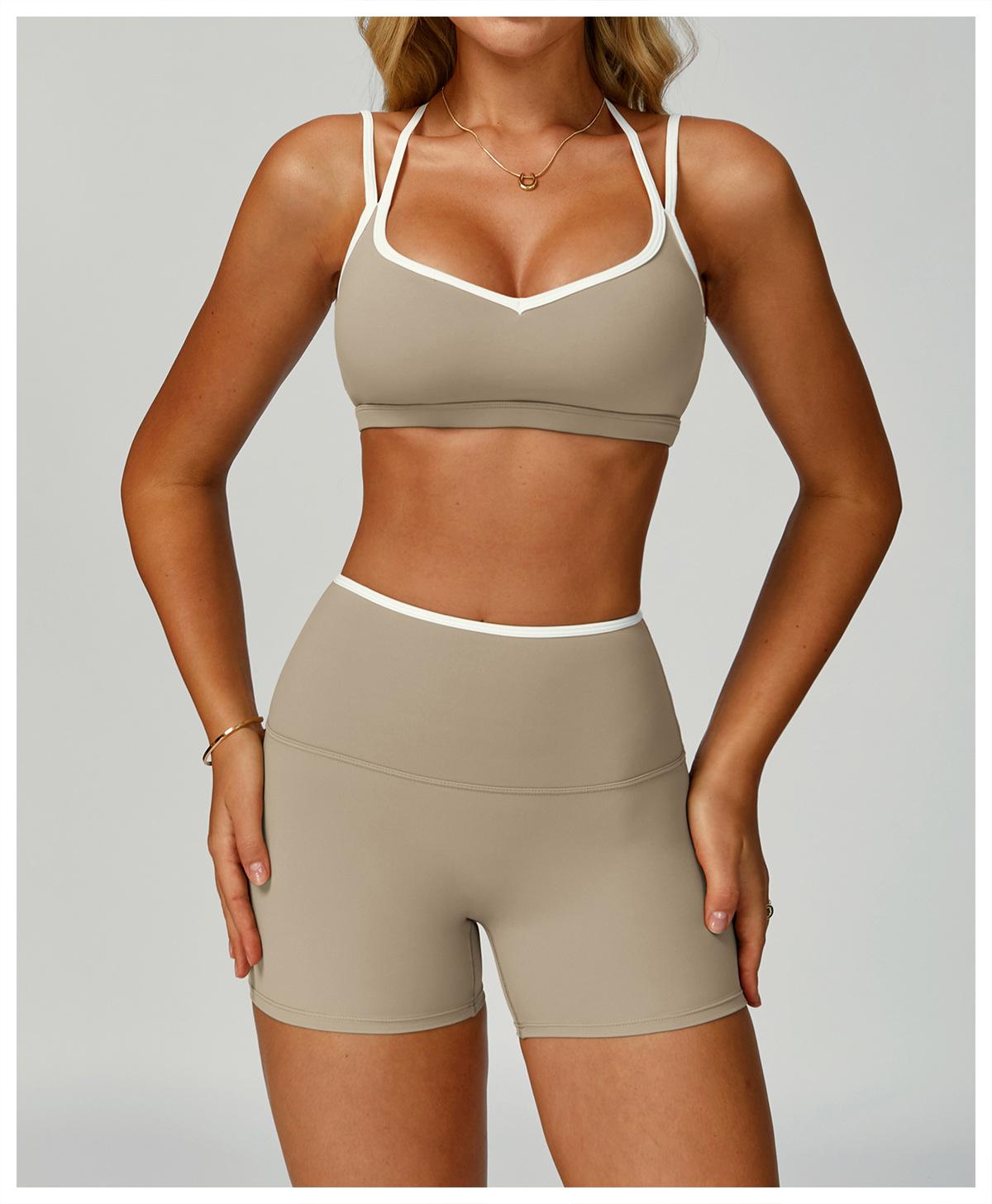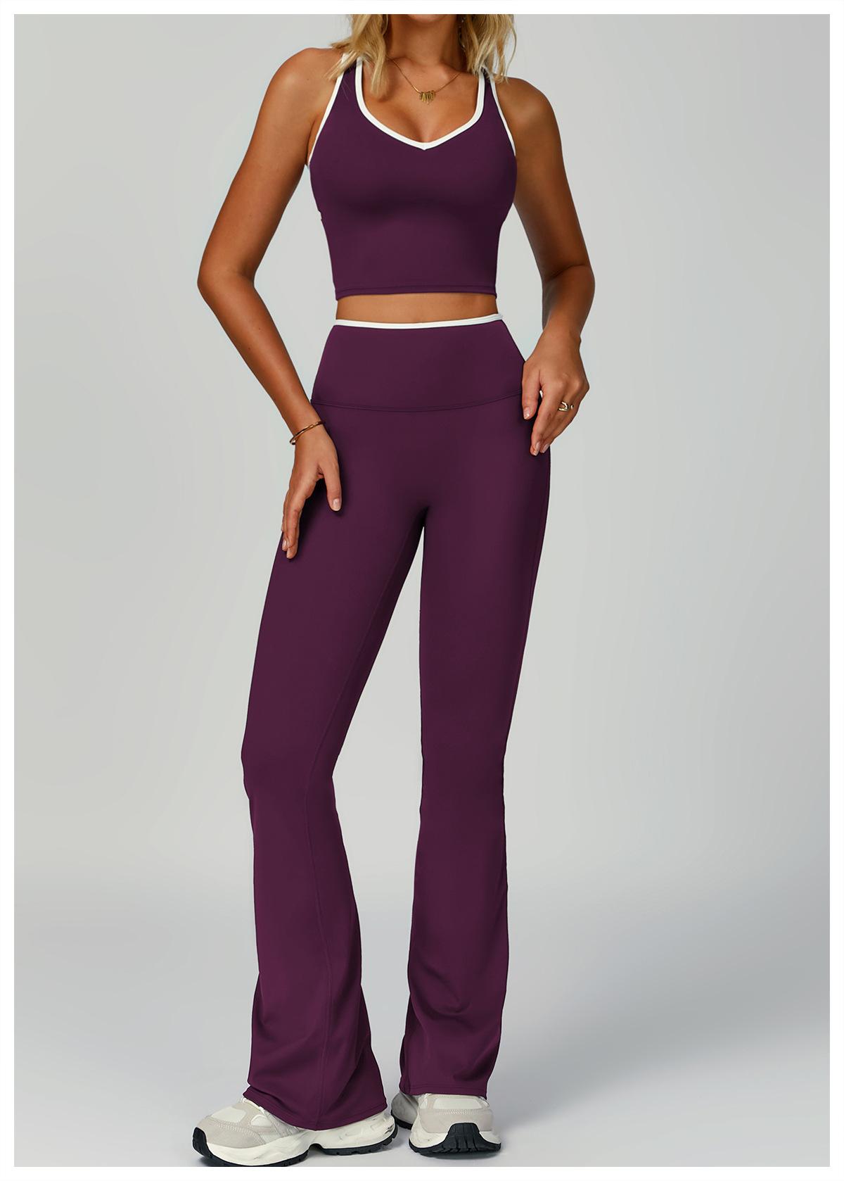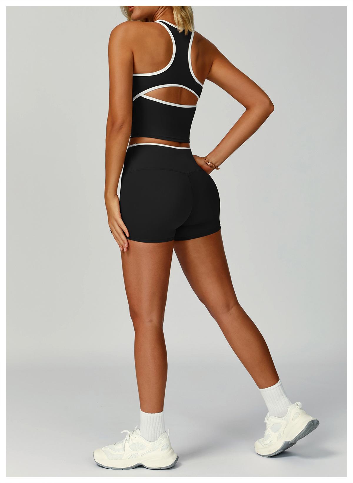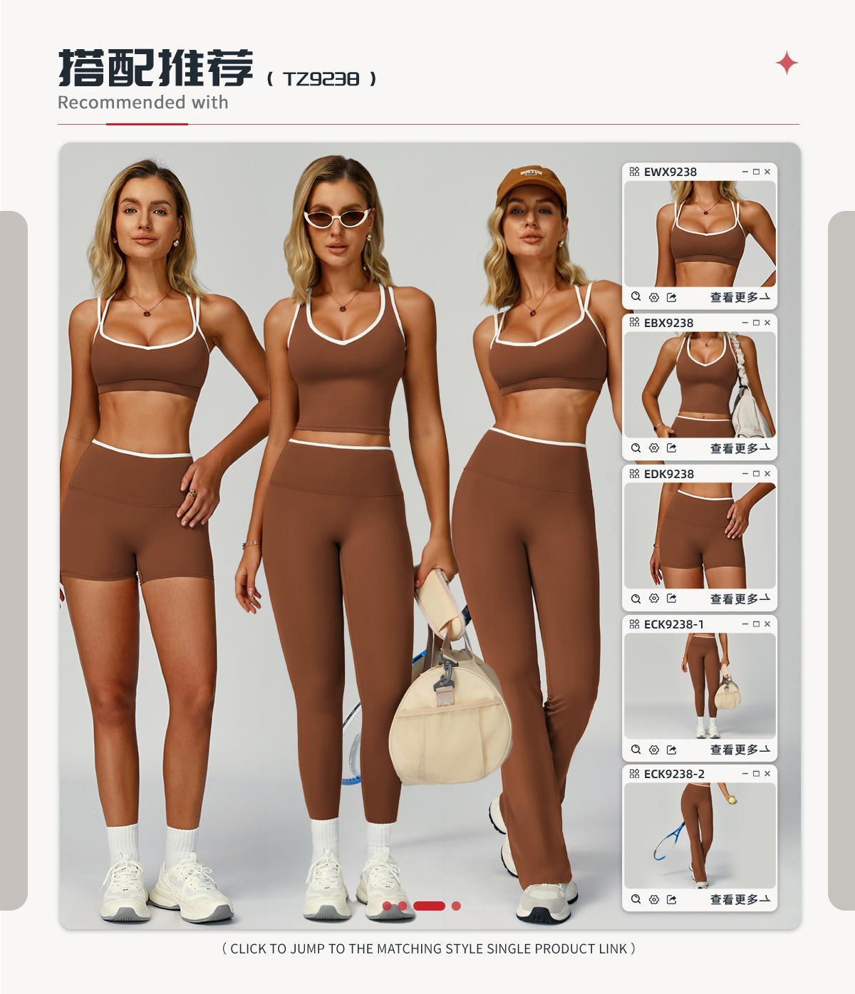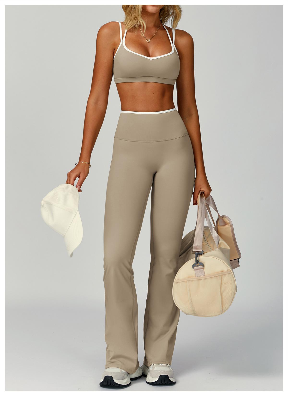 Traje Deportivo Ze Chuang con Ribete de Color en Contraste para Mujer, Ajustado, Espalda Hermosa, Conjunto de Yoga con Sensación de Desnudez, Traje Deportivo para Fitness al Aire Libre 9238