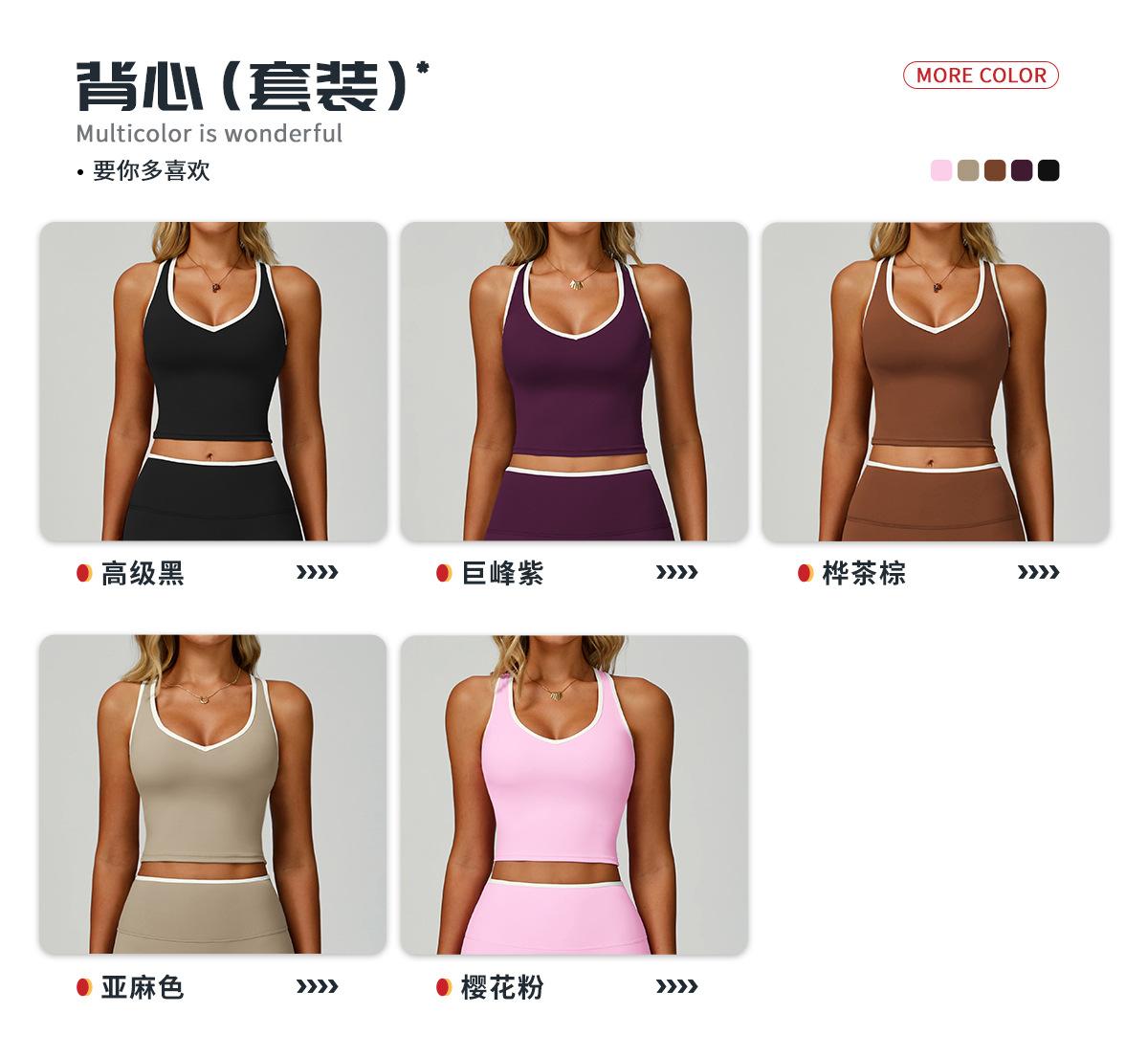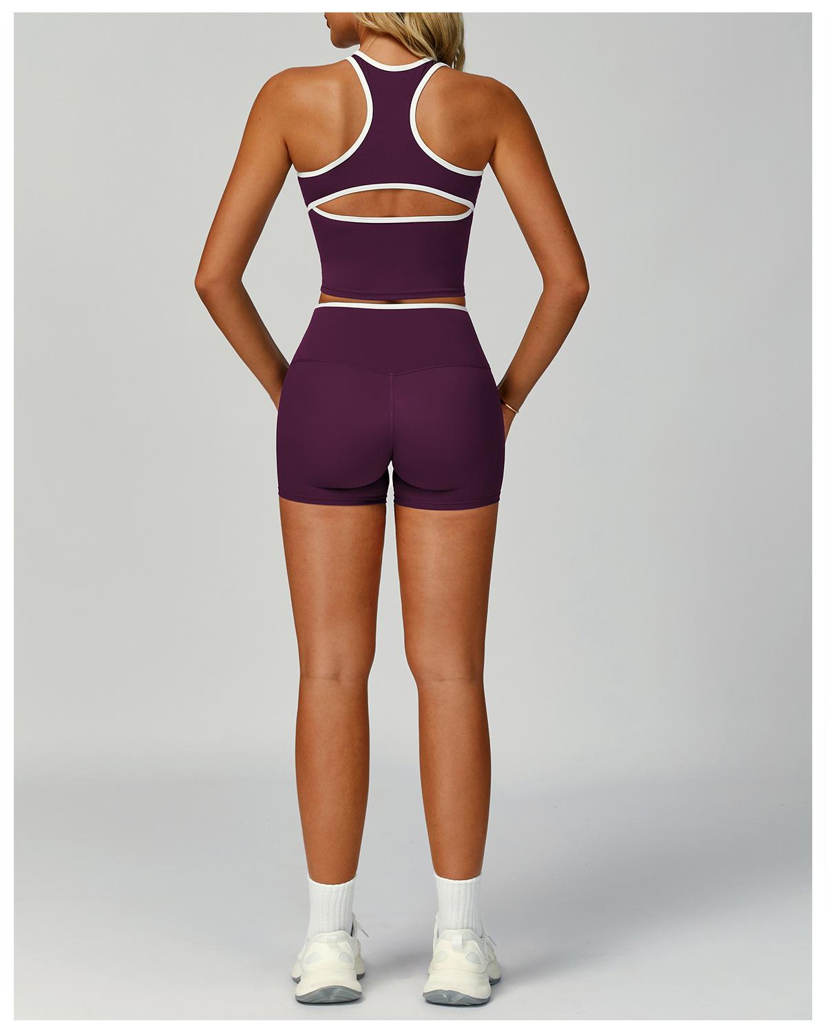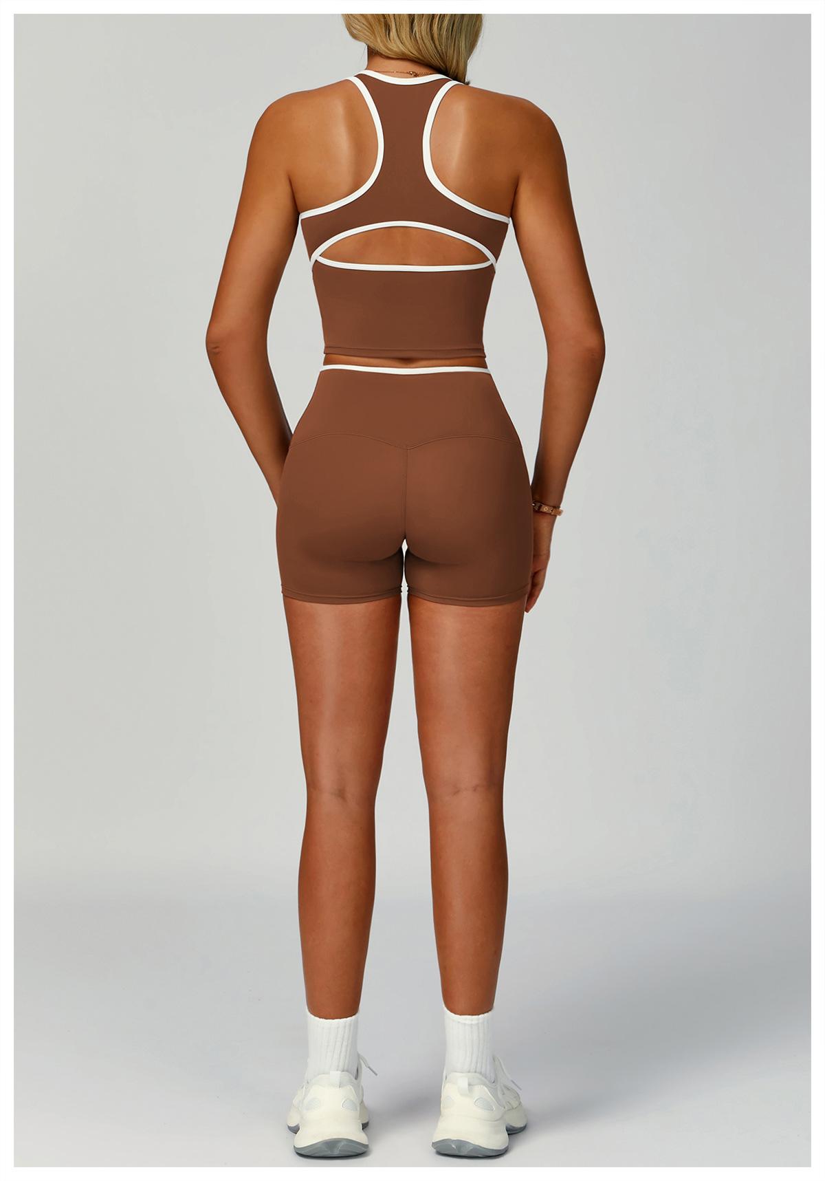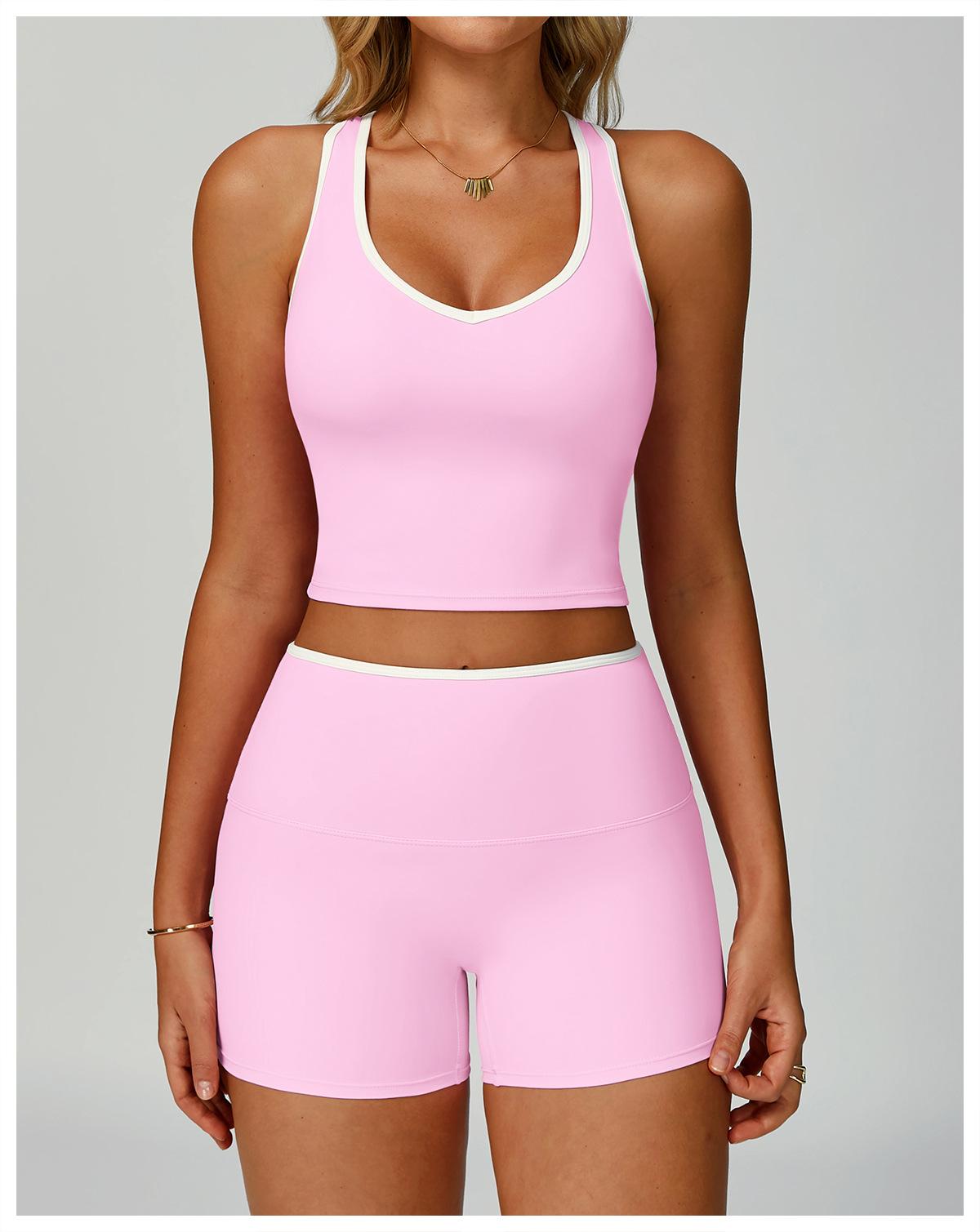 Traje Deportivo Ze Chuang con Ribete de Color en Contraste para Mujer, Ajustado, Espalda Hermosa, Conjunto de Yoga con Sensación de Desnudez, Traje Deportivo para Fitness al Aire Libre 9238