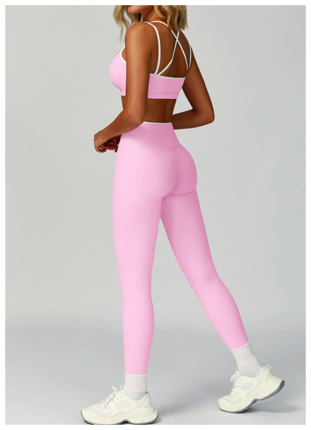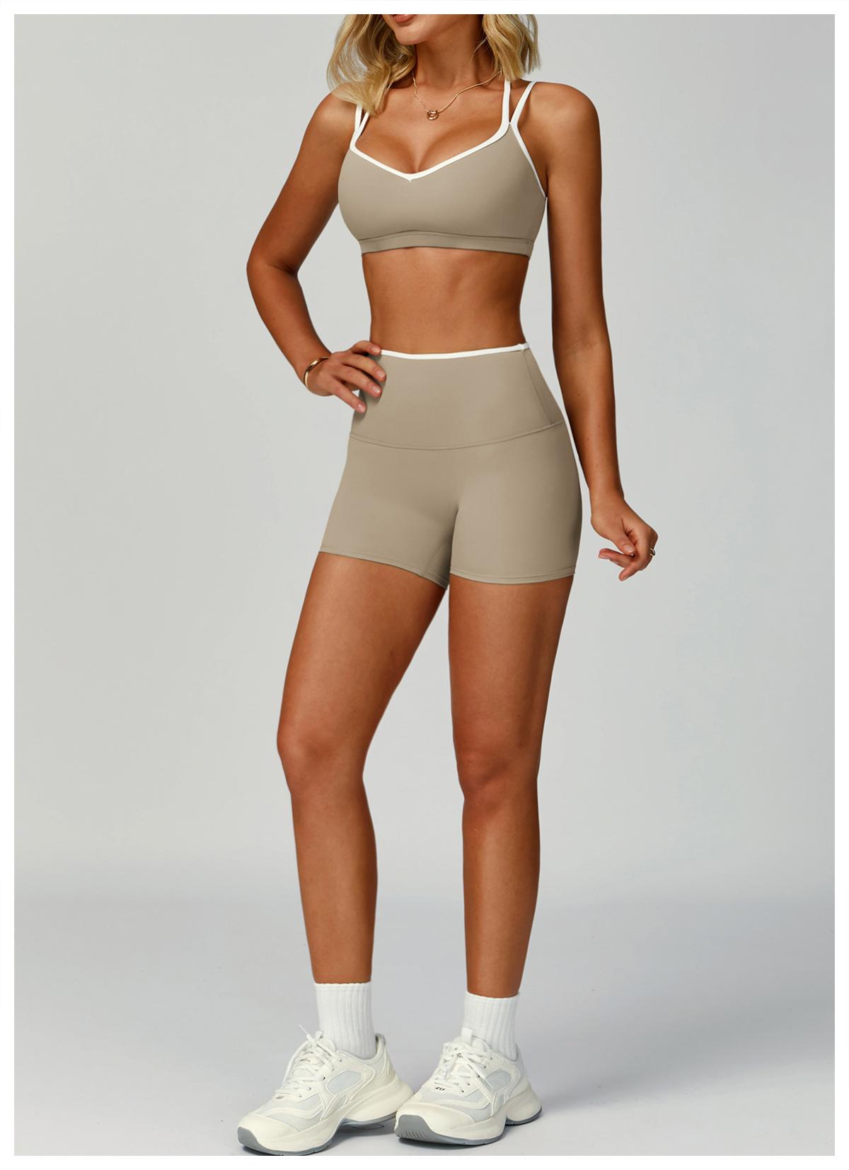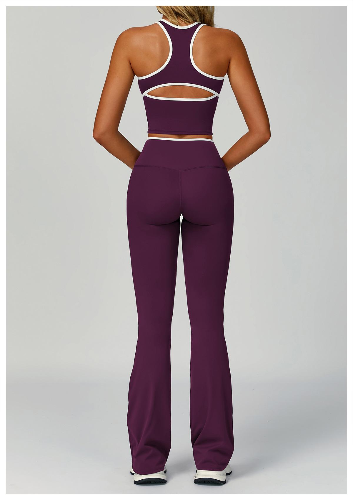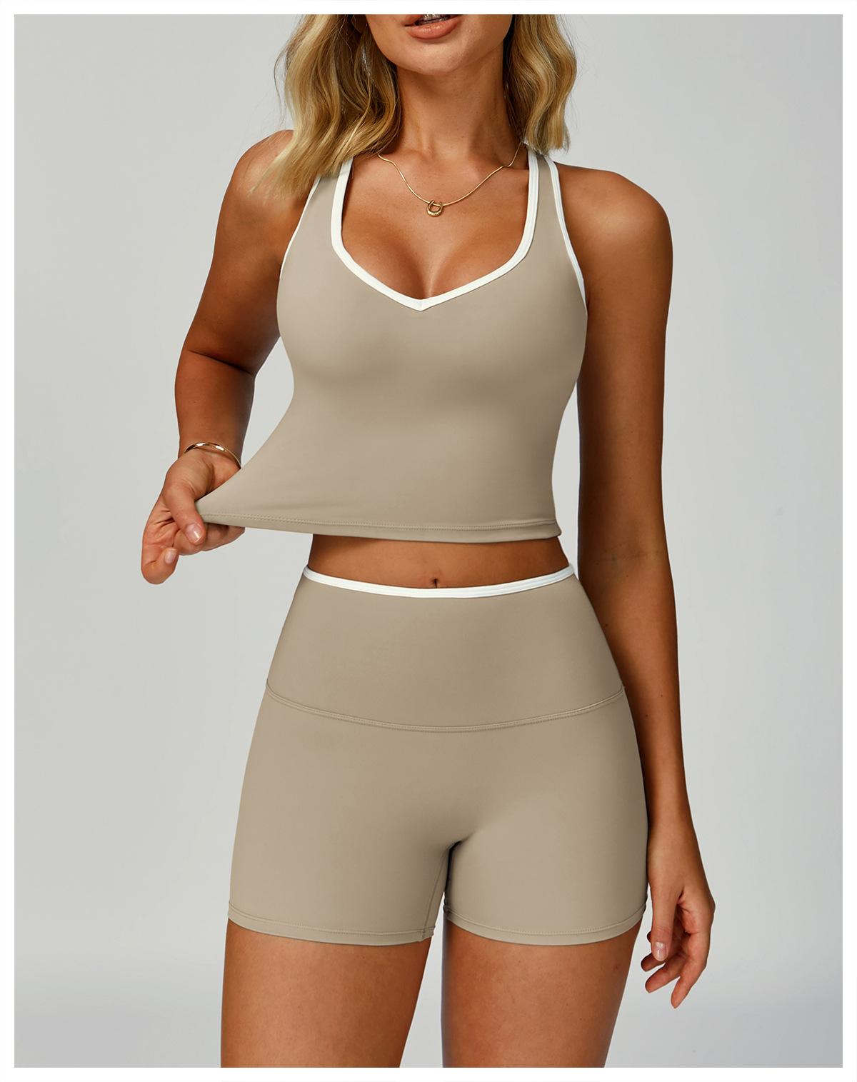 Traje Deportivo Ze Chuang con Ribete de Color en Contraste para Mujer, Ajustado, Espalda Hermosa, Conjunto de Yoga con Sensación de Desnudez, Traje Deportivo para Fitness al Aire Libre 9238