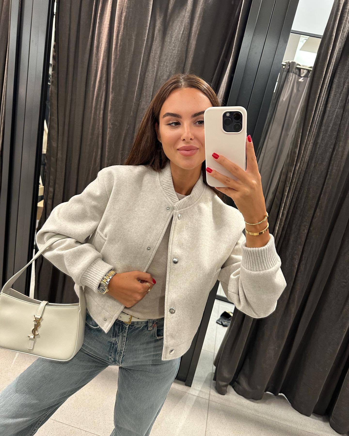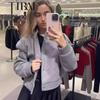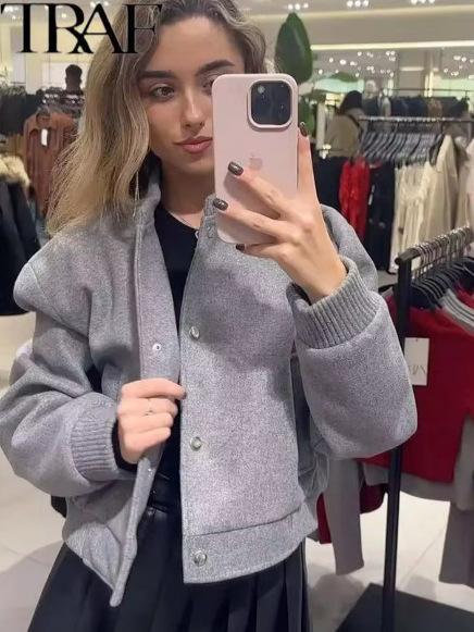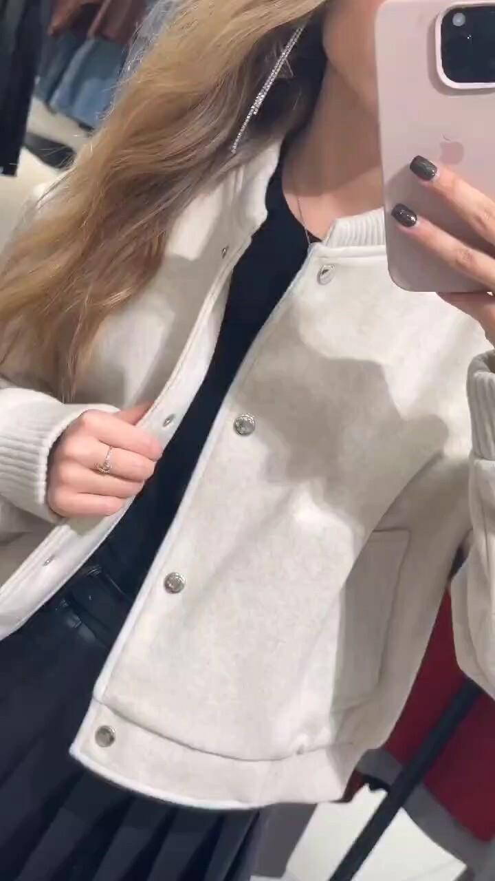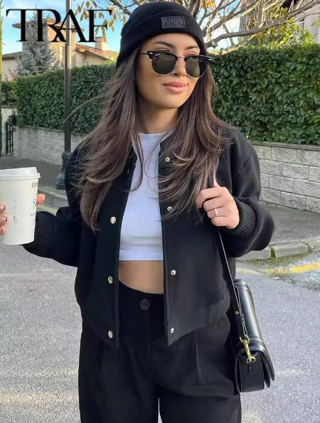 Ropa Popular de Mujer Transfronteriza Europea y Americana Otoño e Invierno Nueva Cremallera Cuello Alto Uniforme de Béisbol Casual y Versátil
