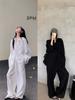 Estilo Coreano Suelto y Relajado de Longitud Media Nueva Camisa de Manga Larga Traje de Lino para Principios de Otoño Pantalones de Pierna Ancha Conjunto Casual de Dos Piezas