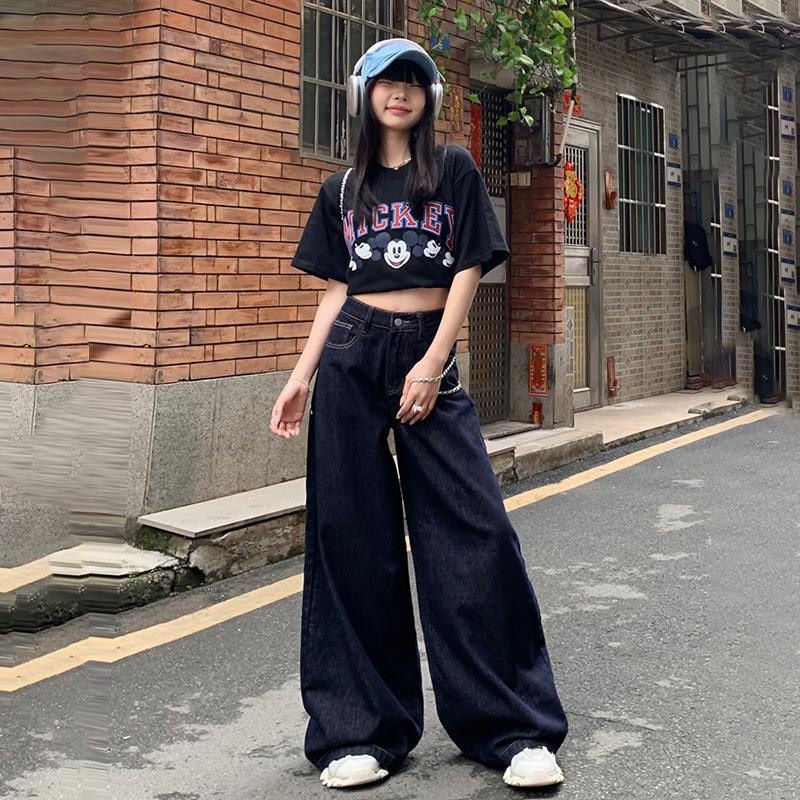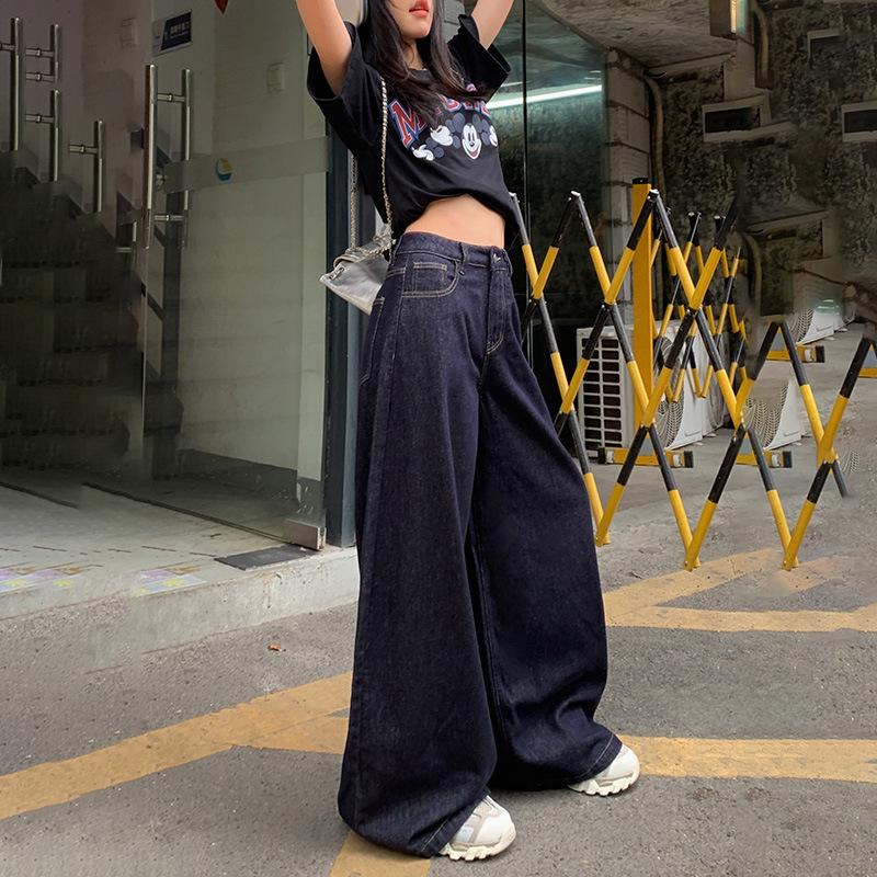 Talla grande Jeans Retro para Mujer Primavera 2025 Nuevo niña gordita Sueltos Cintura Alta Adelgazantes Pierna Recta Pantalones de Pierna Ancha