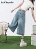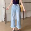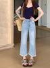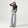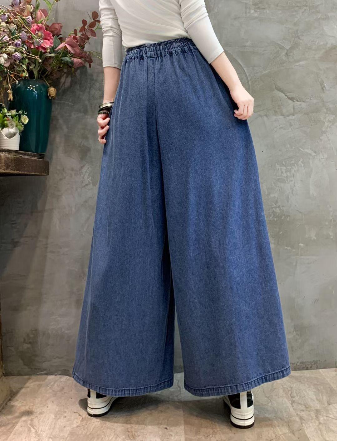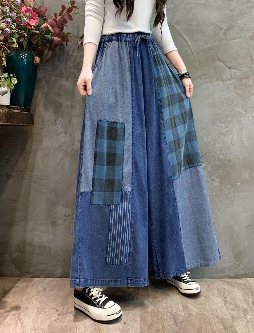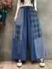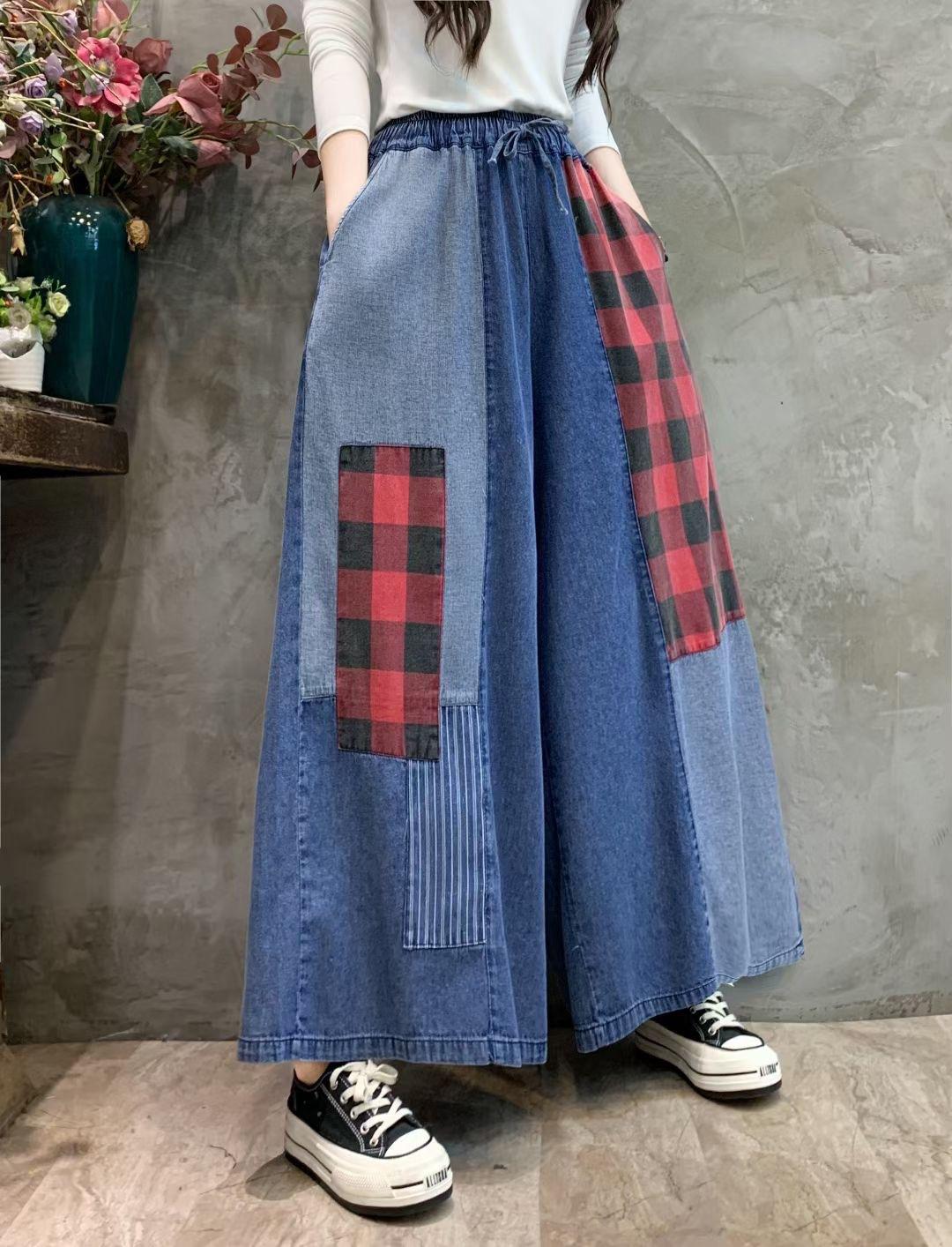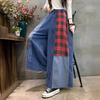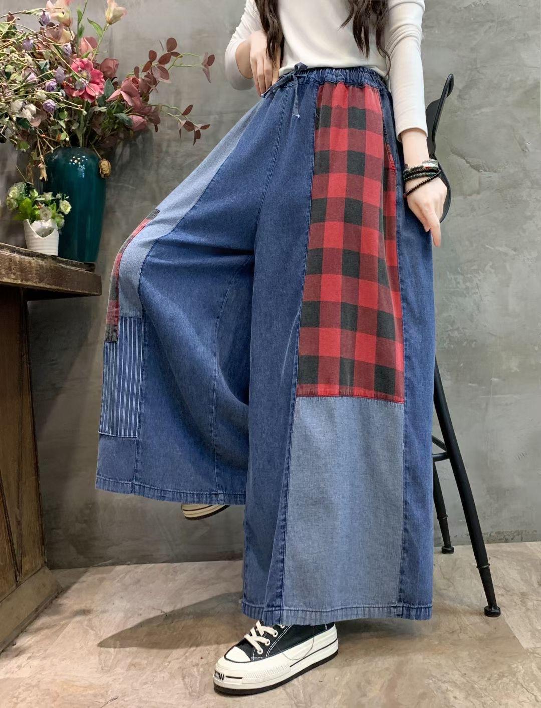 Pantalones de Mezclilla Patchwork de Pierna Ancha para Mujer Primavera 2025, Cintura Elástica, Artísticos Retro Holgados Adelgazantes Casuales Largos