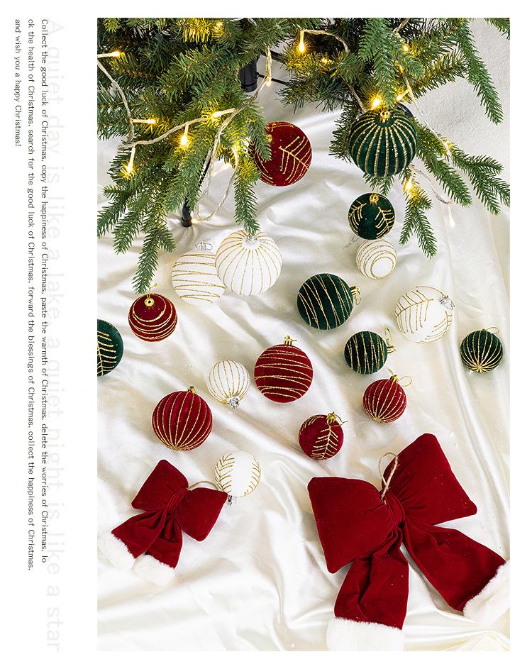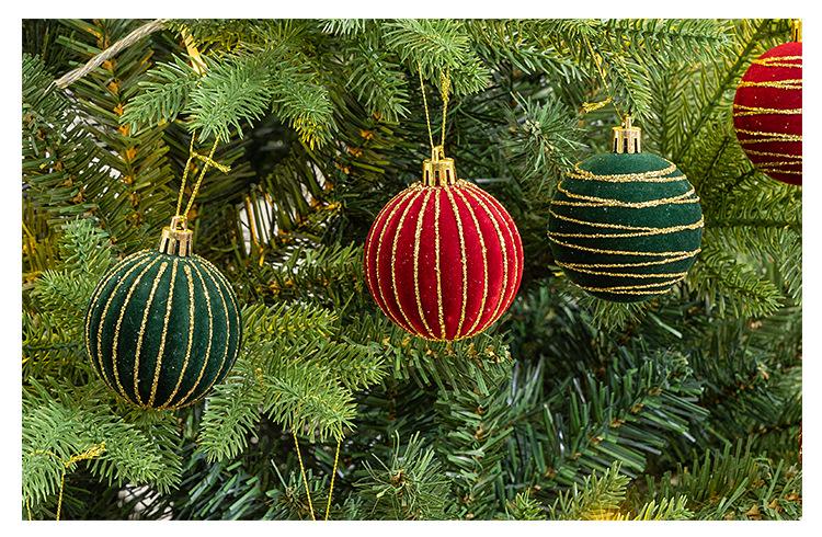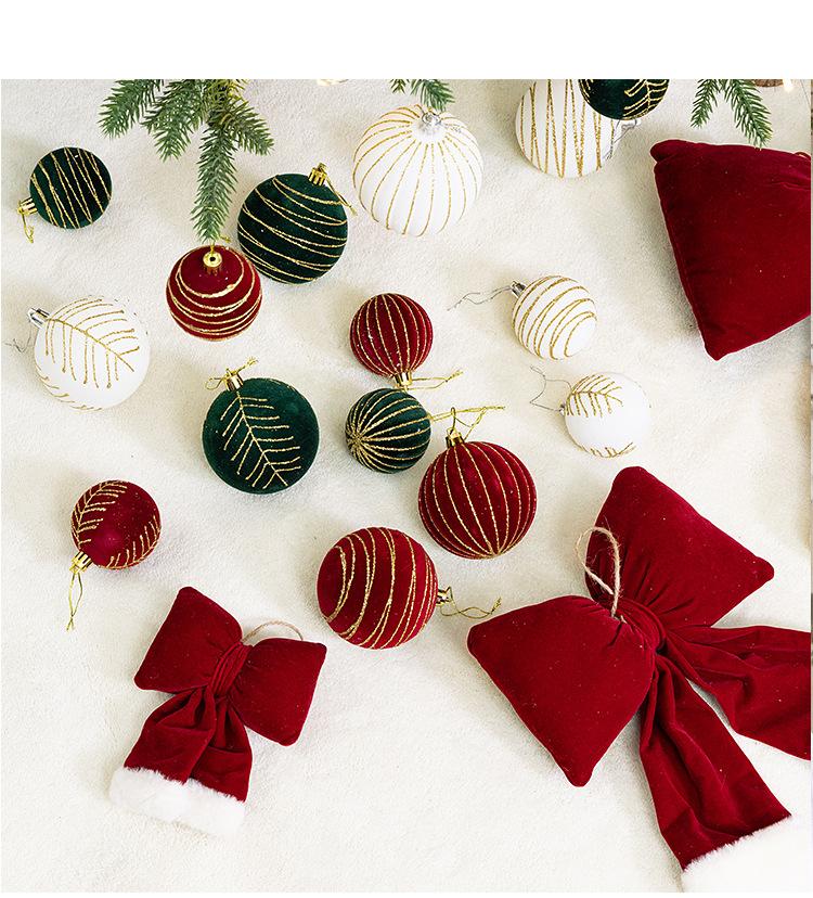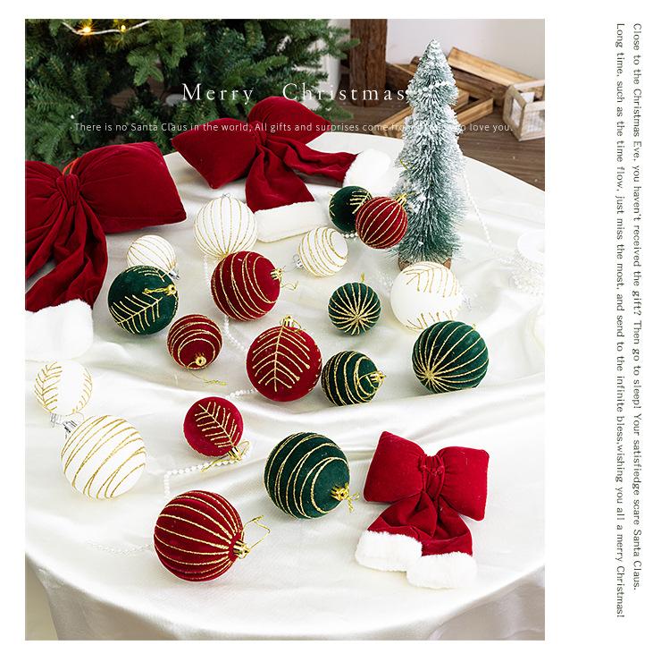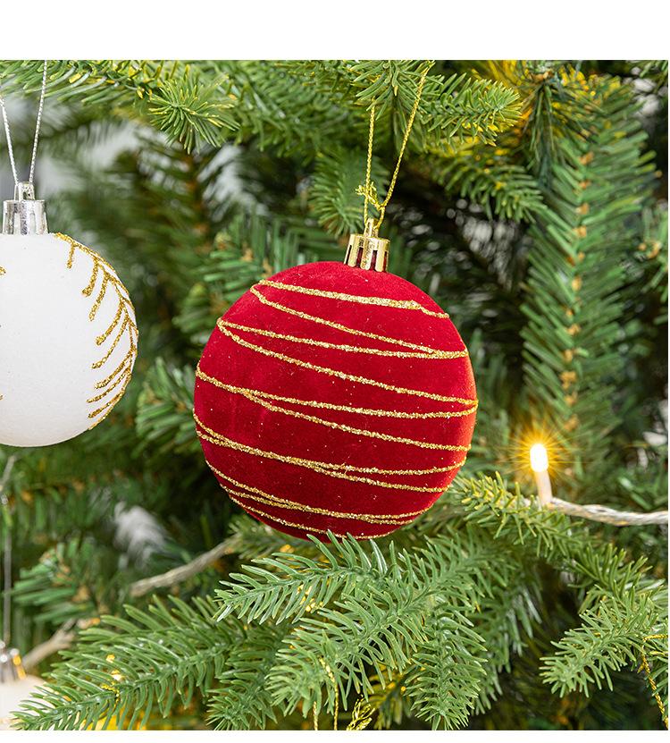 Bola navideña flocado transfronterizo lazo de franela rojo vino colgante decoración navideña 8CM bola colgante para árbol de Navidad pintada
