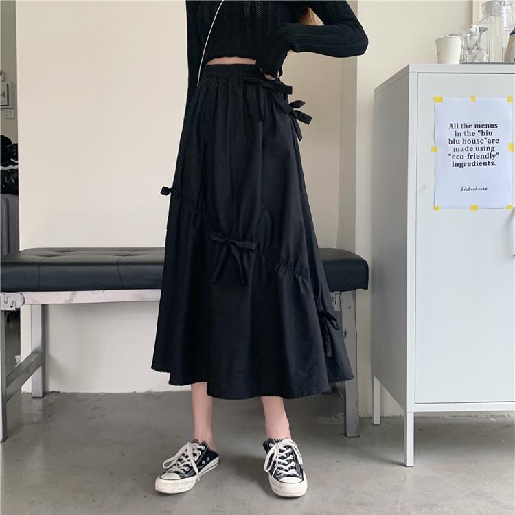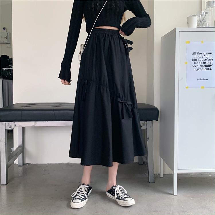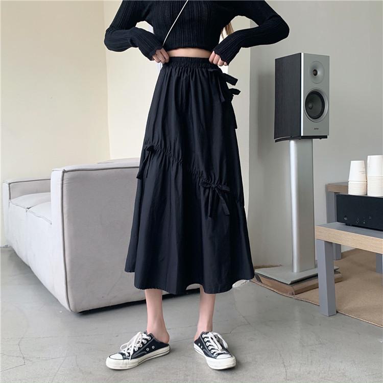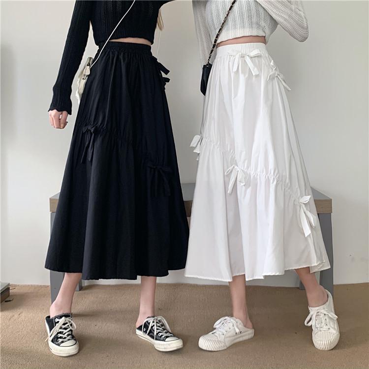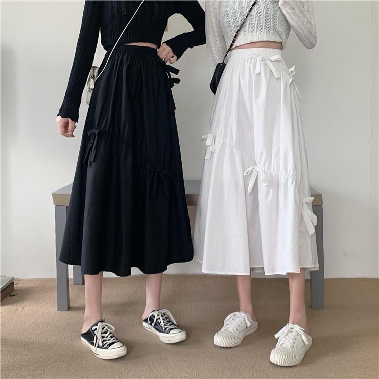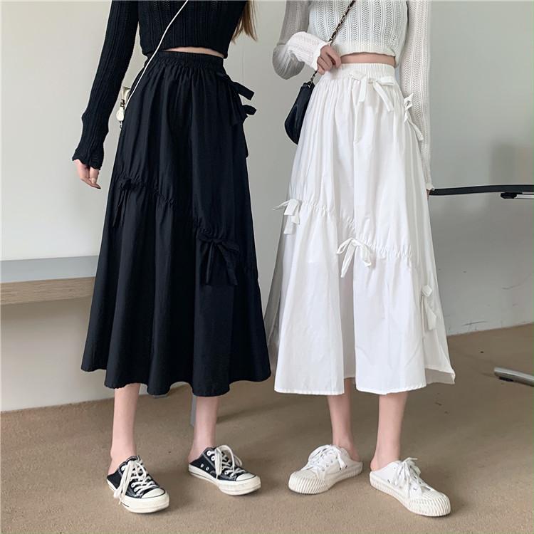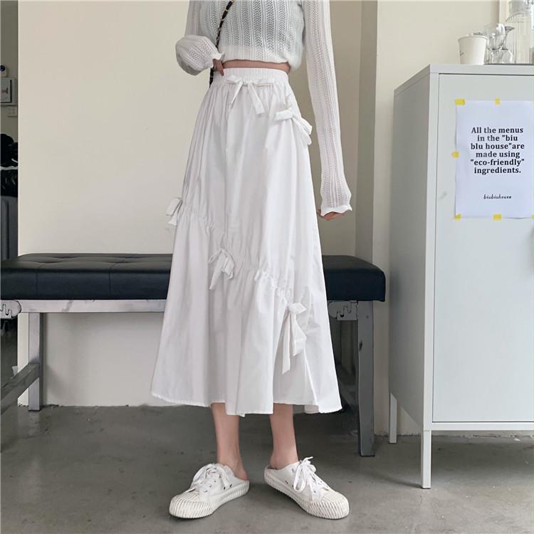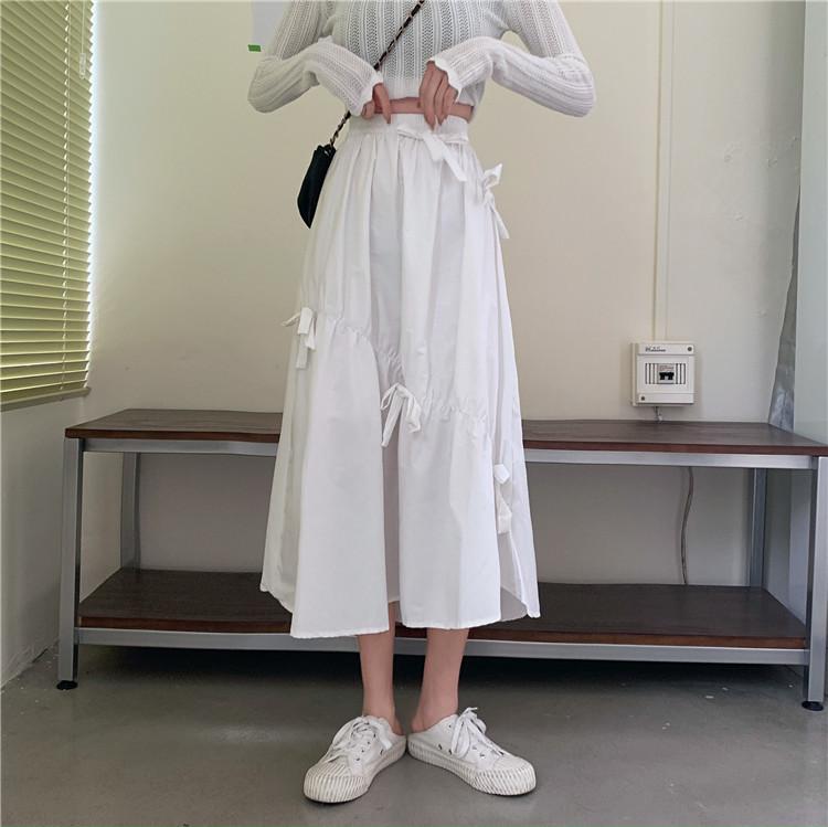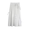 Falda Paraguas Blanca Plisada de Verano para Mujer, Larga hasta la Rodilla, Adelgazante, Línea A, con Lazo y Cintura Holgada