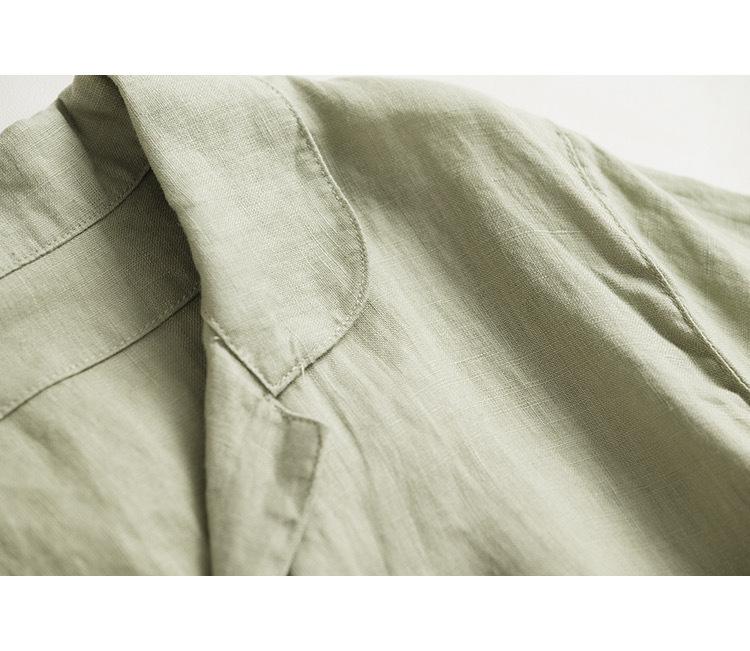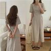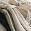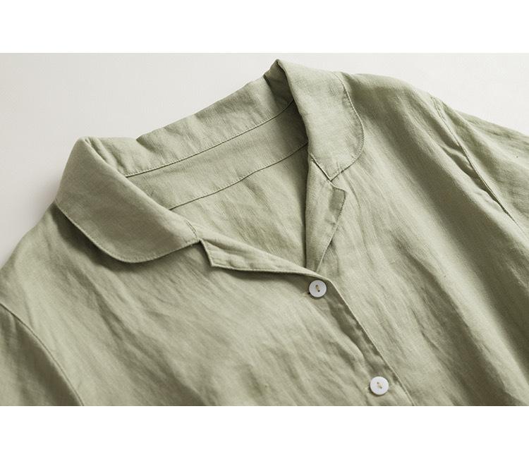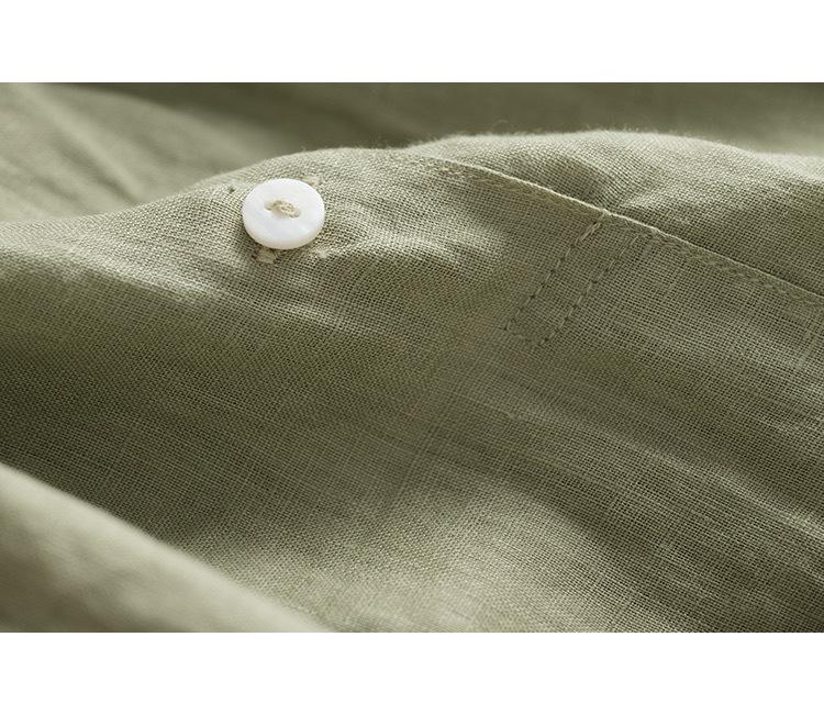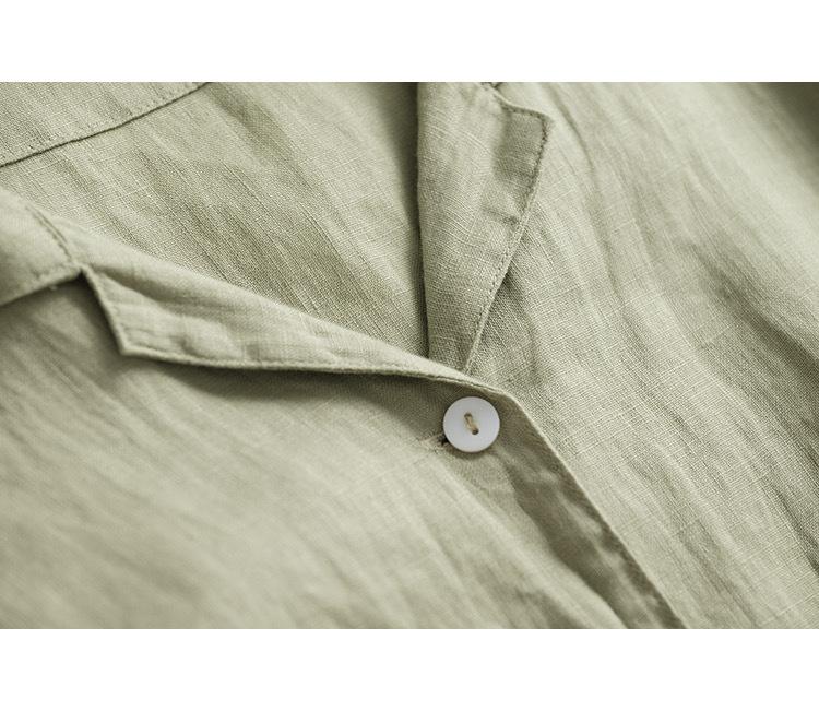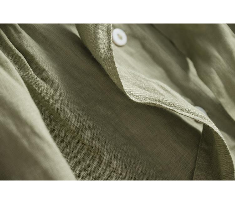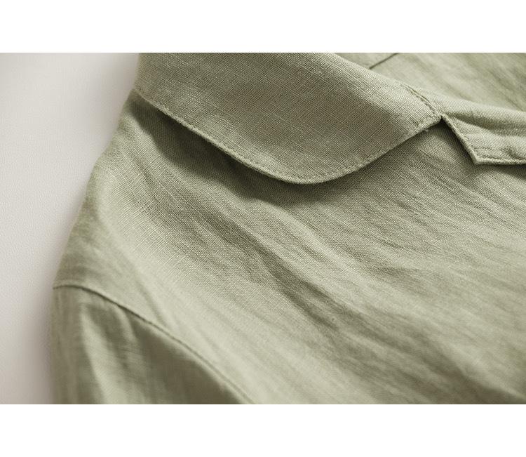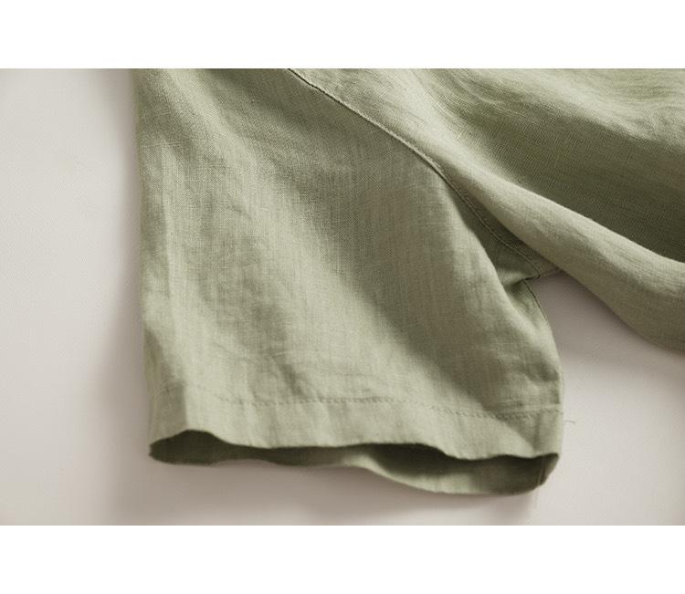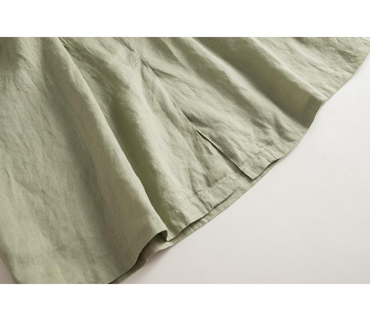 Vestido Nuevo de Verano 2023 para Mujer Artístico Retro Color Puro Algodón y Lino Falda Elegante Manga Corta Cinturón Falda Midi