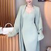 Cárdigan Suéter Chaqueta Punto Francés Otoño e Invierno + Traje Vestido de Tirantes Tejido con Abertura Interior