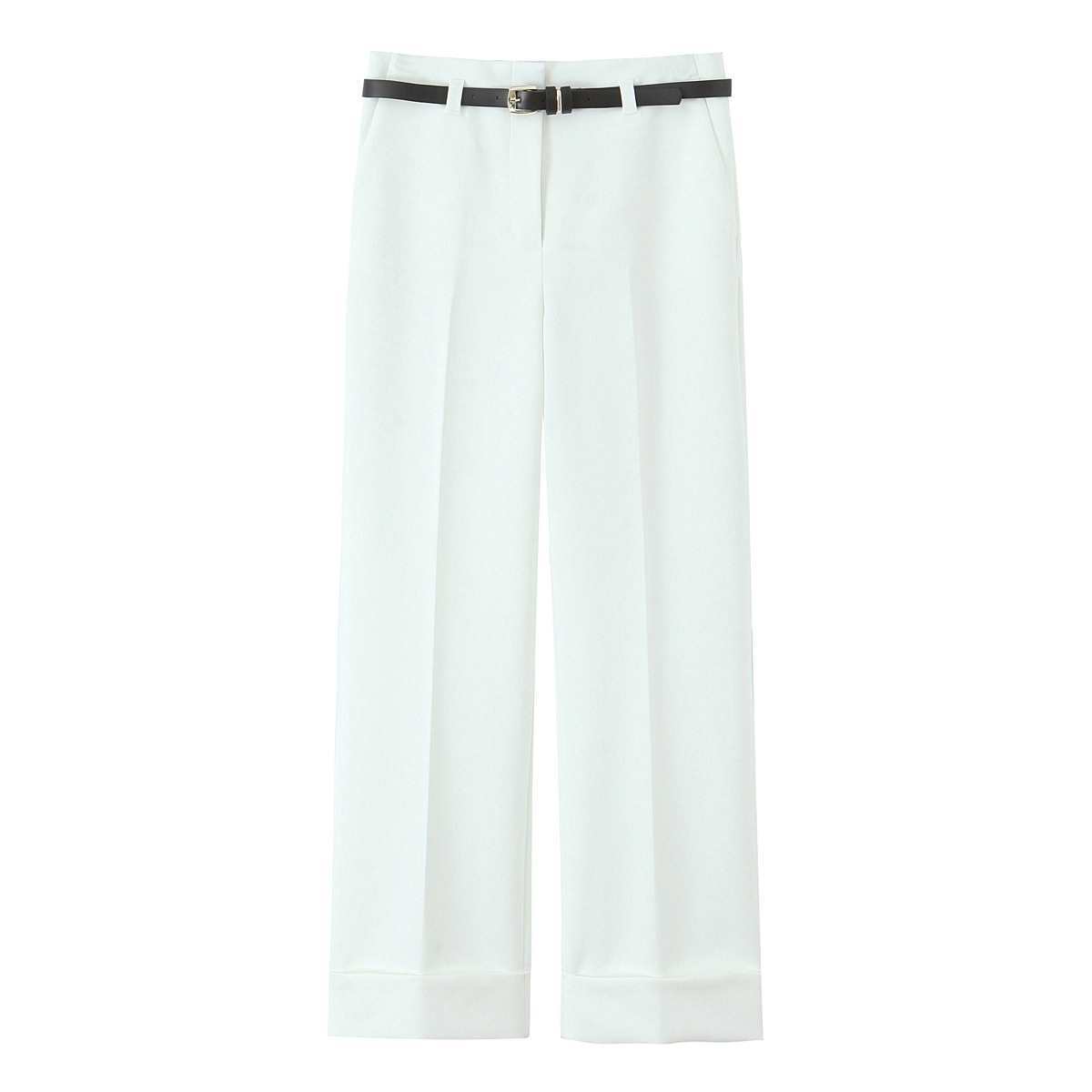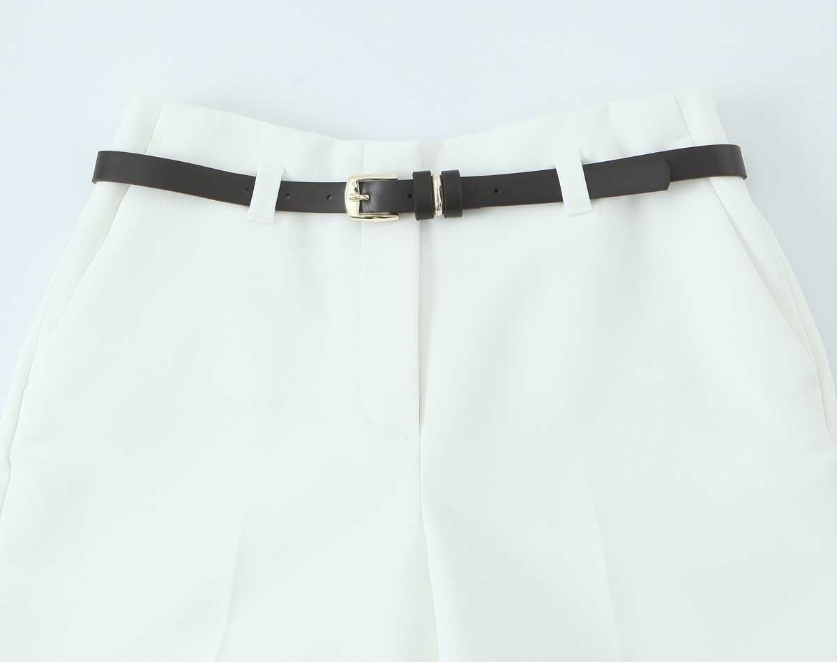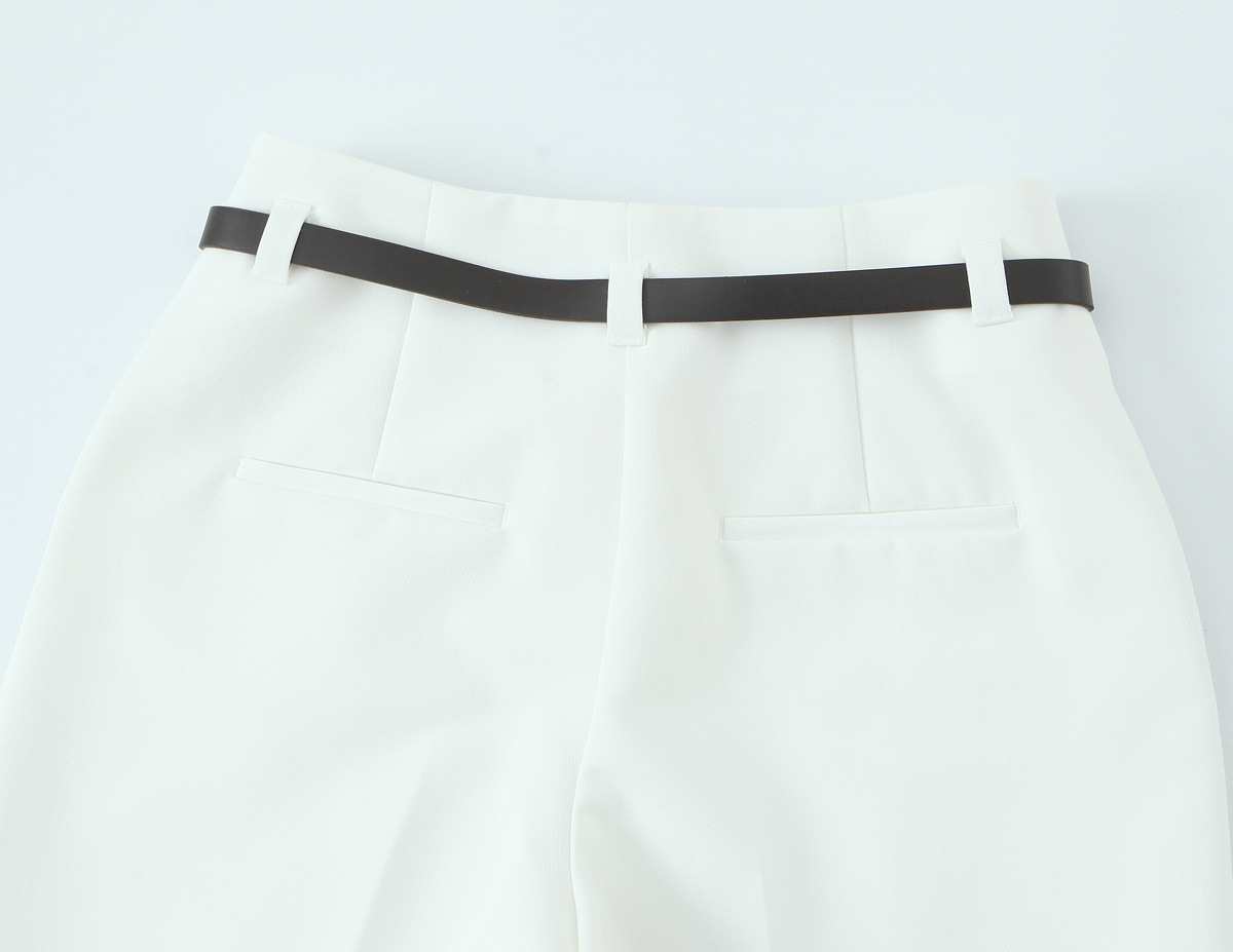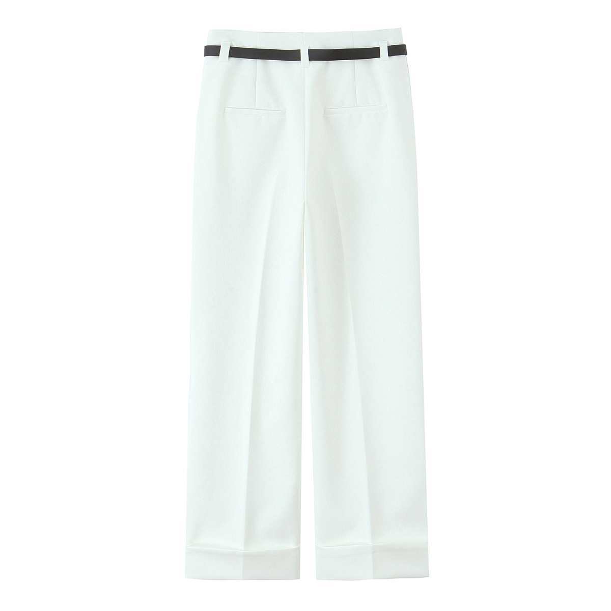Pantalones sencillos de nuevo estilo con cintura alta casual adelgazantes de verano con cinturón de borde enrollado, pantalones de comercio exterior