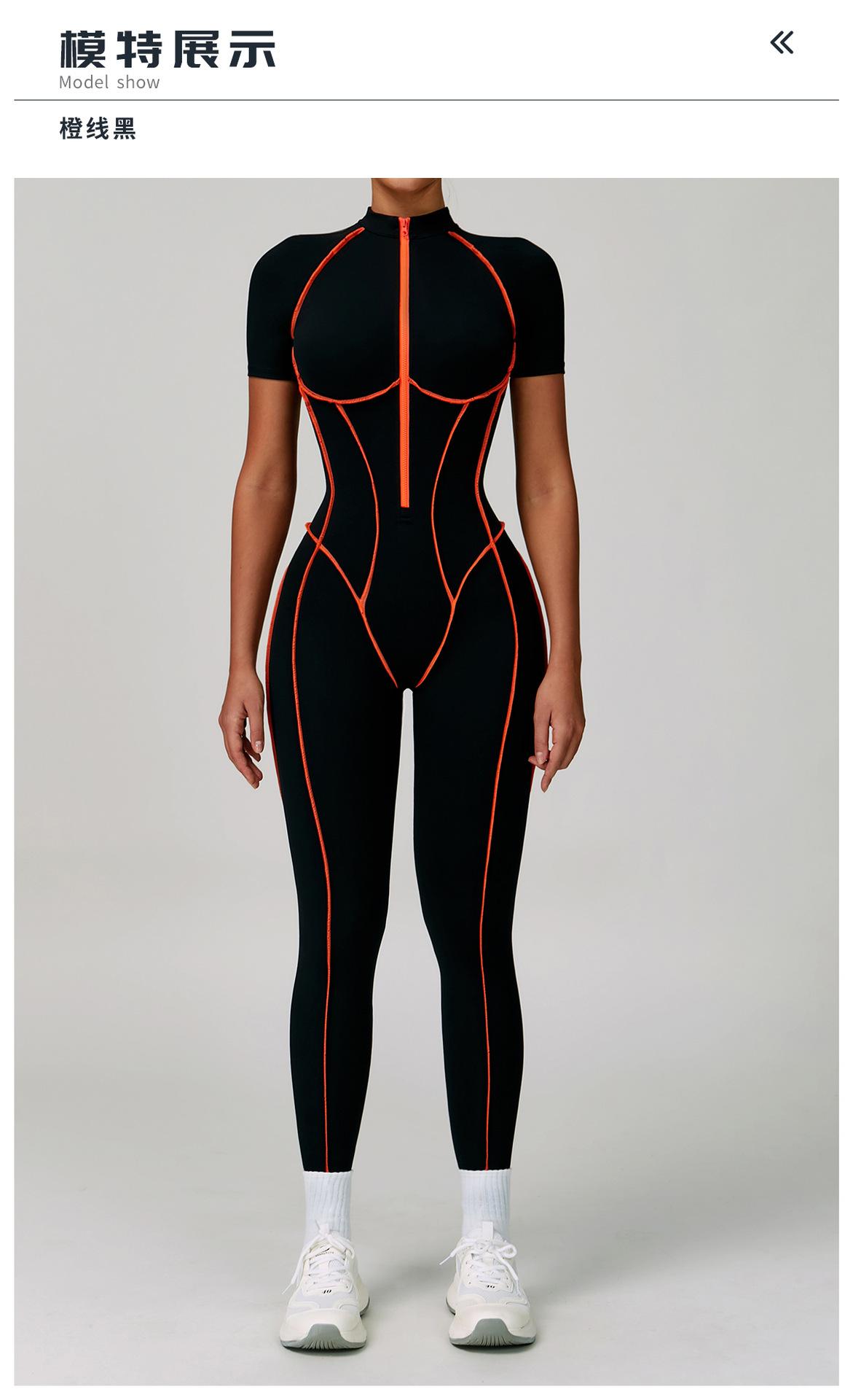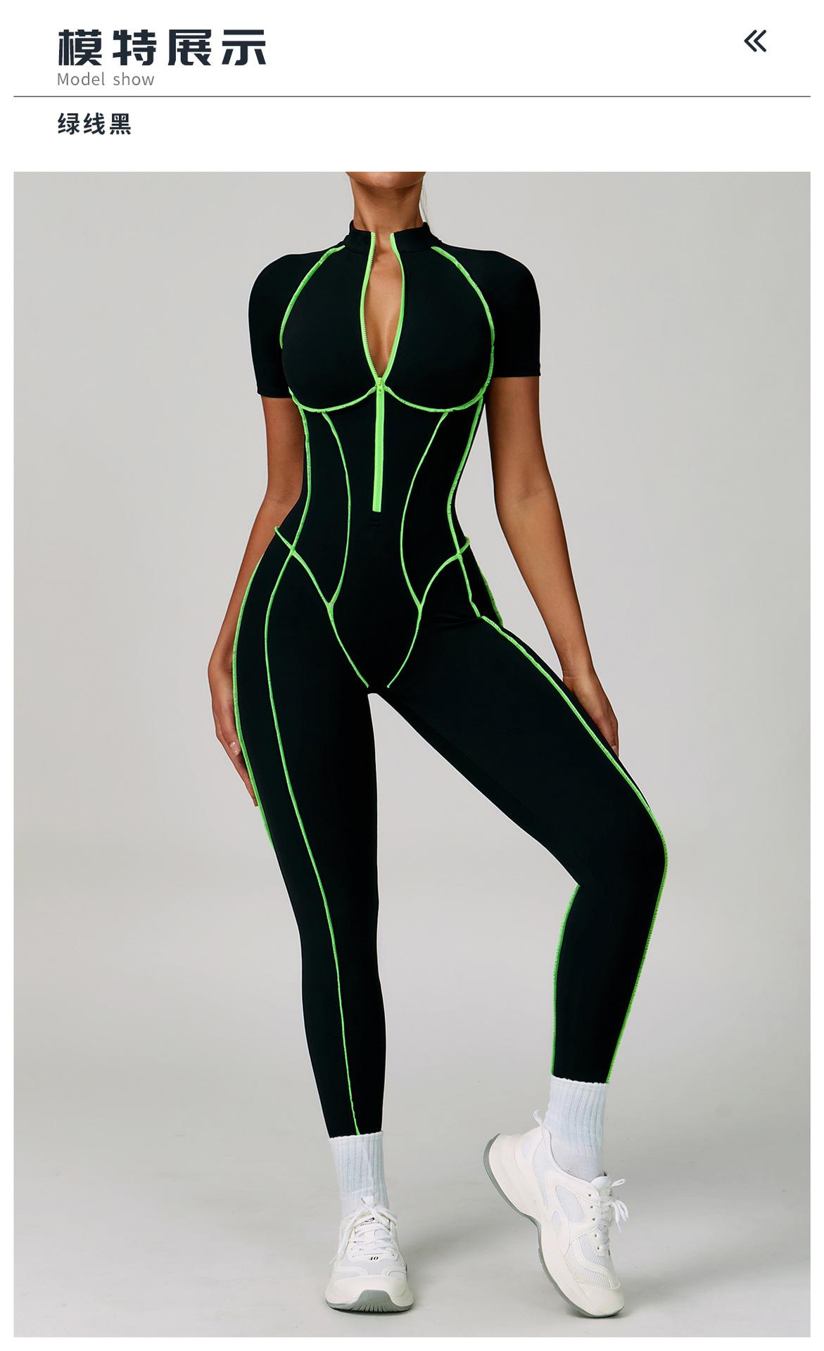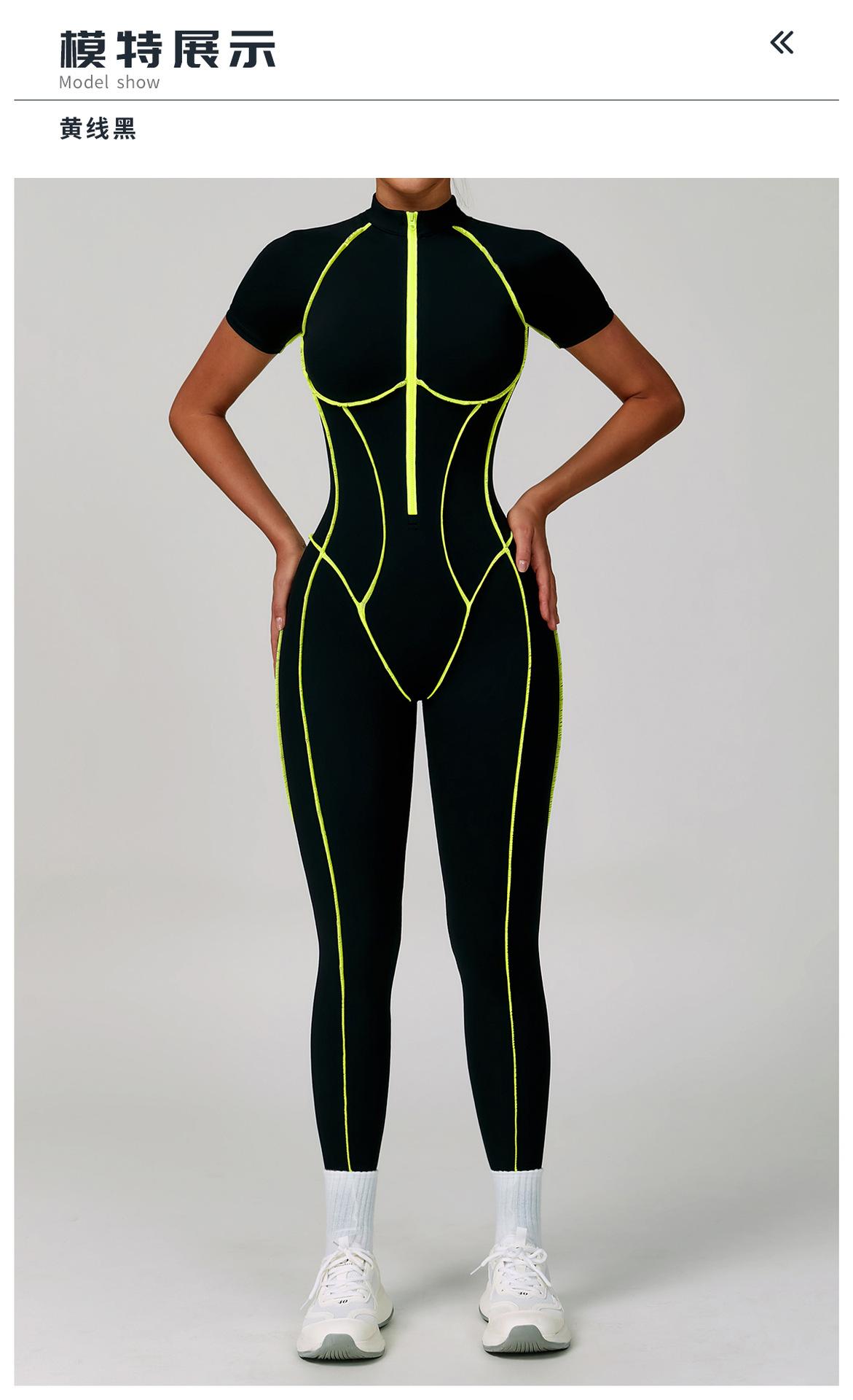 Ropa de Yoga Fitness Innovadora de Nuevo Color Contrastante Corte Espalda Hermosa Jumpsuit Ajustado para Correr Deportes Ropa de Yoga para Mujeres 9322