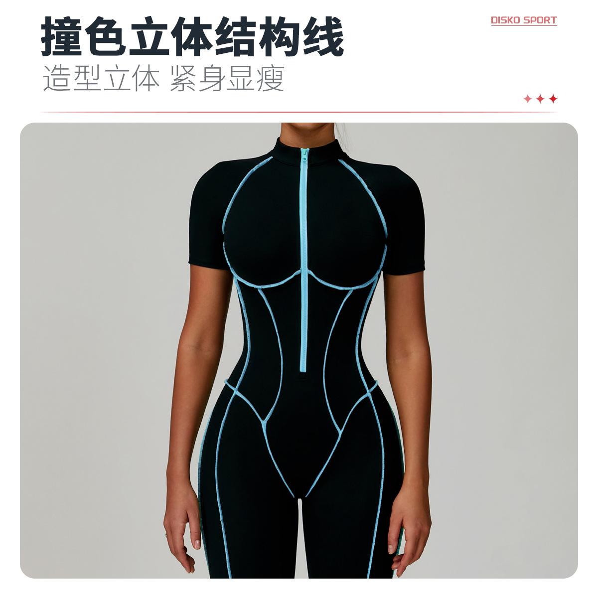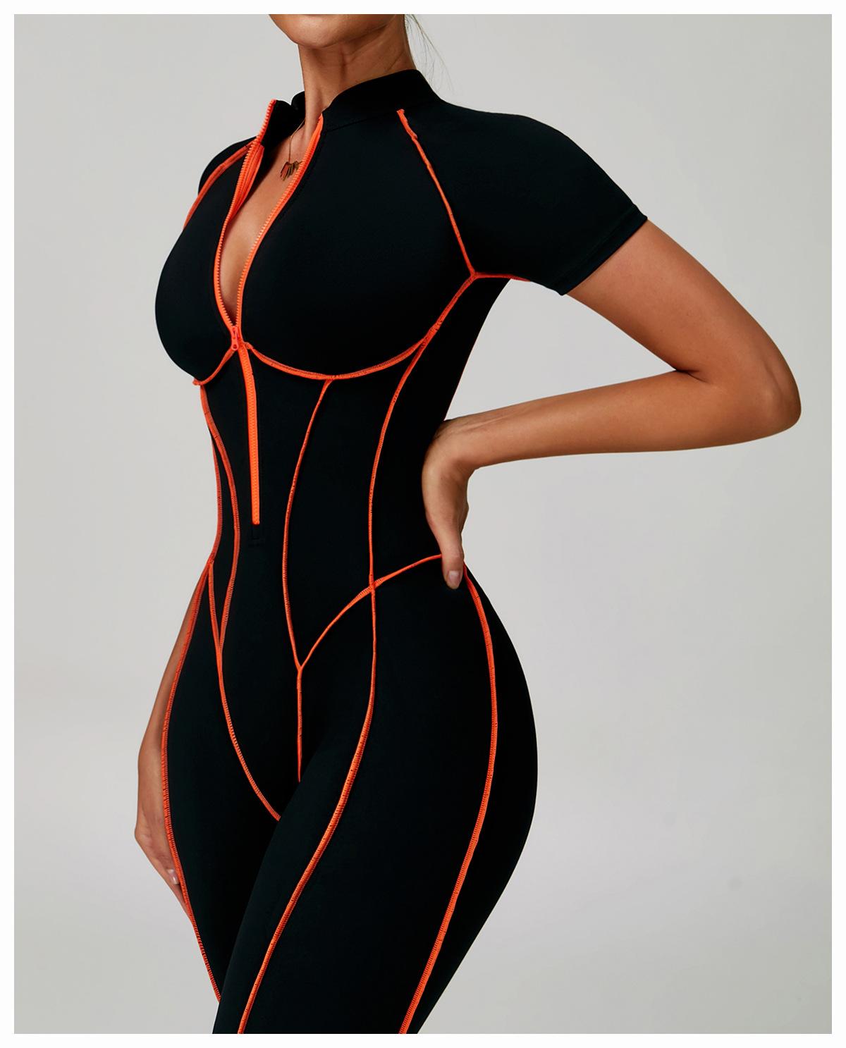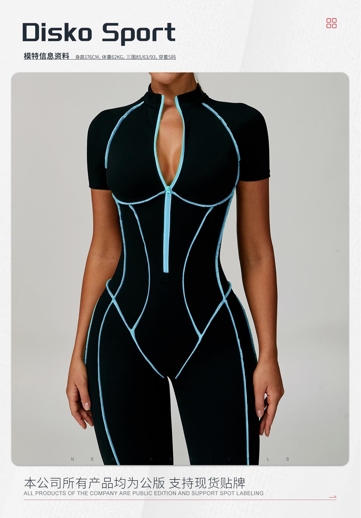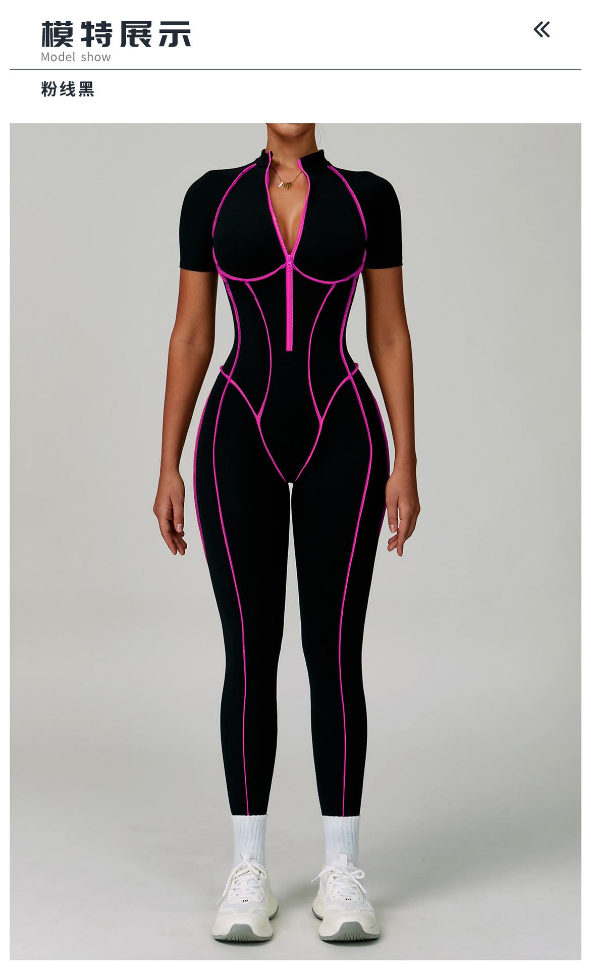 Ropa de Yoga Fitness Innovadora de Nuevo Color Contrastante Corte Espalda Hermosa Jumpsuit Ajustado para Correr Deportes Ropa de Yoga para Mujeres 9322
