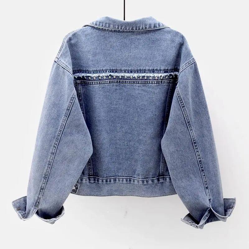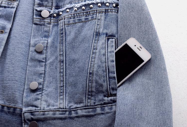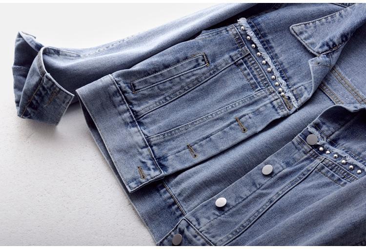 2023 nuevo abrigo de mezclilla combinable para mujer primavera y otoño corto con flecos remaches chaqueta de manga larga chaleco top casual