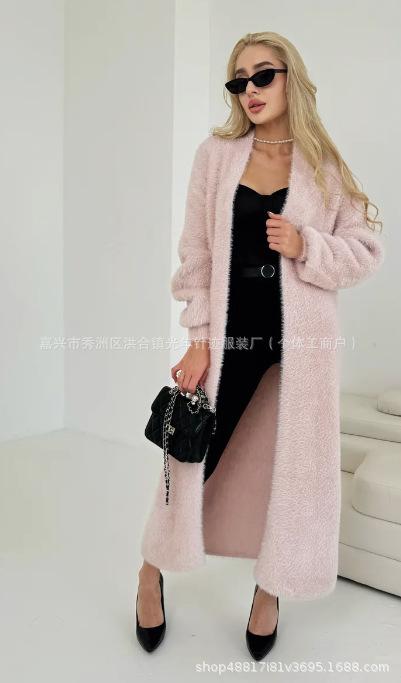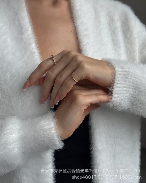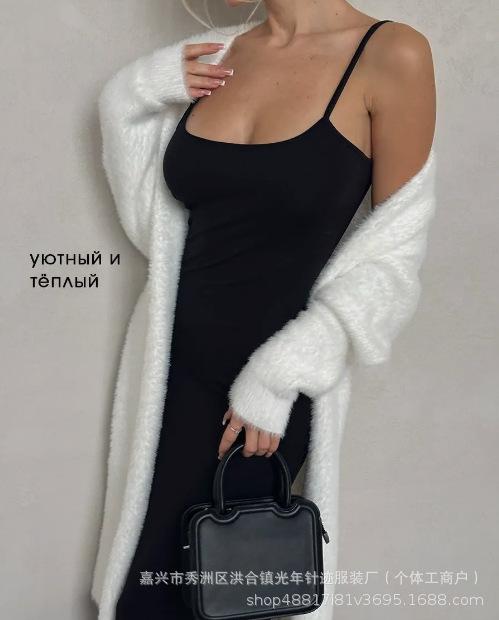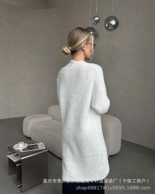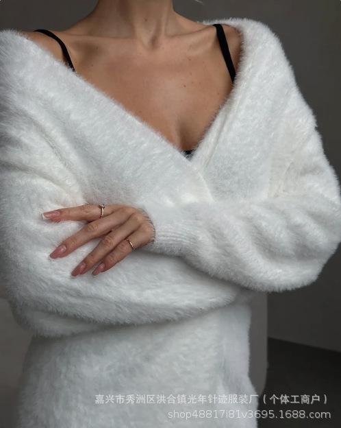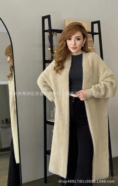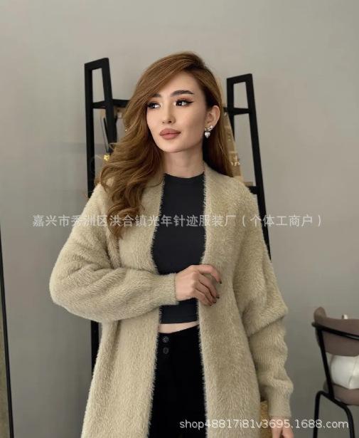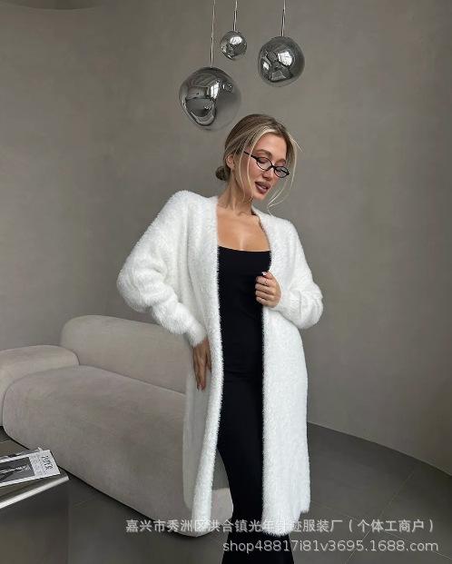 Suéter Cárdigan de Terciopelo Visón Blanco Largo Holgado Estilo Perezoso Chaqueta Tejida para Mujer Otoño e Invierno Suéter Exterior Suave Ceroso para Mujer