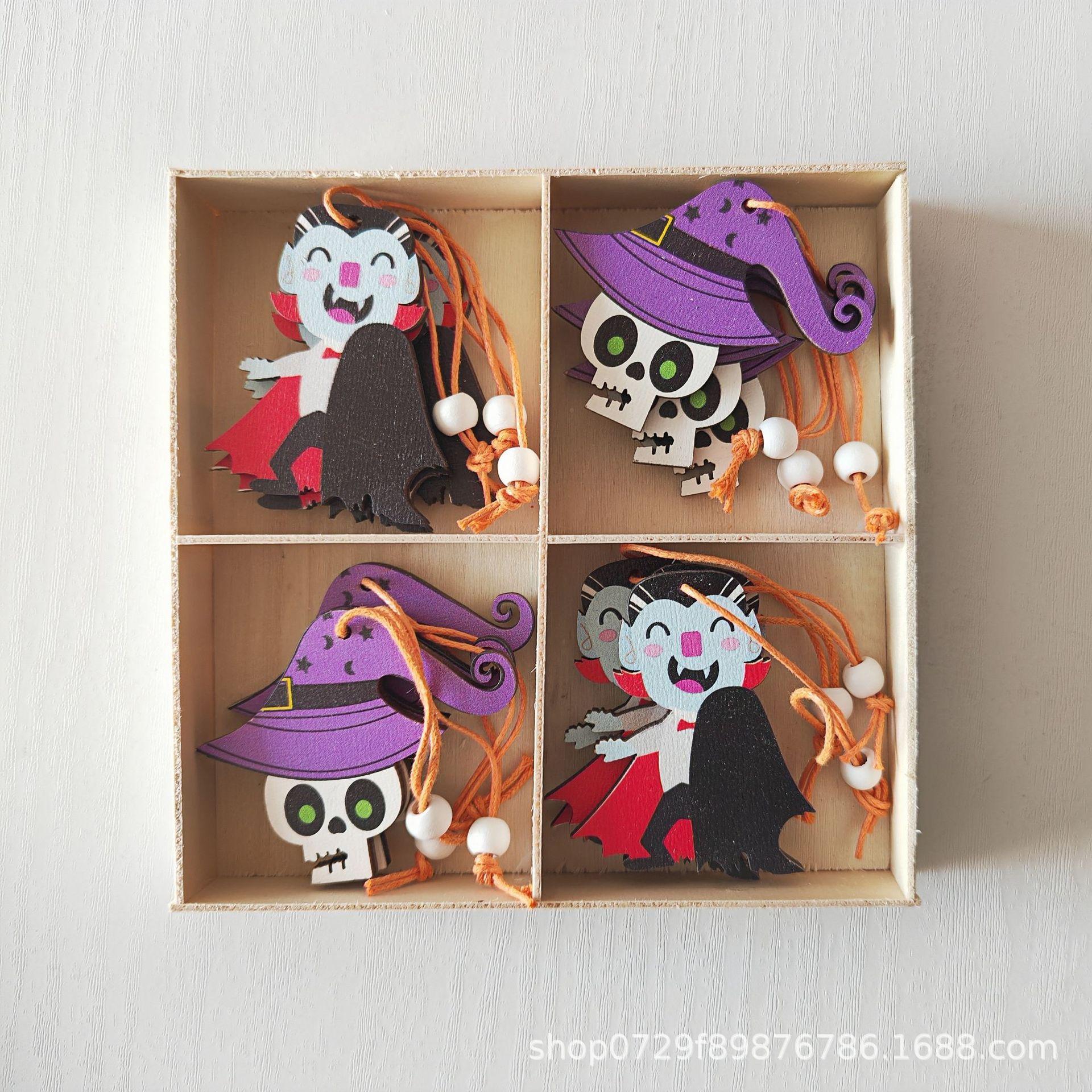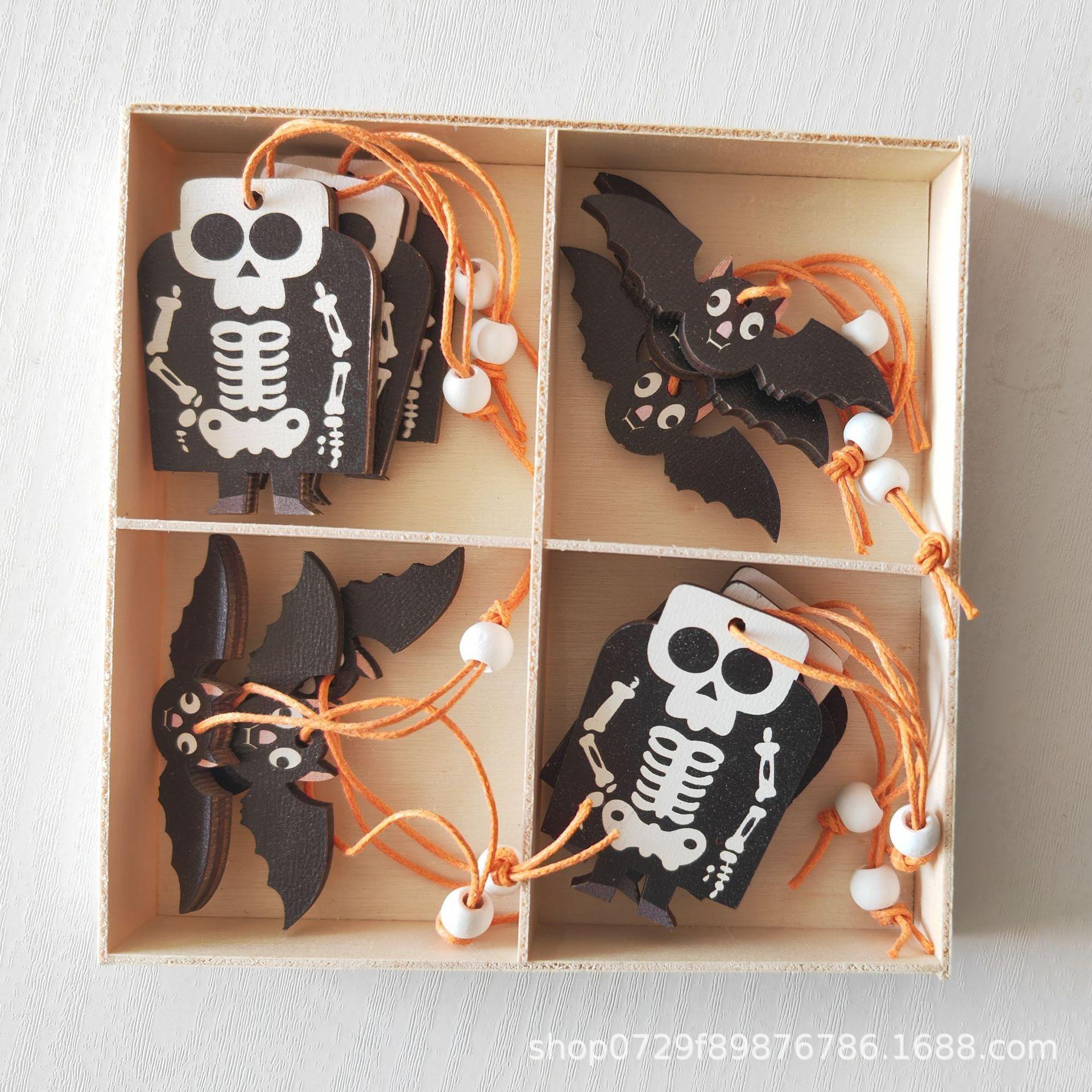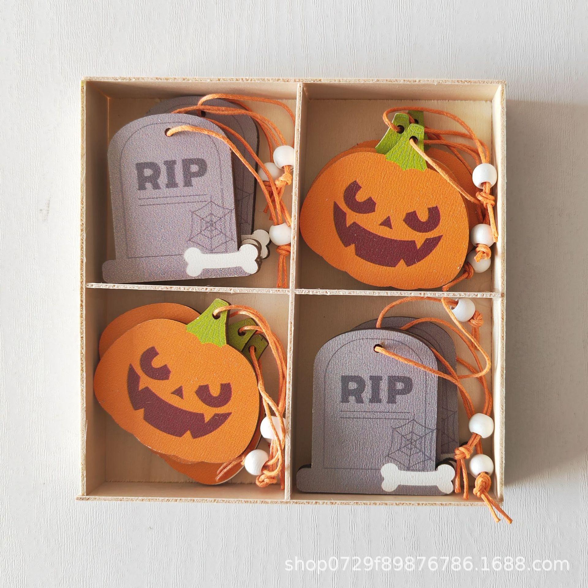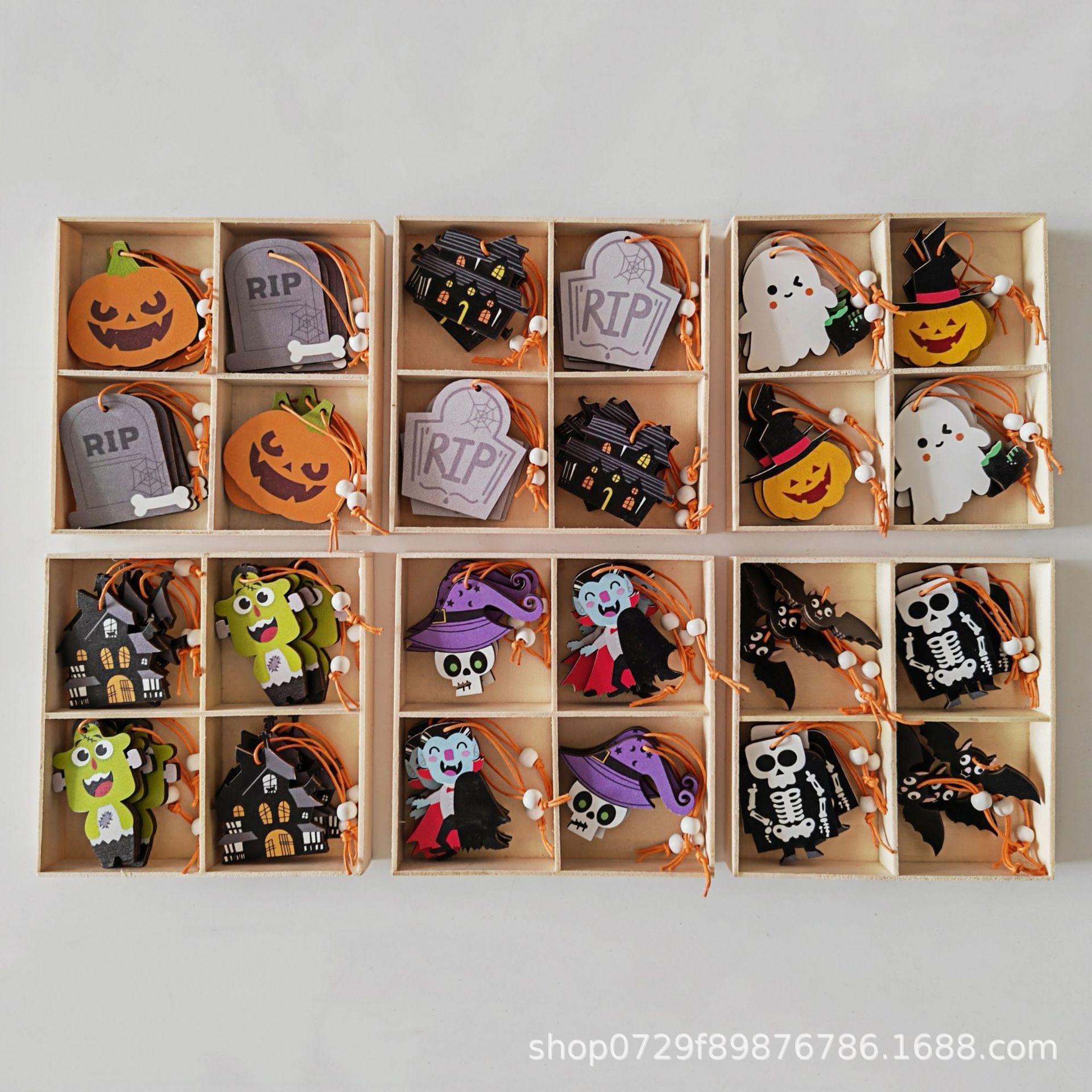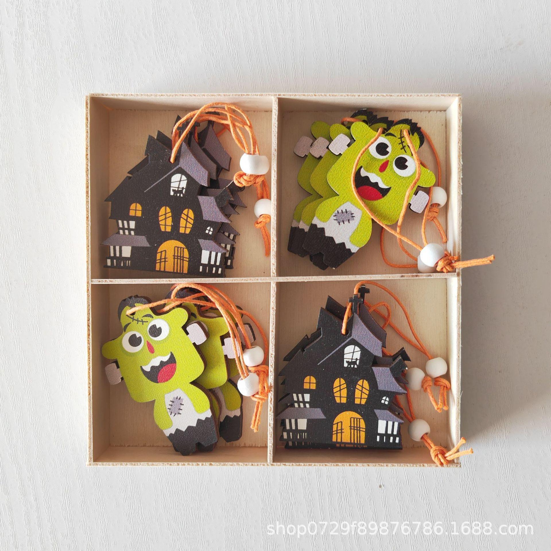 Adornos de Halloween de Madera Juego de 12 Adornos Creativos de Madera Pintados de Calabaza Castillo Fiesta de Halloween Calaveras