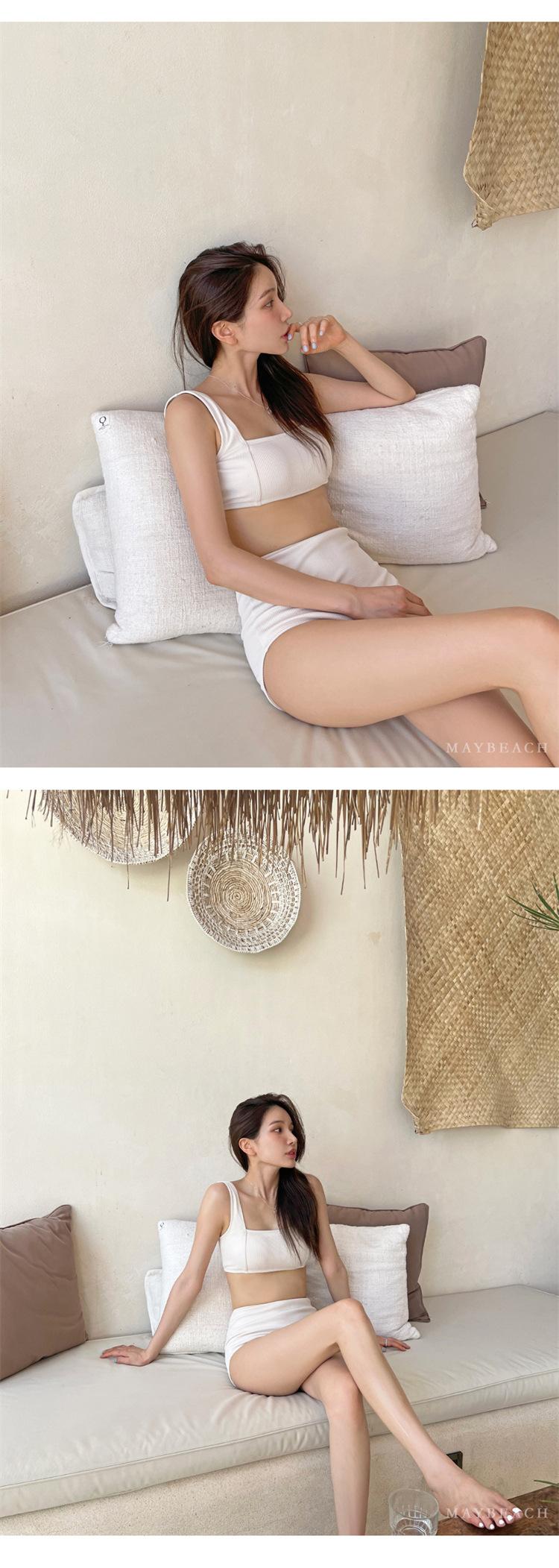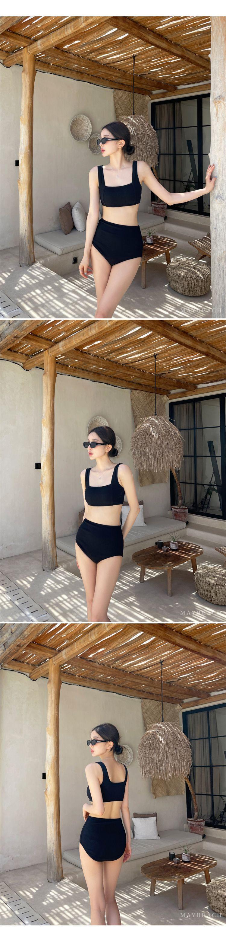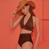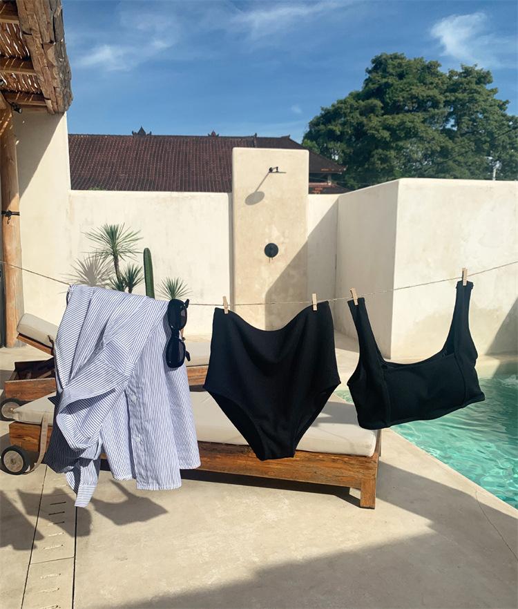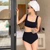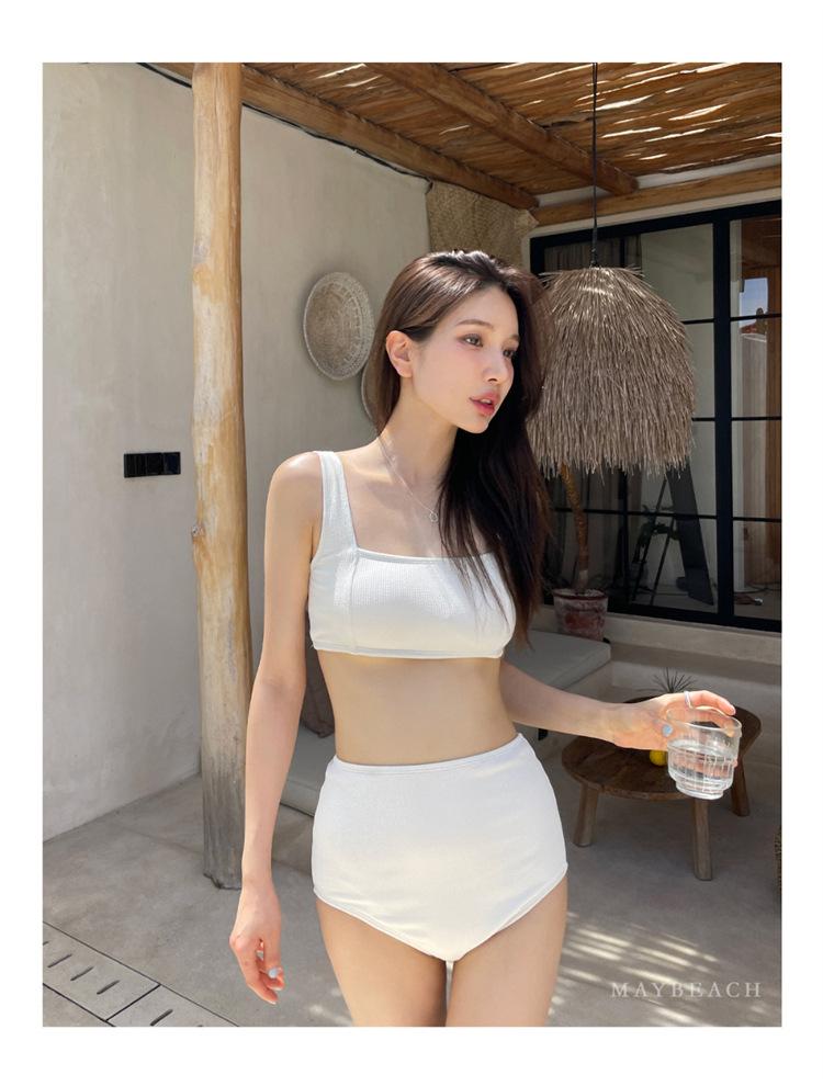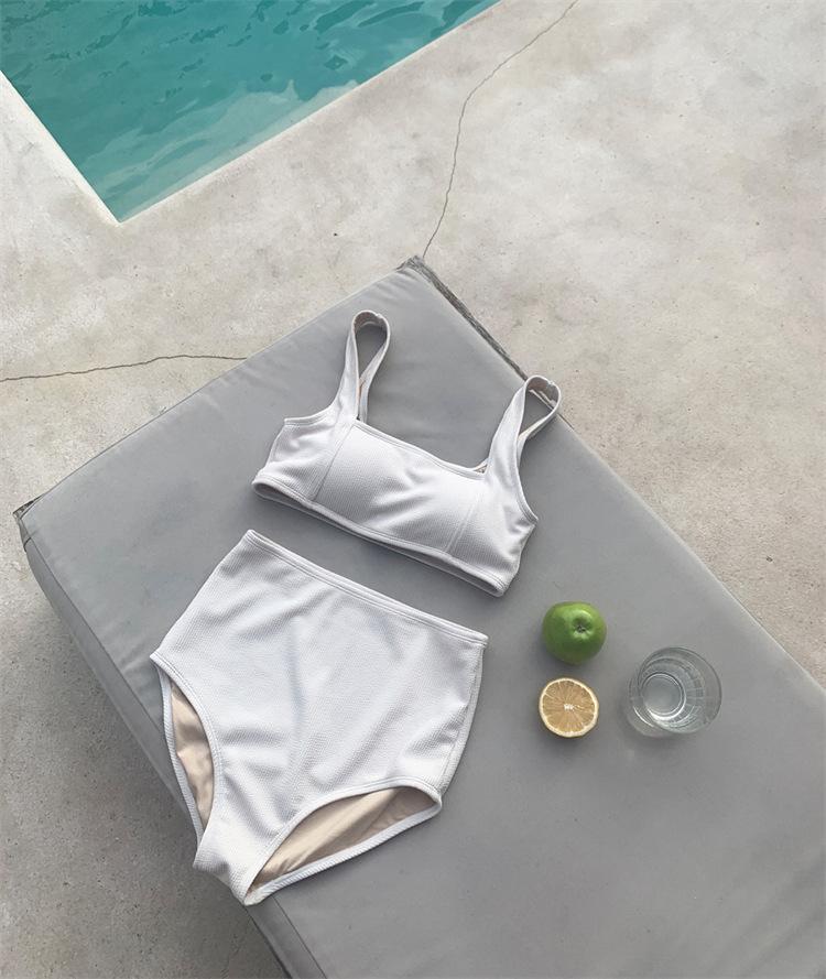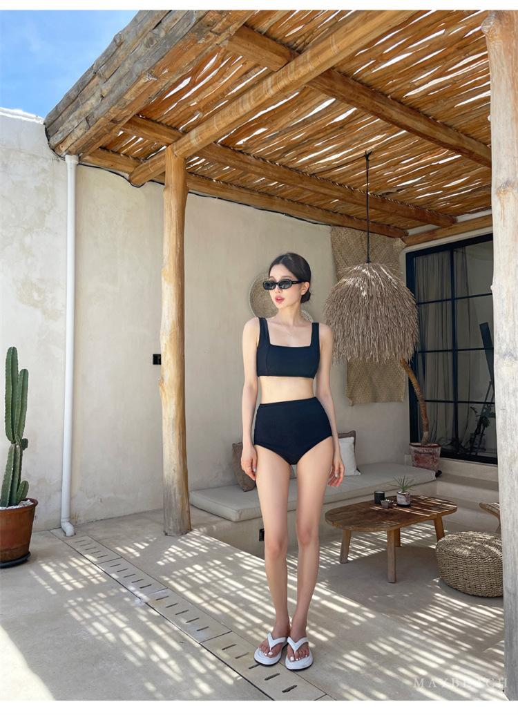 Traje de Baño Dividido de Color Sólido Estilo Coreano Nuevo 2024 para Mujer Sexy Ajustado Cintura Alta con Tirantes Bikini Spa Playa Traje de Baño