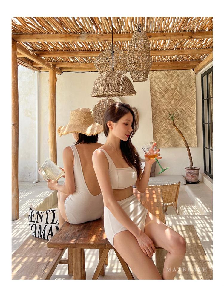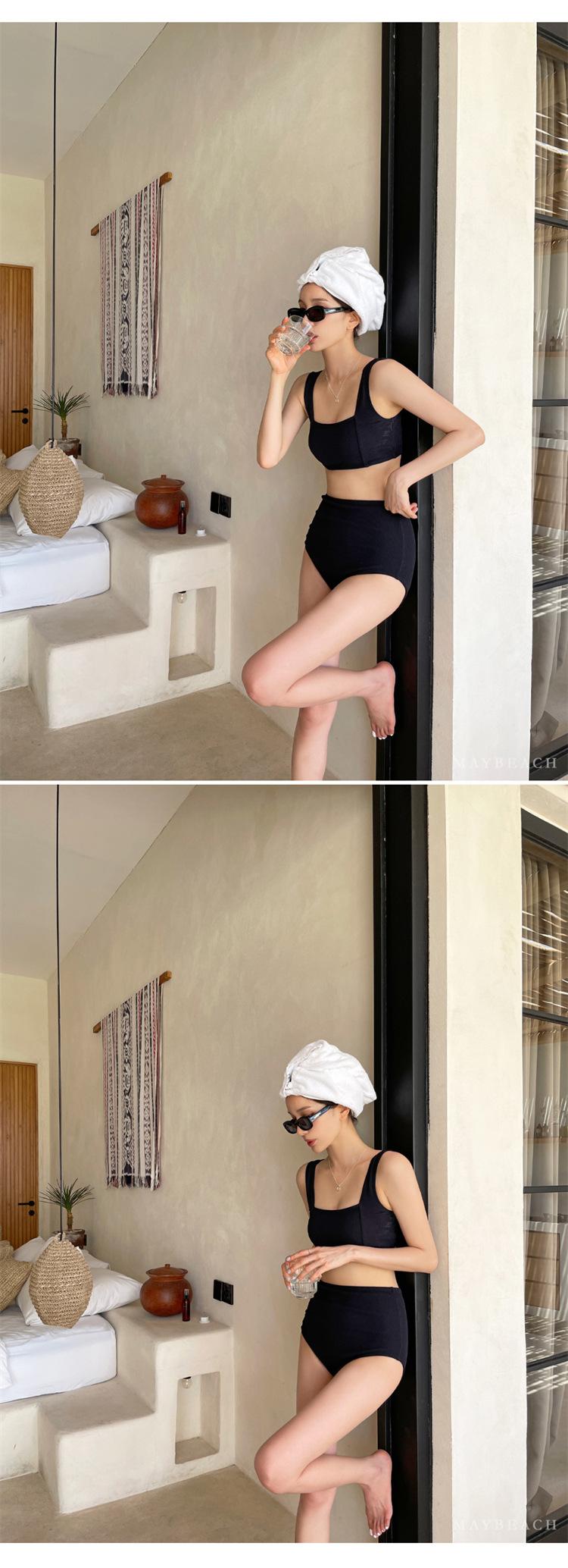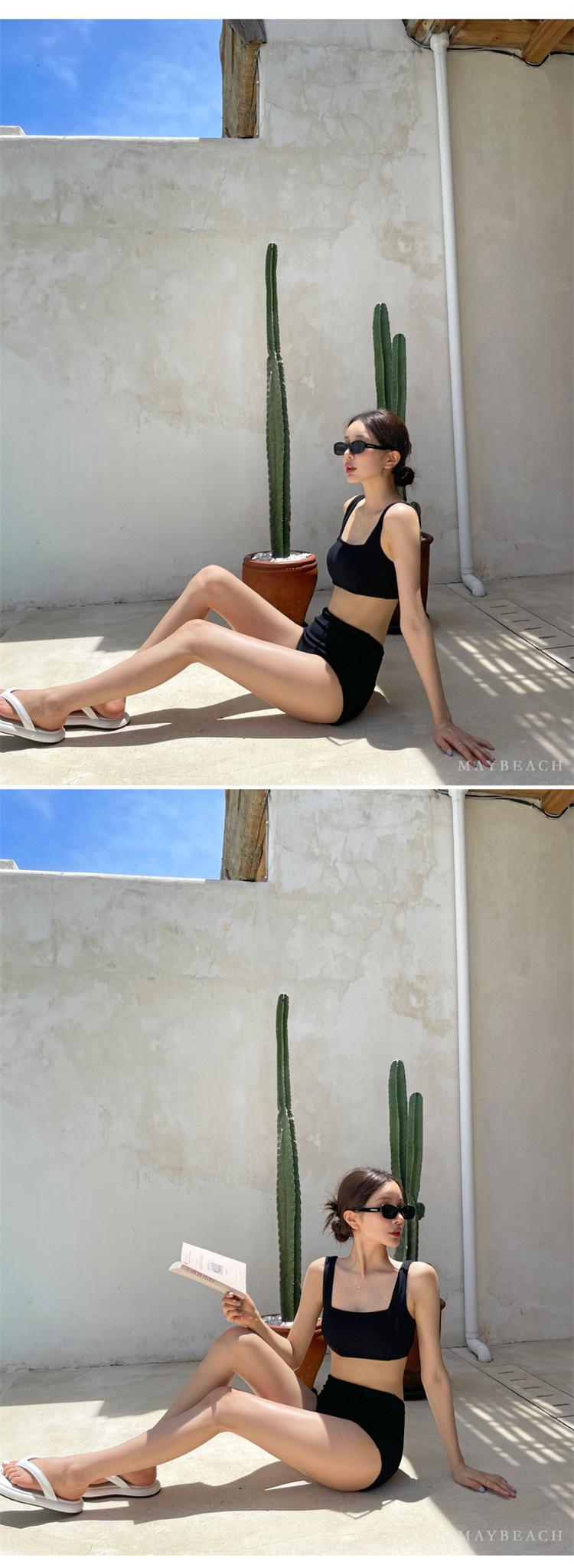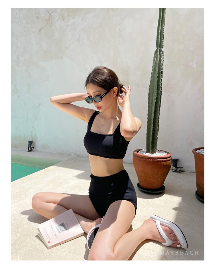 Traje de Baño Dividido de Color Sólido Estilo Coreano Nuevo 2024 para Mujer Sexy Ajustado Cintura Alta con Tirantes Bikini Spa Playa Traje de Baño