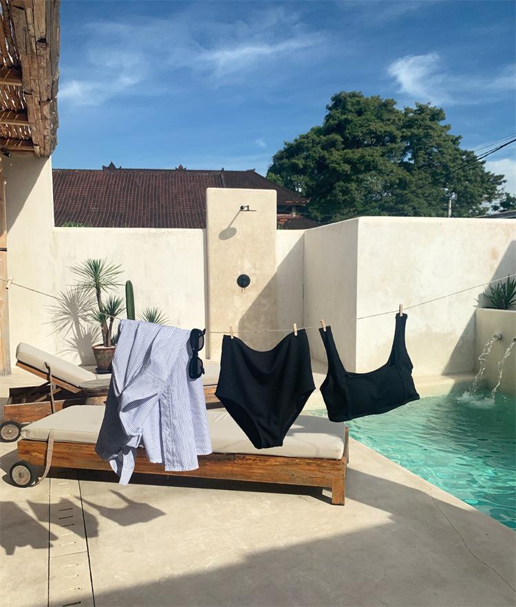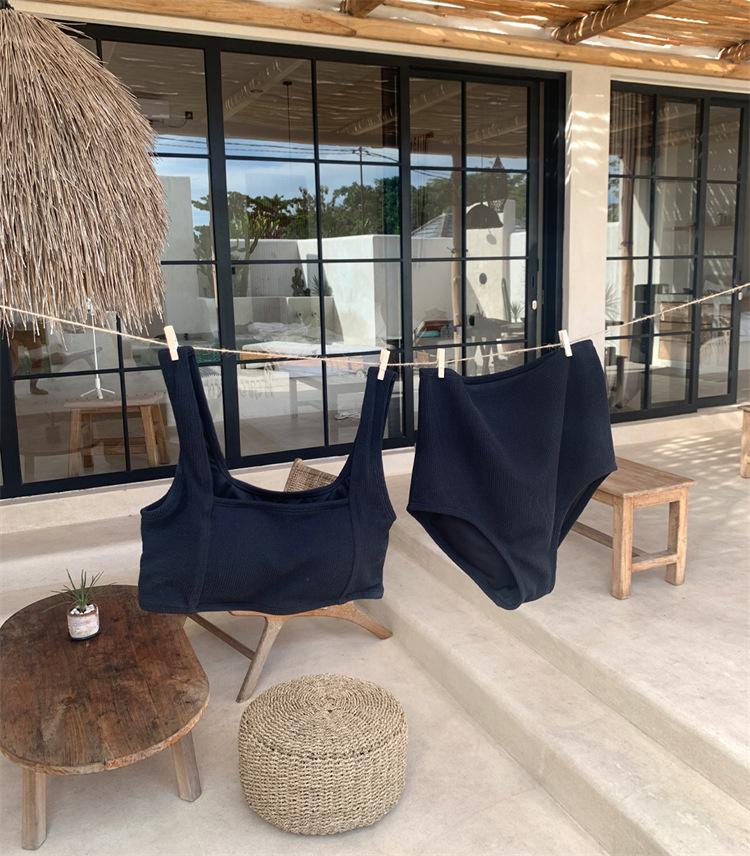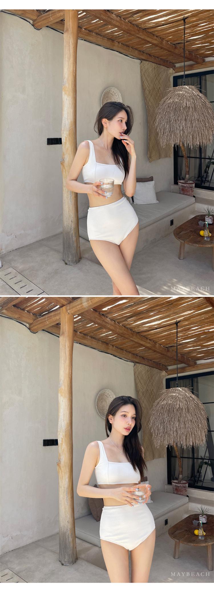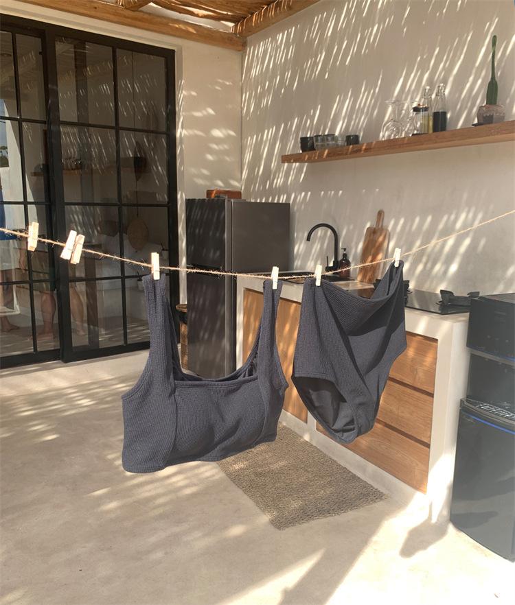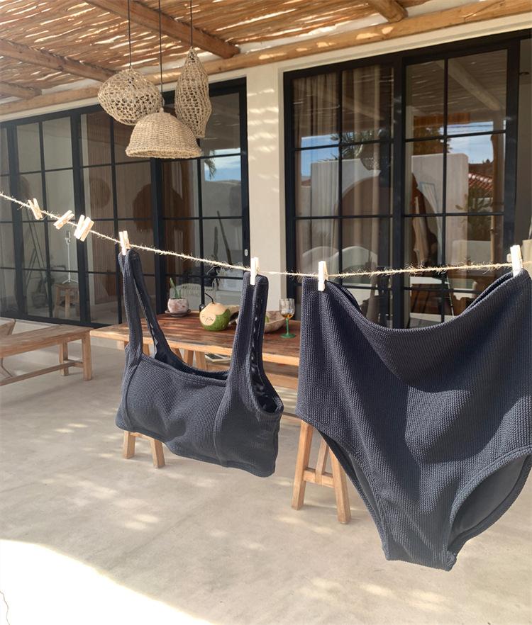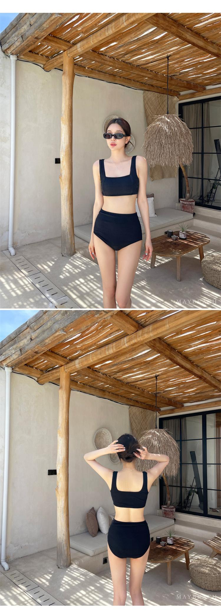 Traje de Baño Dividido de Color Sólido Estilo Coreano Nuevo 2024 para Mujer Sexy Ajustado Cintura Alta con Tirantes Bikini Spa Playa Traje de Baño