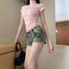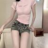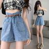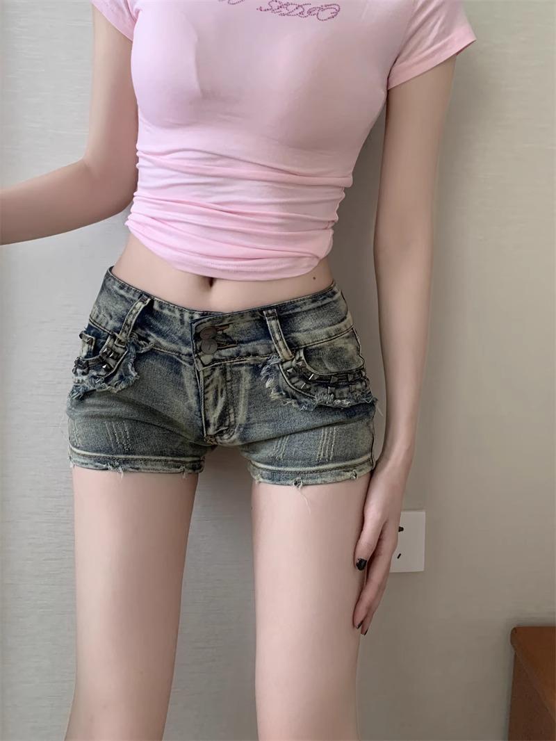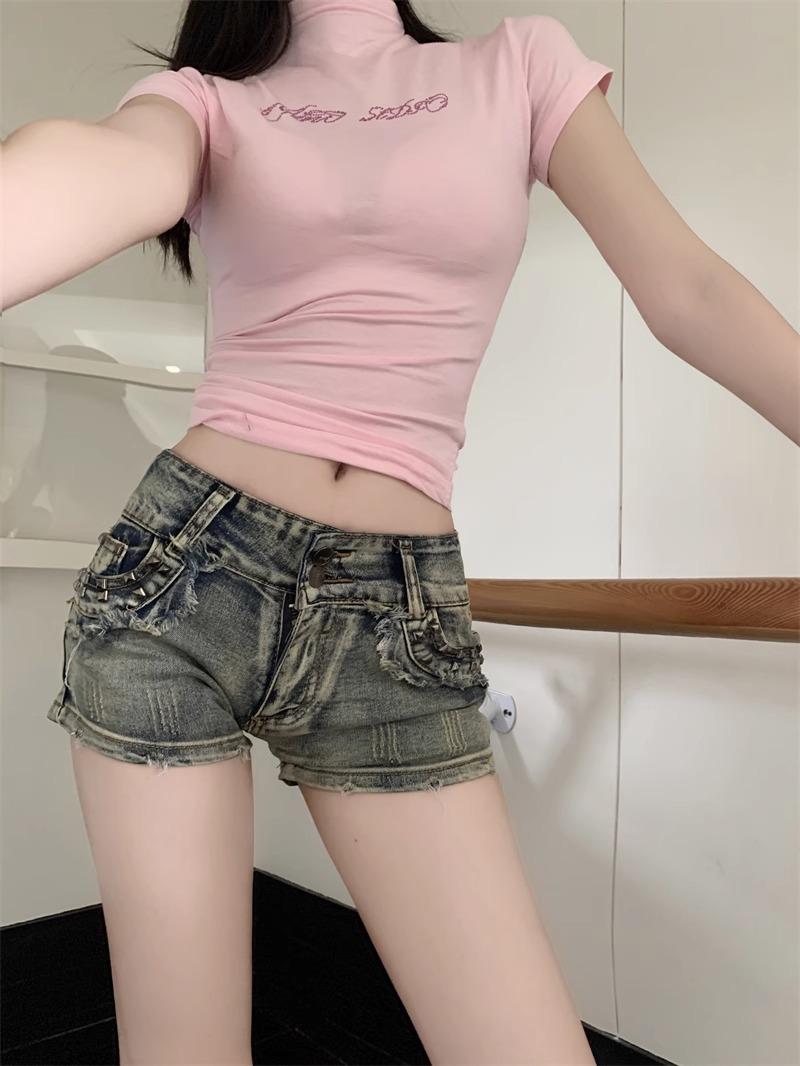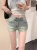 Super Shorts de mezclilla americana para mujer Verano 2024 Nuevo diseño europeo y americano de pantalones cortos sexys Cintura baja Rectos de pierna ancha