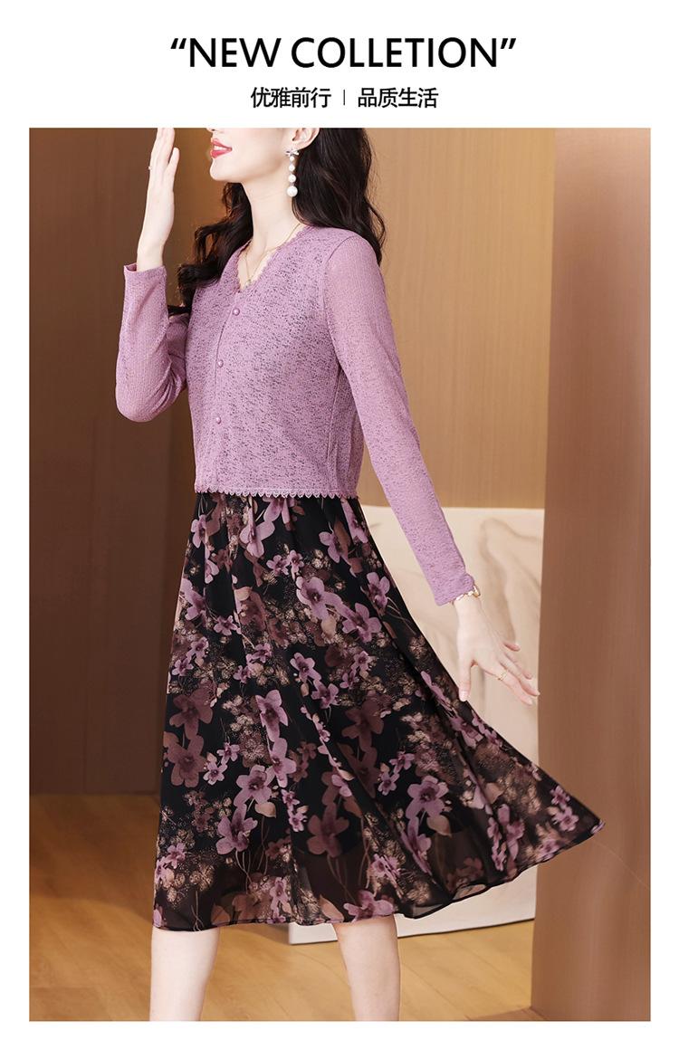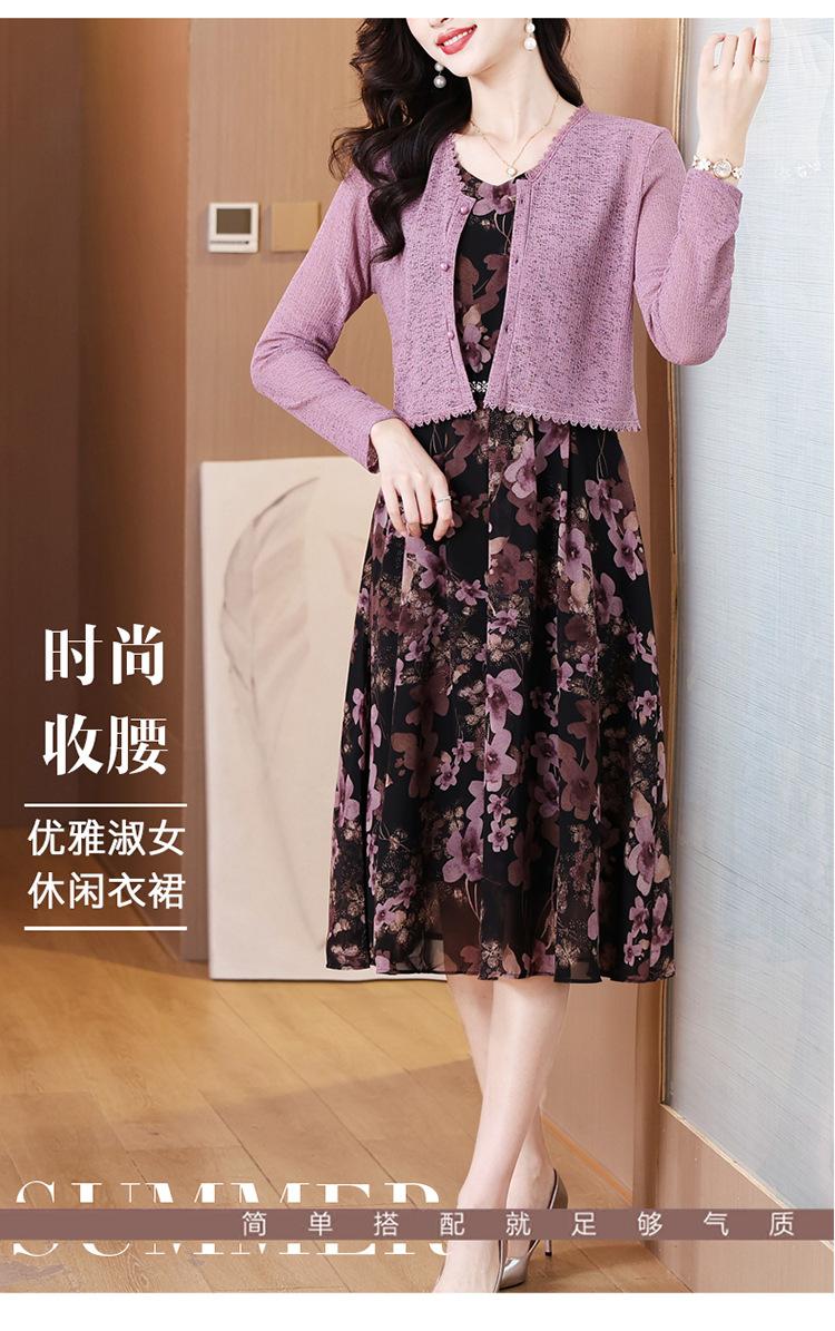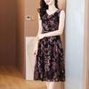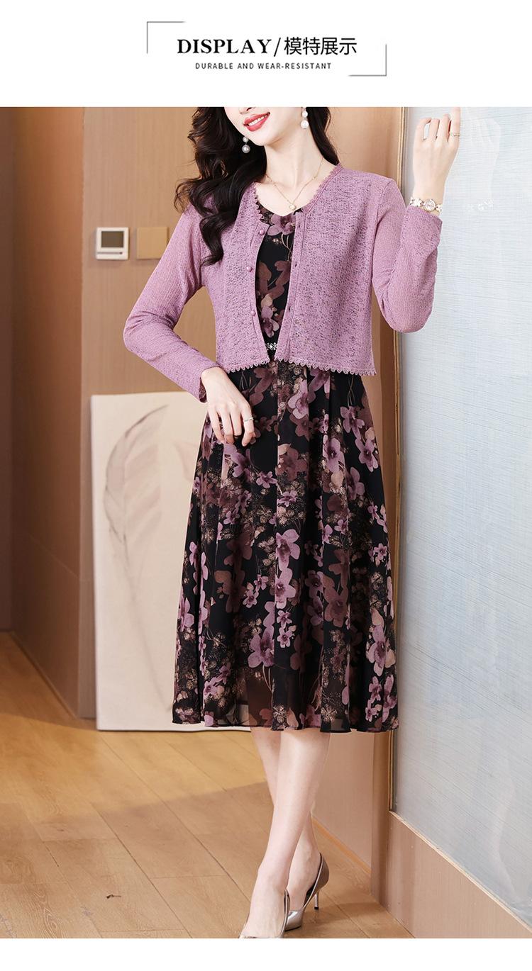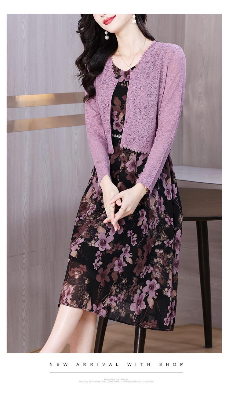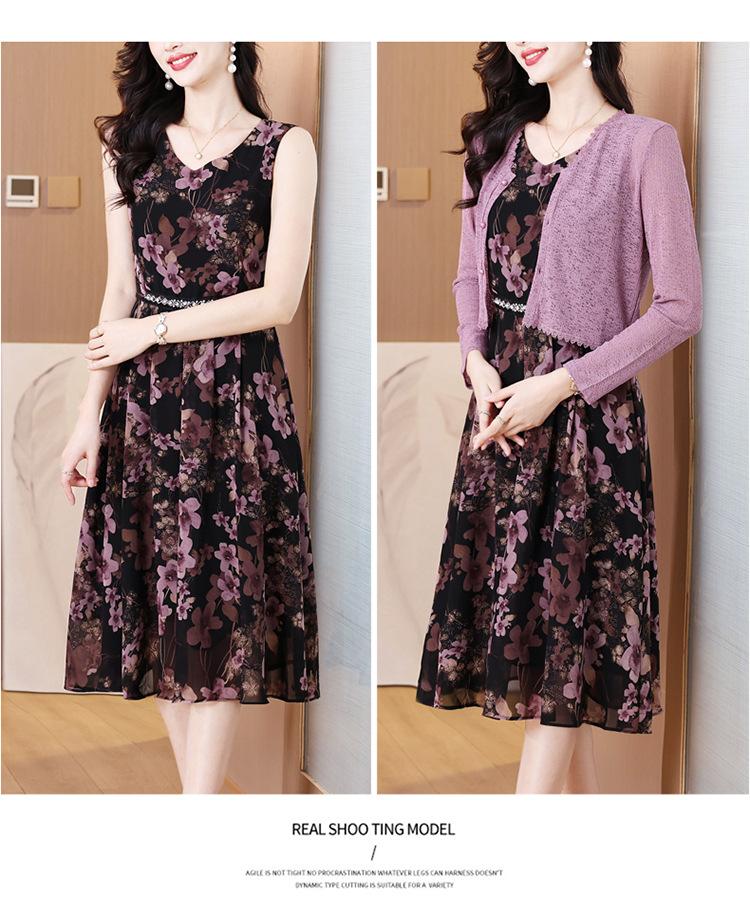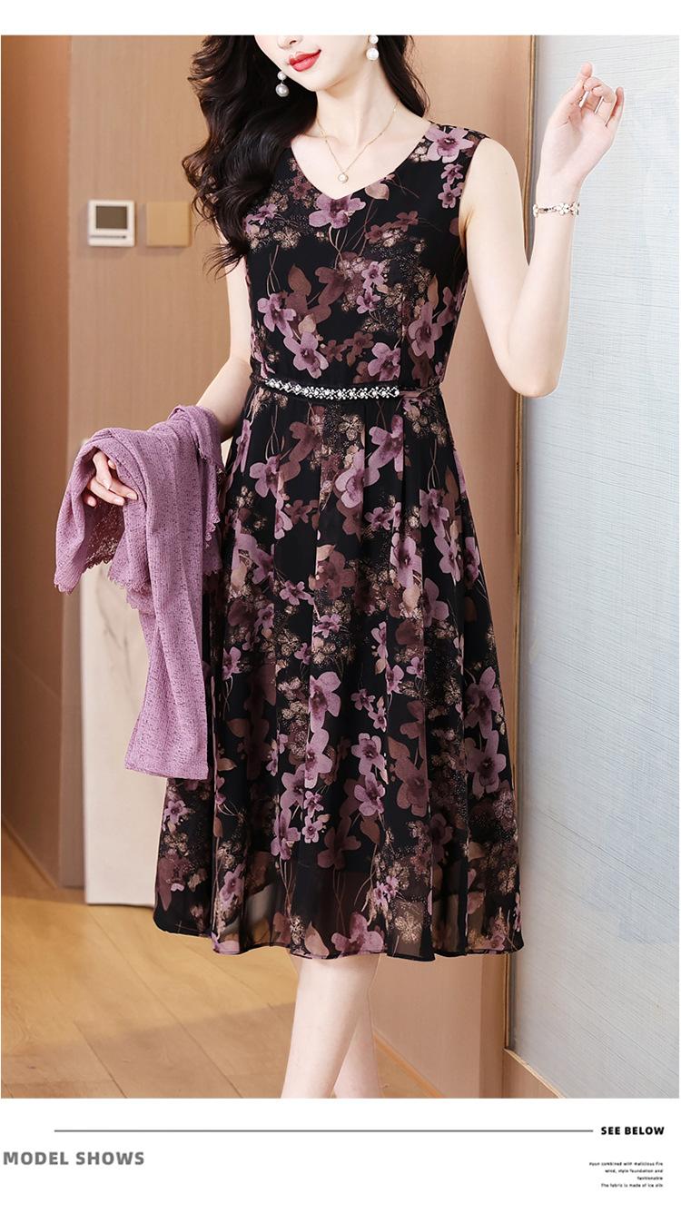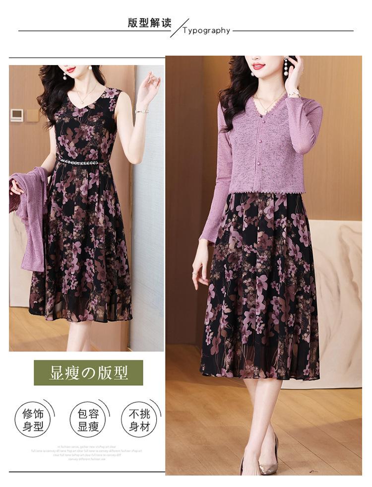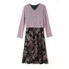 Conjunto de Vestido Floral con Cuello en V de Moda 2025 Nuevo Elegante de Gama Alta Reductor de Edad Adelgazante Versátil Conjunto de Dos Piezas