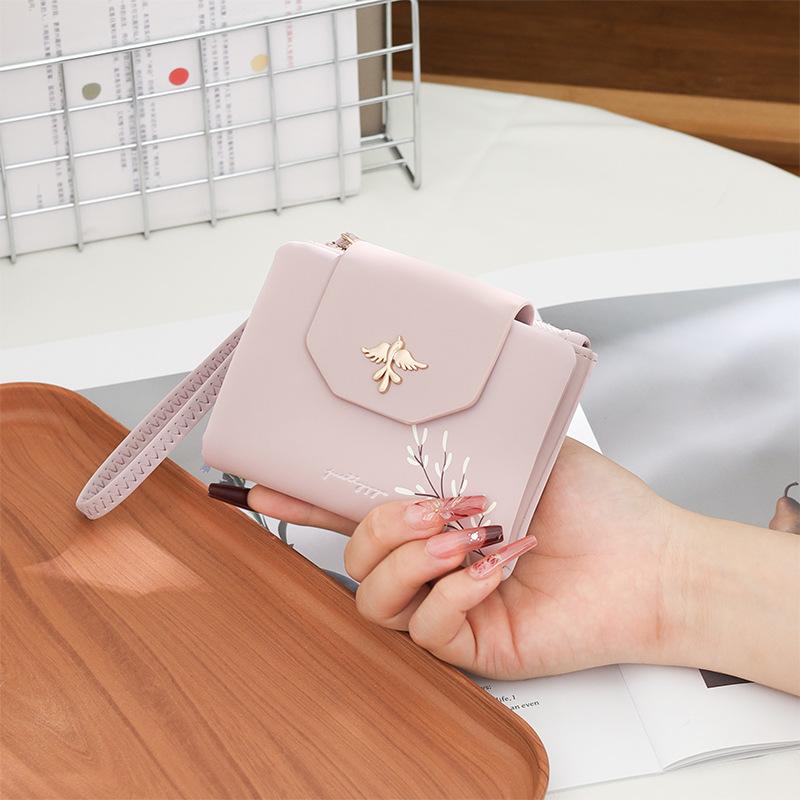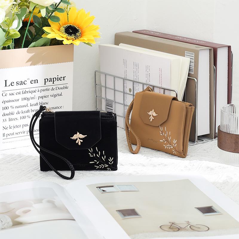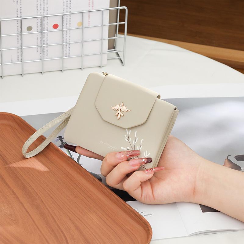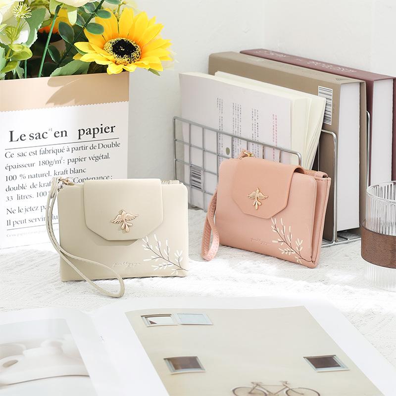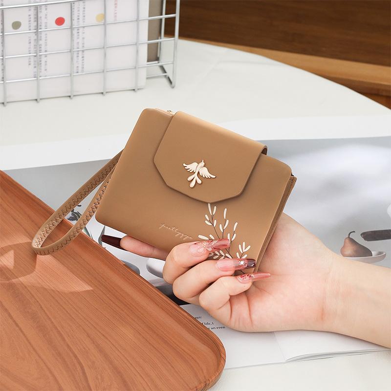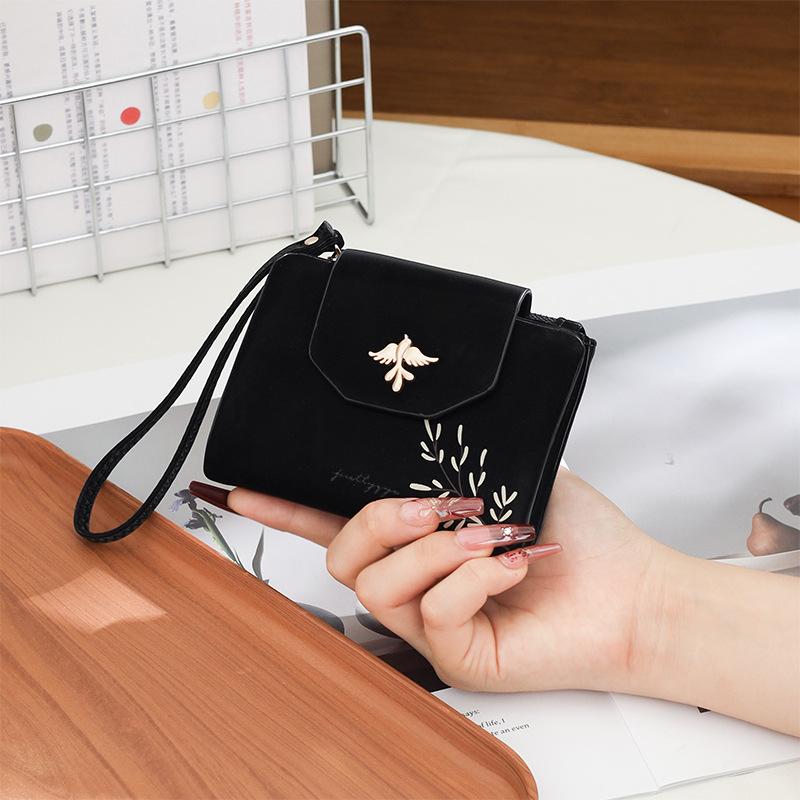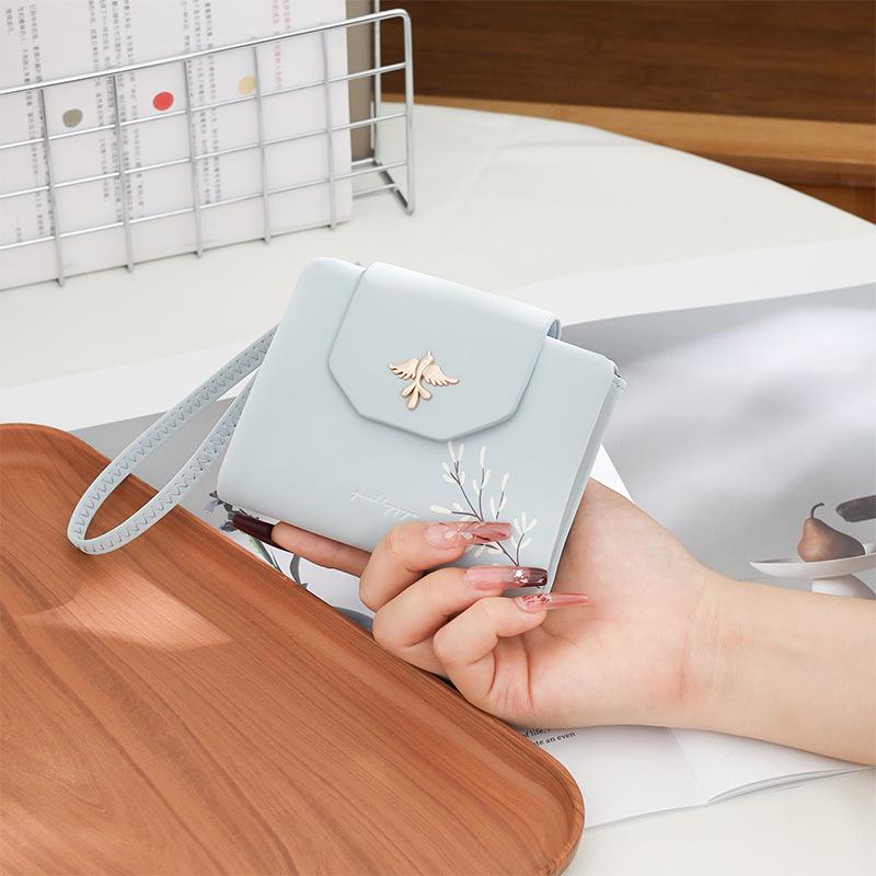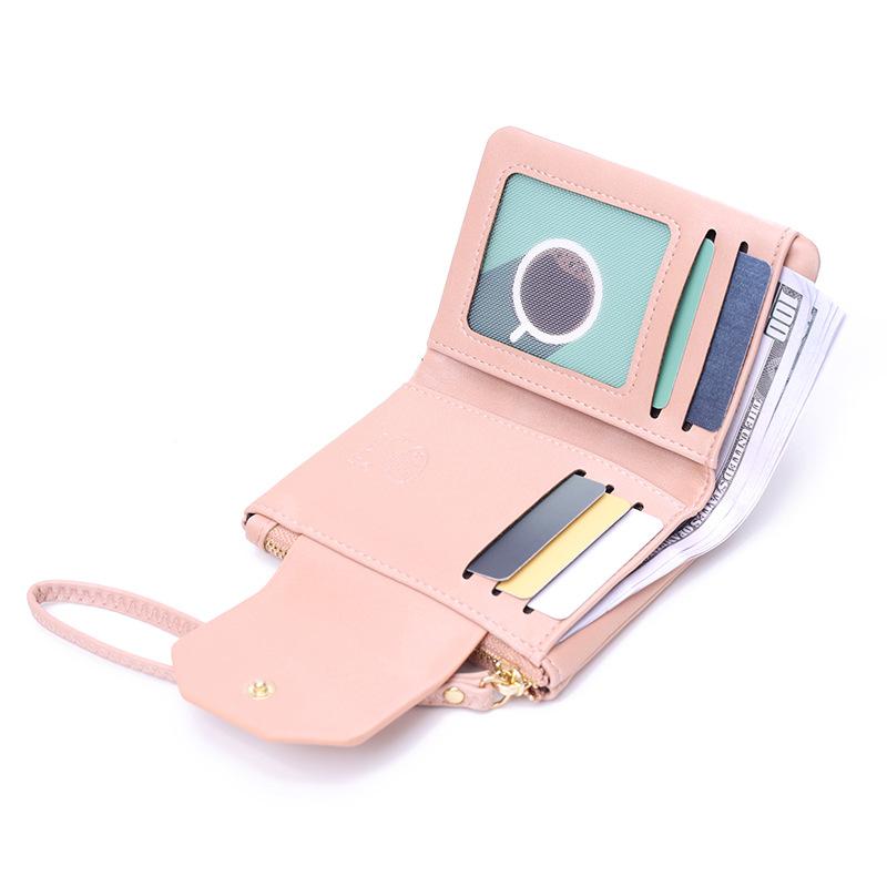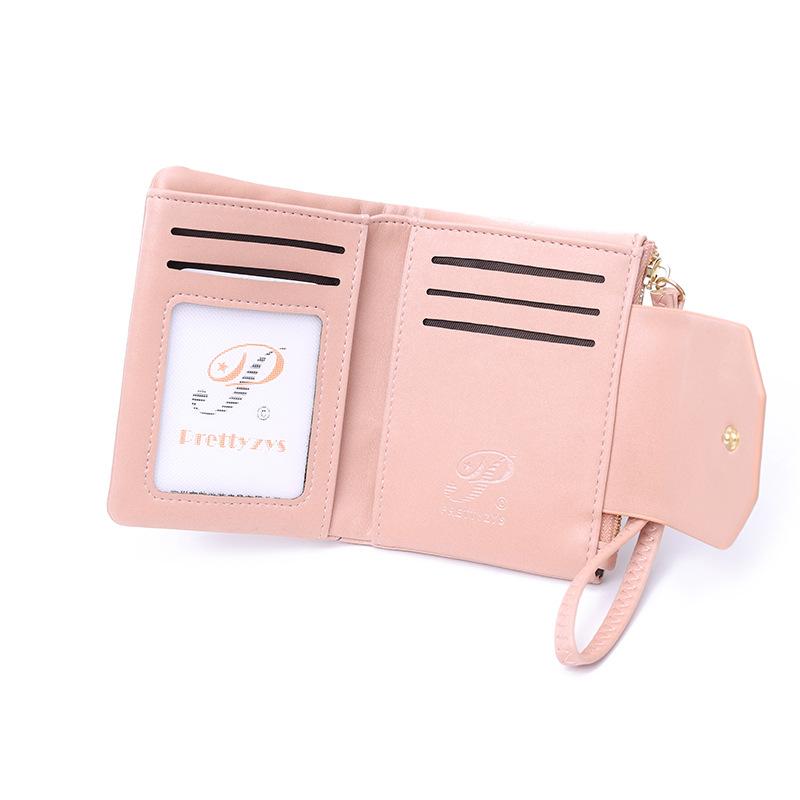| Cartera para comercio exterior transfronterizo de Amazon para mujer, corta, estilo japonés y coreano, fresca, de piel sintética, triple, con múltiples ranuras para tarjetas, cartera de nicho para mujer |