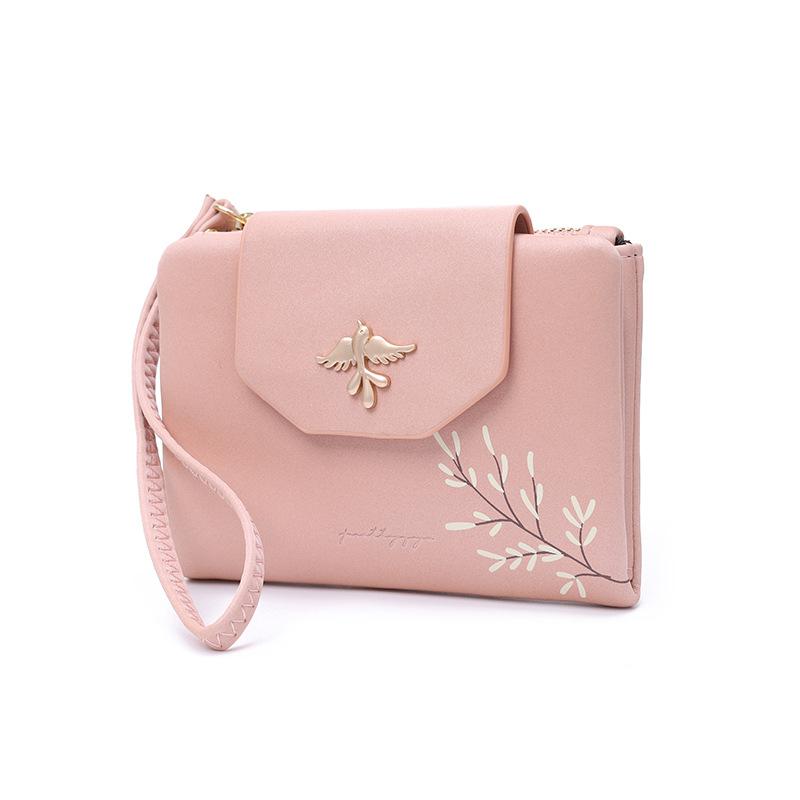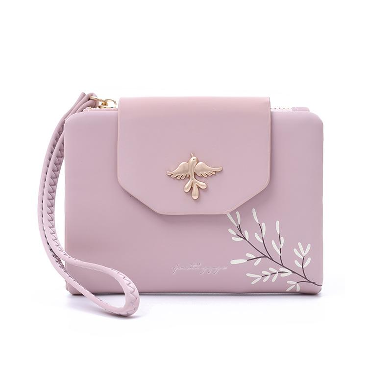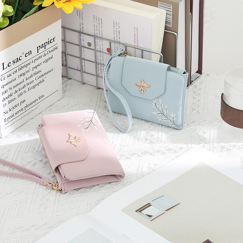 | Venta al por mayor al contado 2023, nueva cartera larga transfronteriza para mujer, bolso de mano pequeño y fresco con colgante de hoja suave de PU japonés y coreano para mujer |