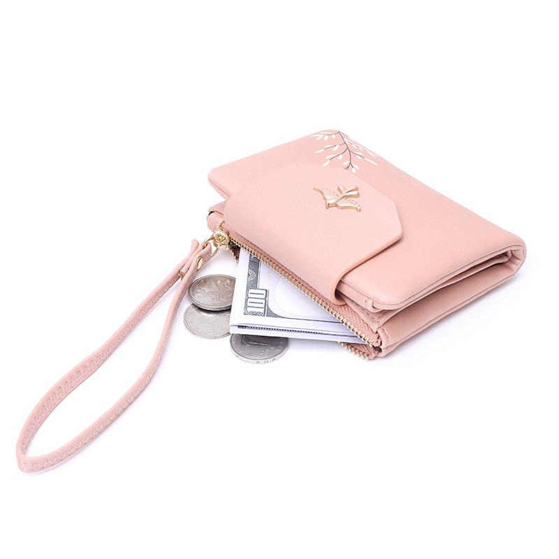 | Cartera de comercio exterior transfronterizo para mujer, larga, de cuero PU japonés y coreano, con hebilla de hoja fresca pequeña, simple y versátil, para mujer, tarjetero |