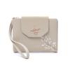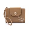 | Monedero corto con cremallera para mujer, estilo japonés, pequeño, fresco, de cuero sintético, con colgante de hoja y tres pliegues, para comercio exterior transfronterizo |