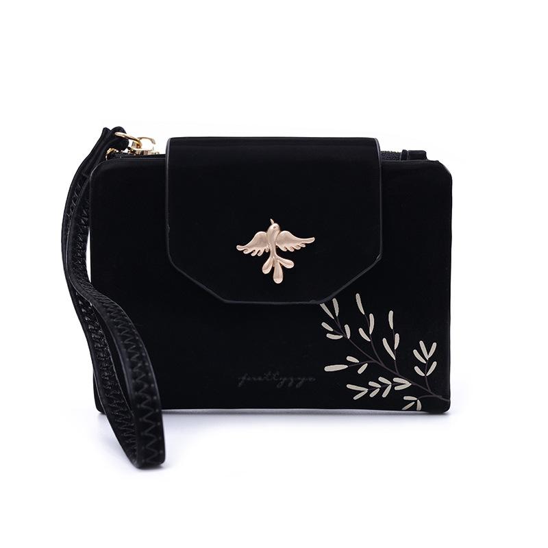 | Cartera corta para mujer estilo retro europeo y americano de PU esmerilado con hebilla metálica de hoja, cremallera, plegable, multifuncional, monedero para estudiantes |