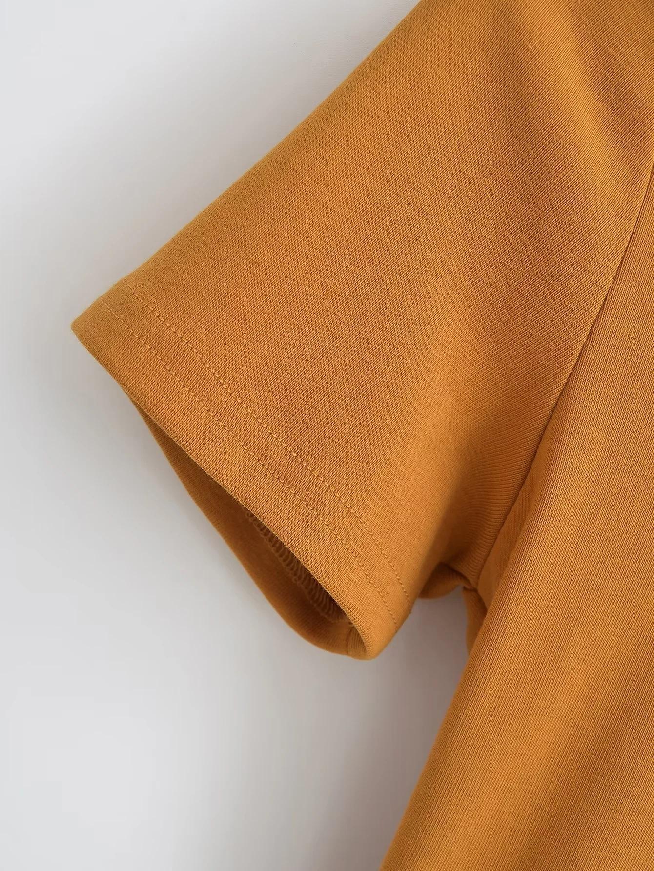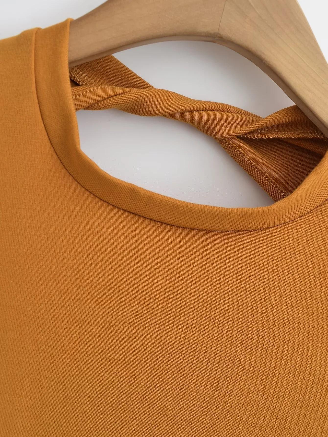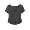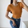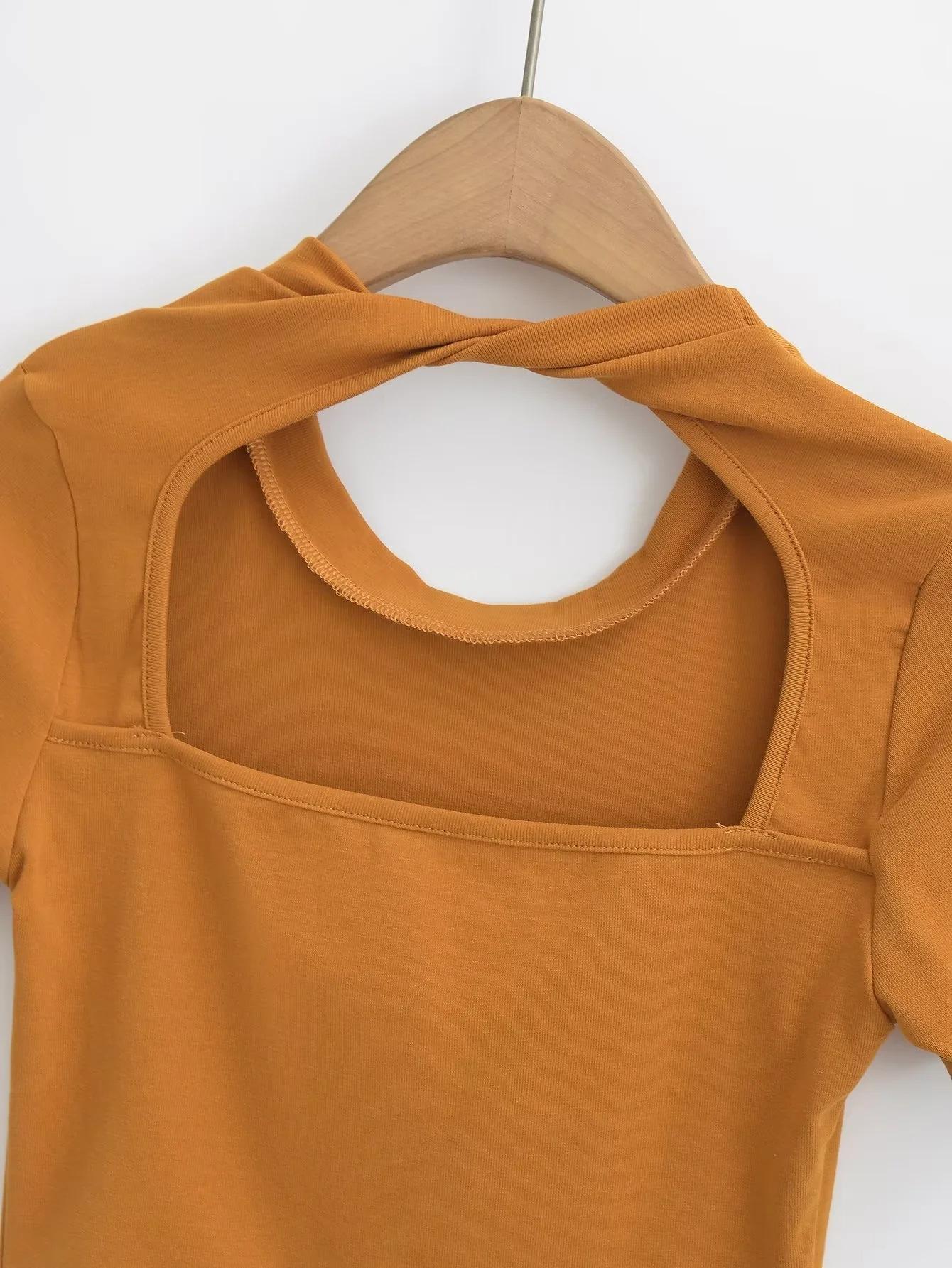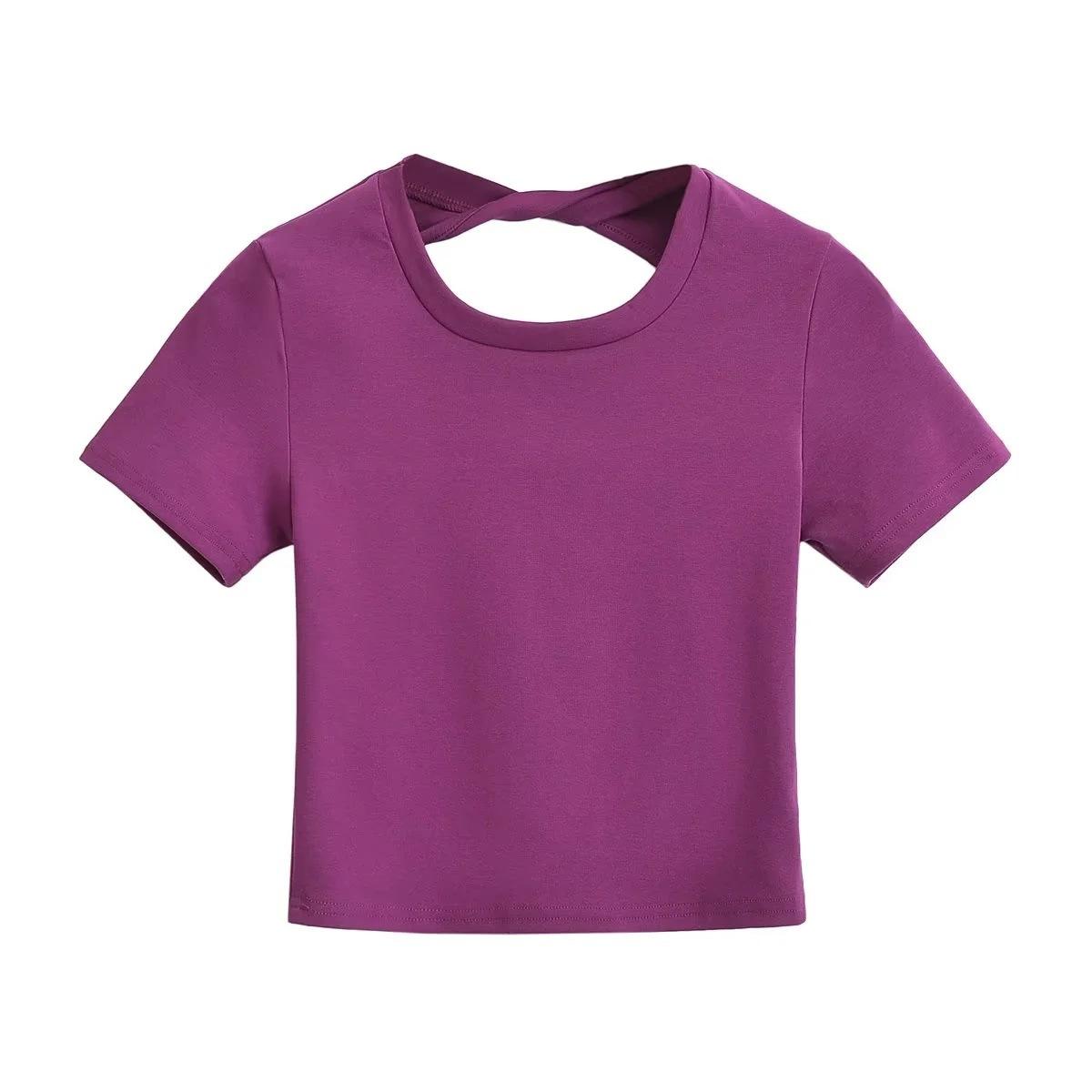 2025 Nuevo Estilo de Verano Estilo Sexy Americano Cuello Redondo Diseño de Botones Espalda Torcida Sin Espalda Cuello Redondo Manga Corta Camiseta Base
