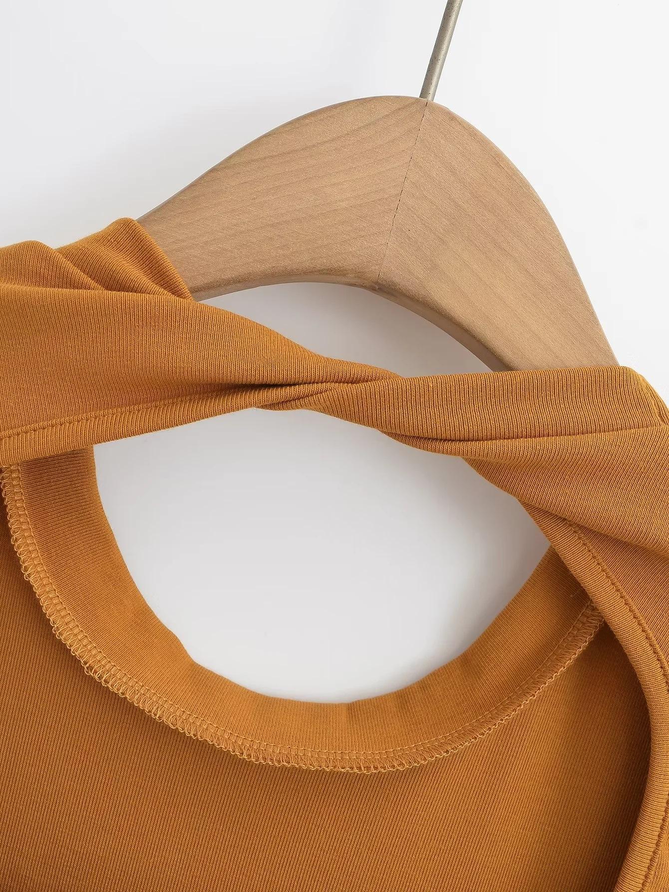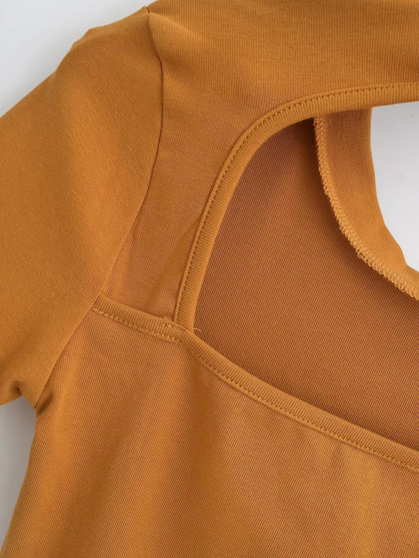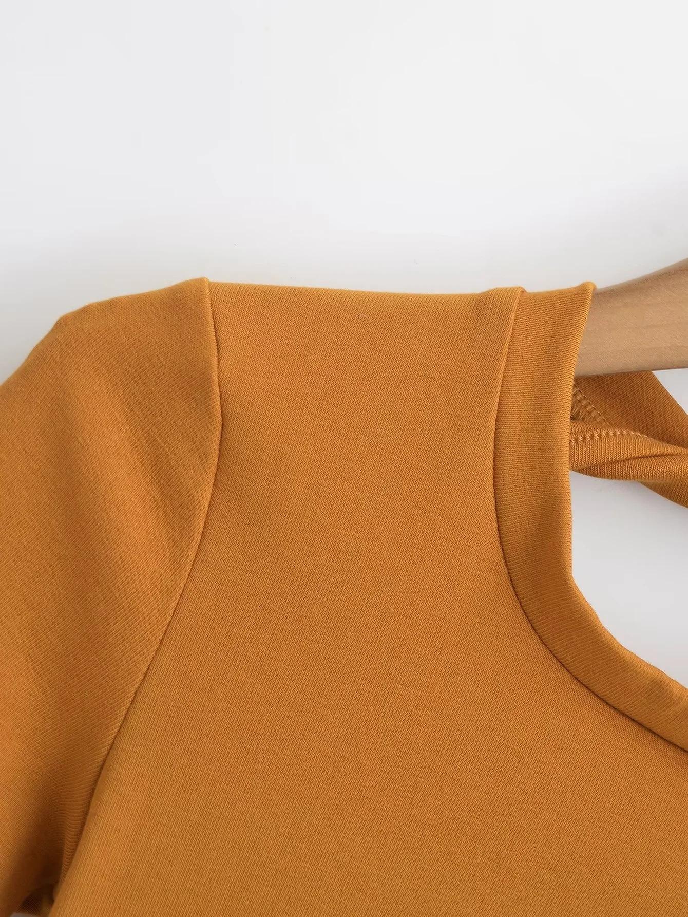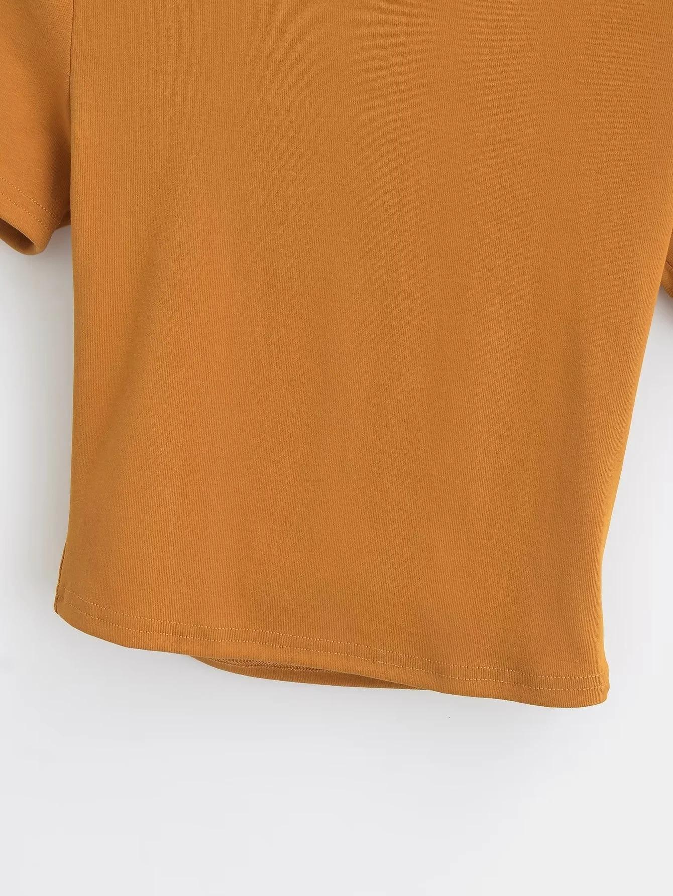 2025 Nuevo Estilo de Verano Estilo Sexy Americano Cuello Redondo Diseño de Botones Espalda Torcida Sin Espalda Cuello Redondo Manga Corta Camiseta Base