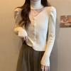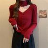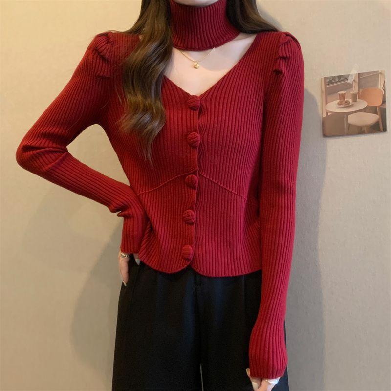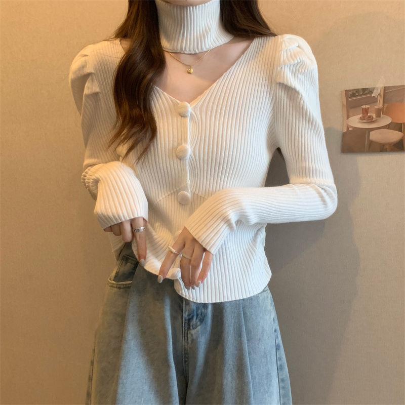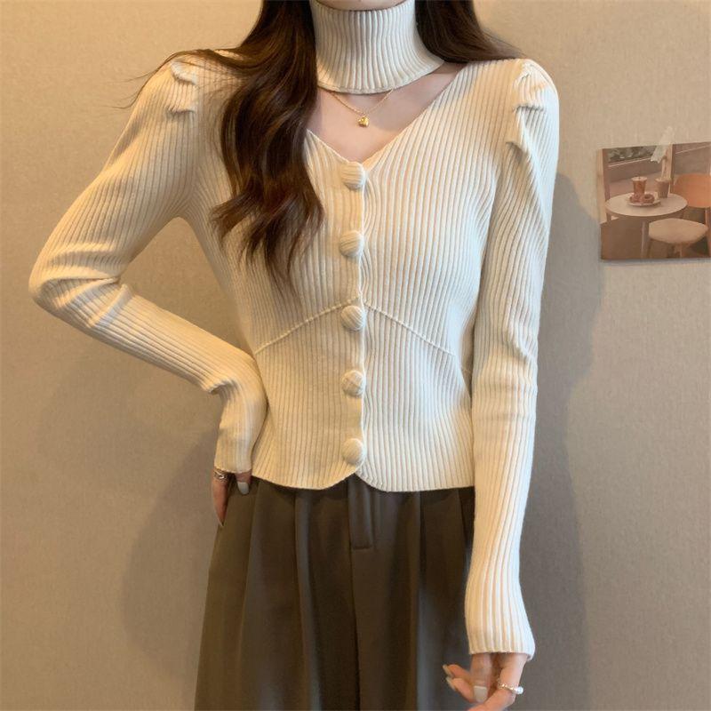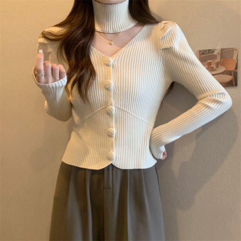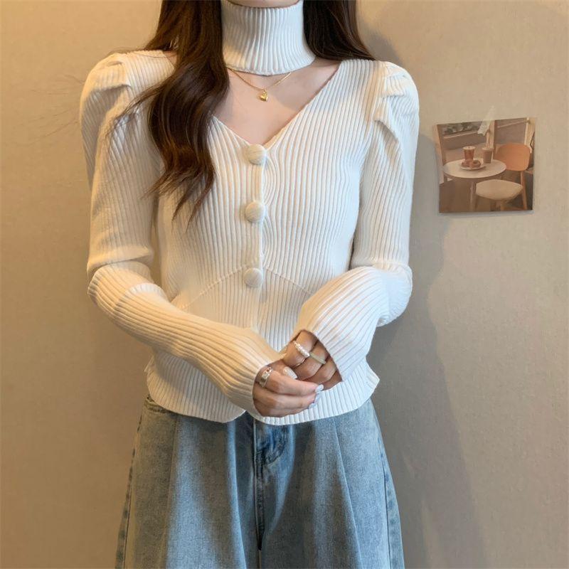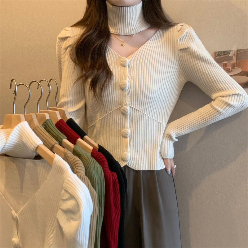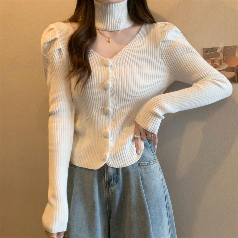 Tejido de punto francés de manga larga para mujer, Tejido de punto para llevar debajo, Estilo transfronterizo de primavera, Estilo nuevo, Top halter de cuello en V, Moderno