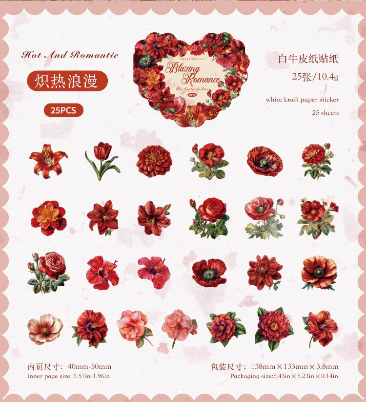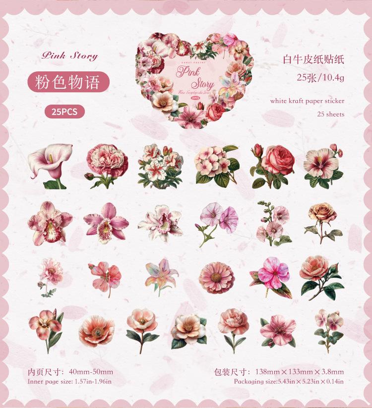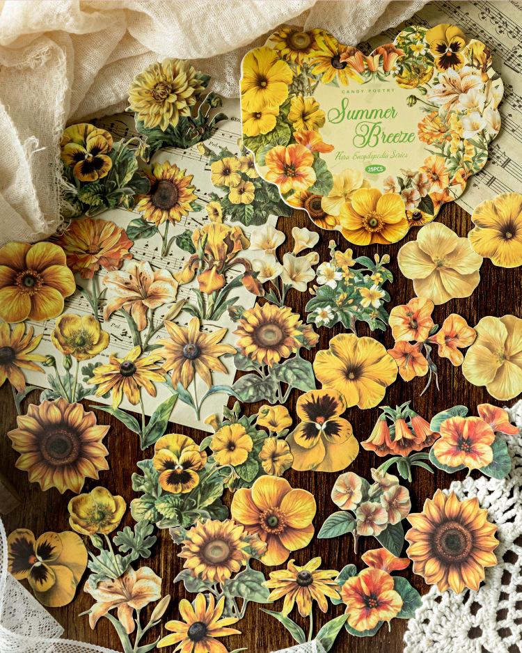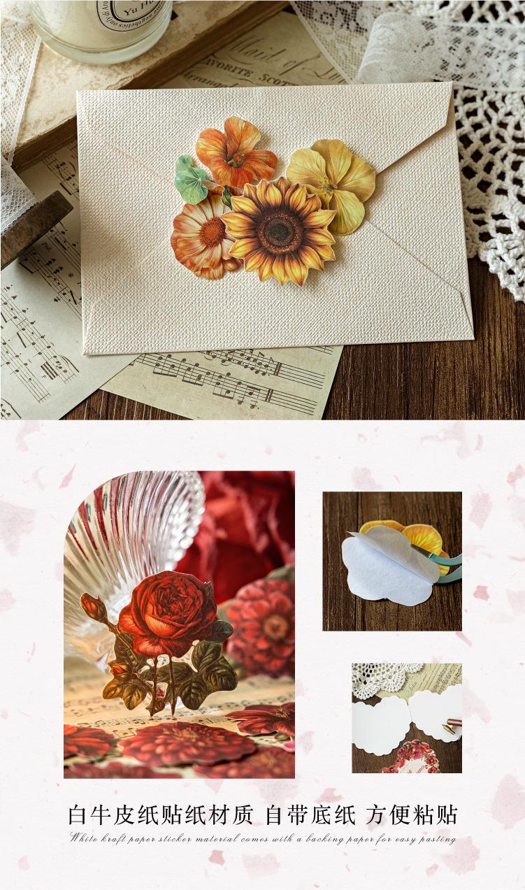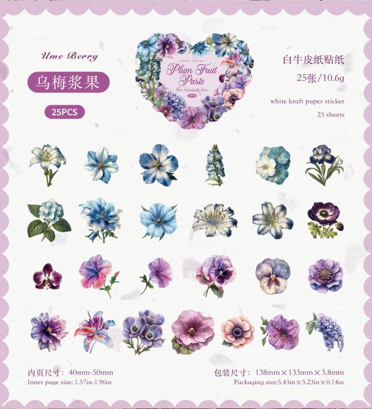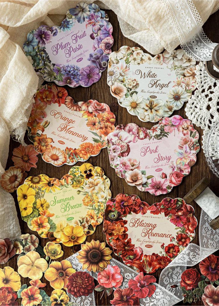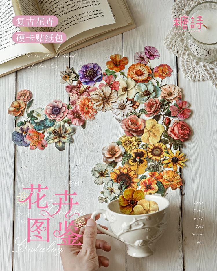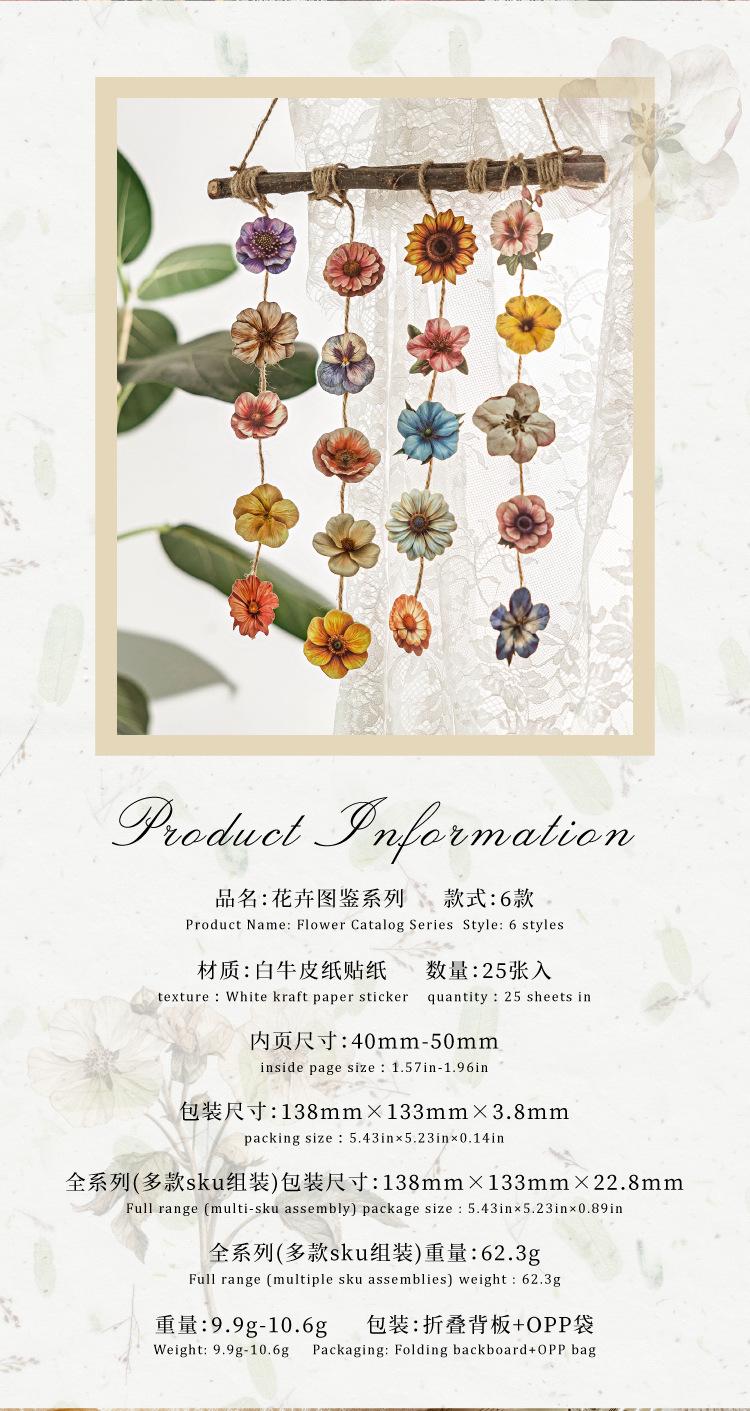 Paquete de Stickers Poesía de Azúcar Transfronteriza Serie Ilustrada Enciclopedia Floral Diario Floral Retro Stickers de Material Versátil 25 Hojas 6 Diseños