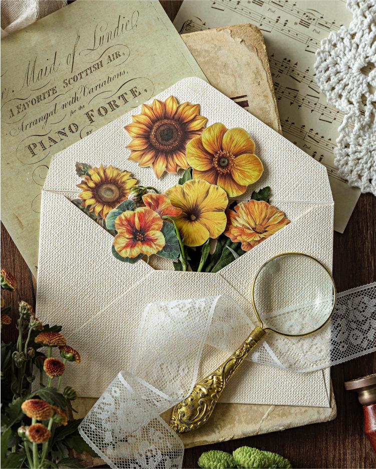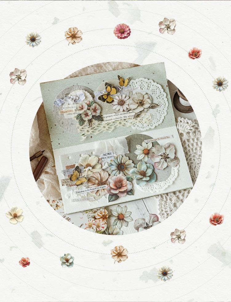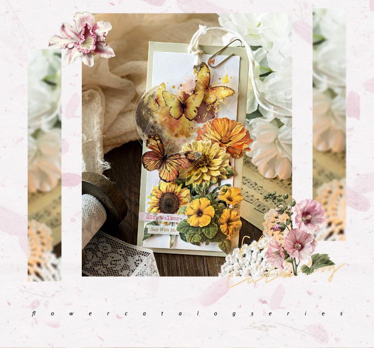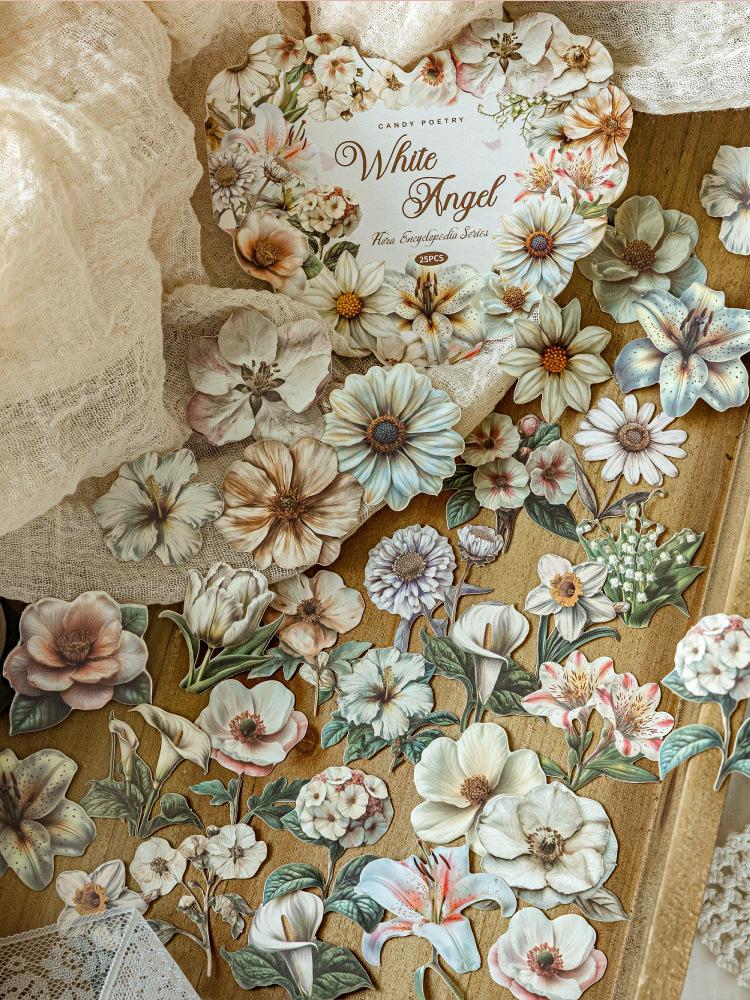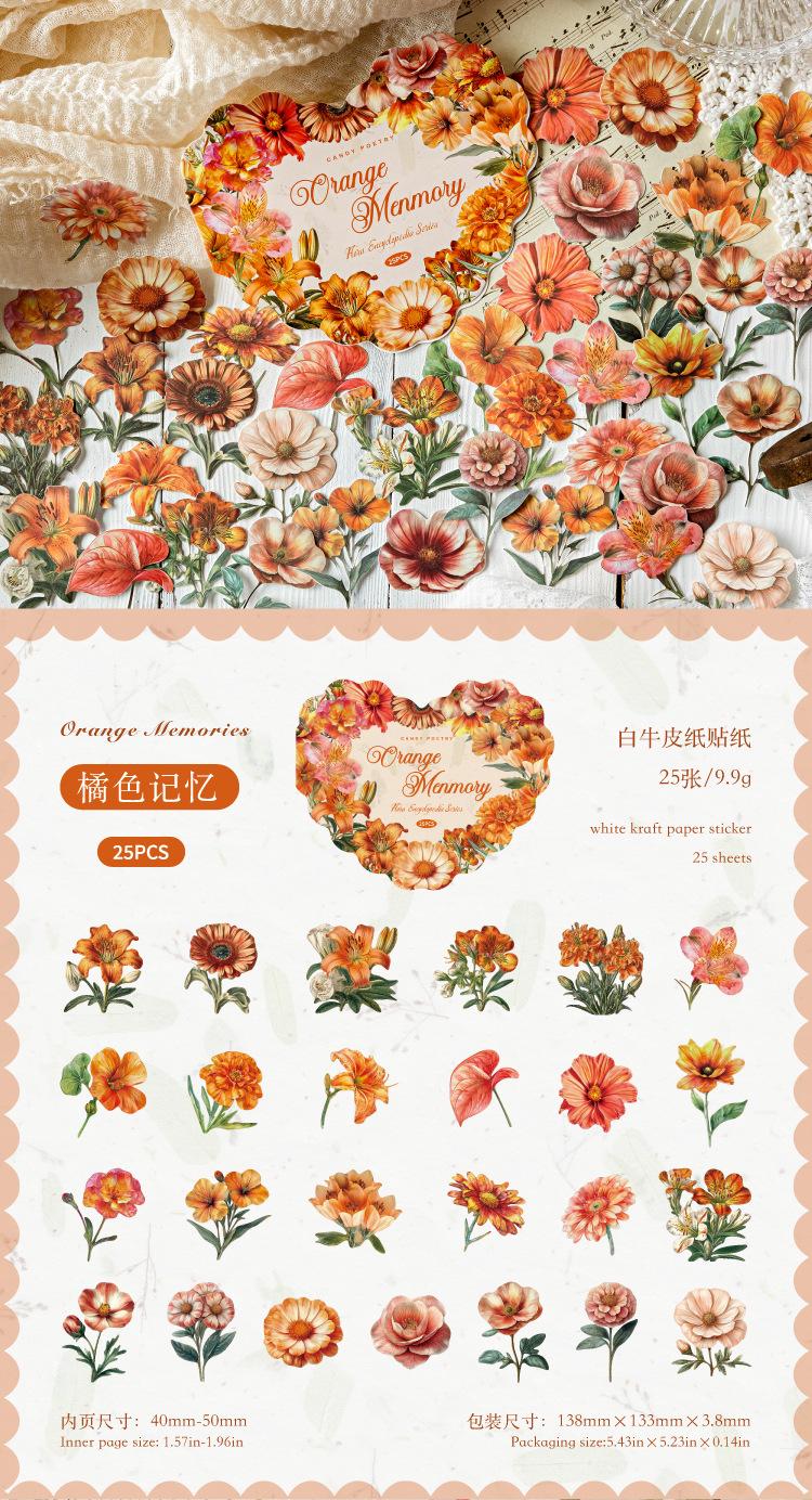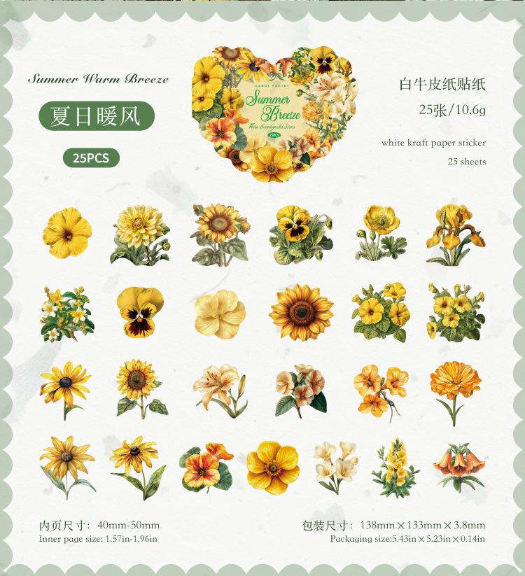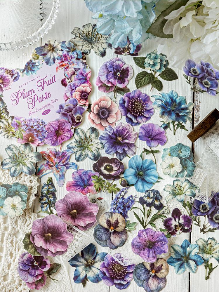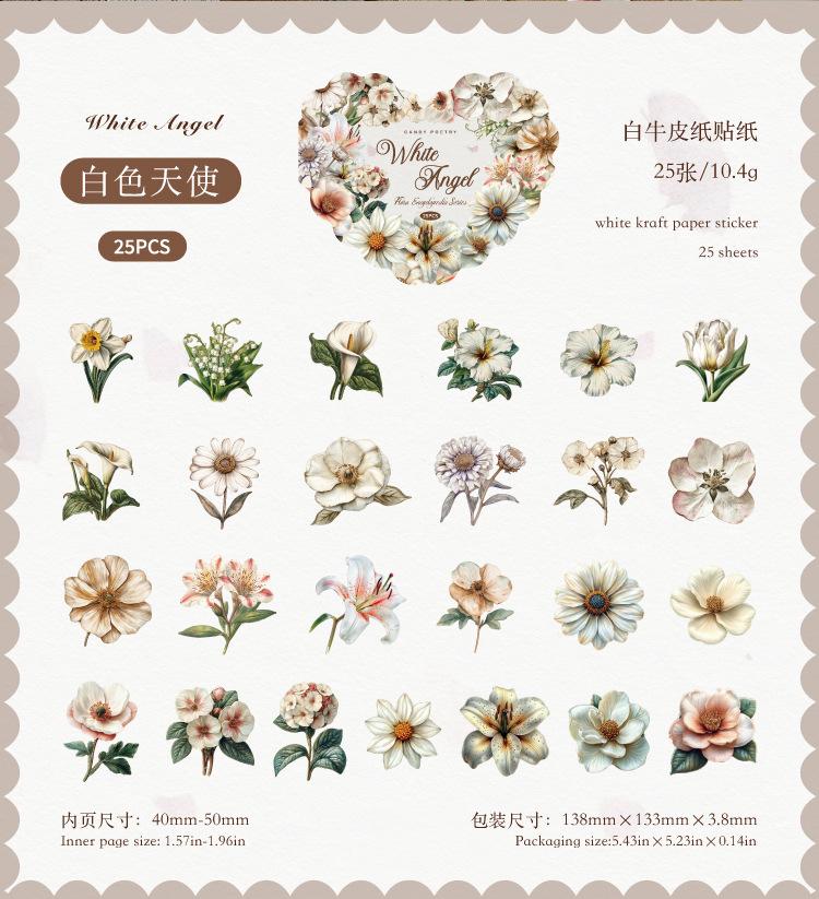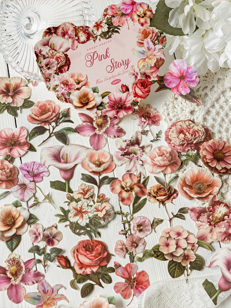 Paquete de Stickers Poesía de Azúcar Transfronteriza Serie Ilustrada Enciclopedia Floral Diario Floral Retro Stickers de Material Versátil 25 Hojas 6 Diseños