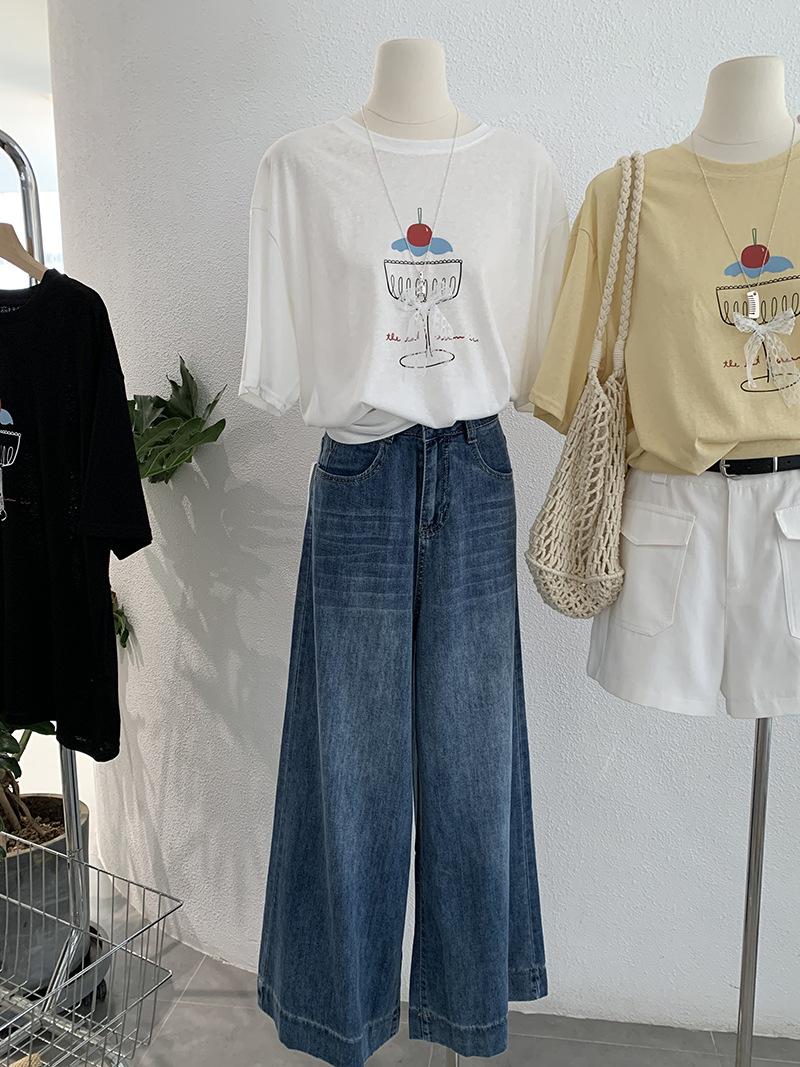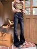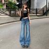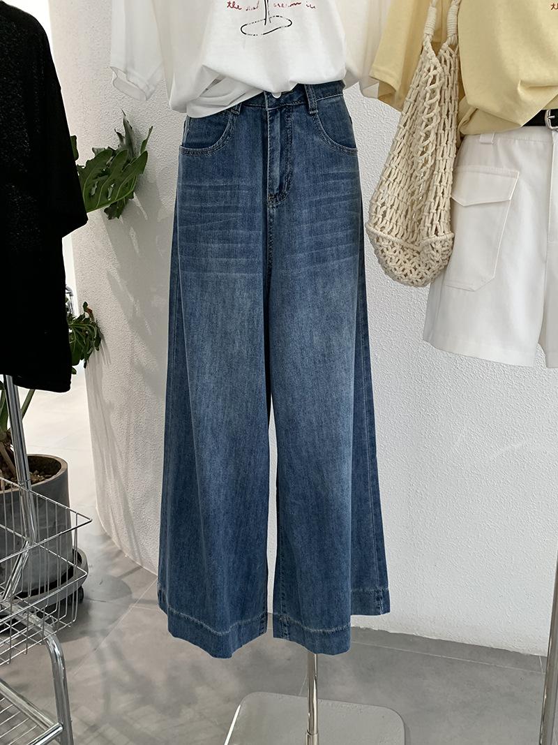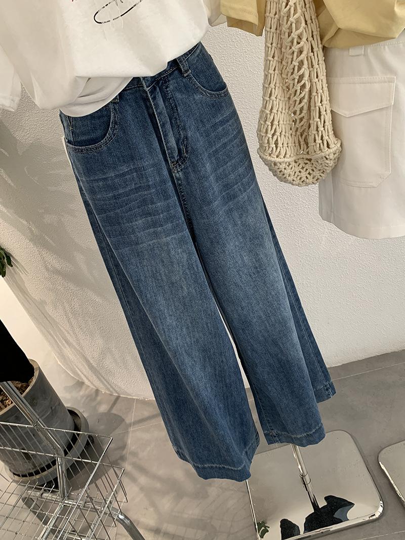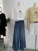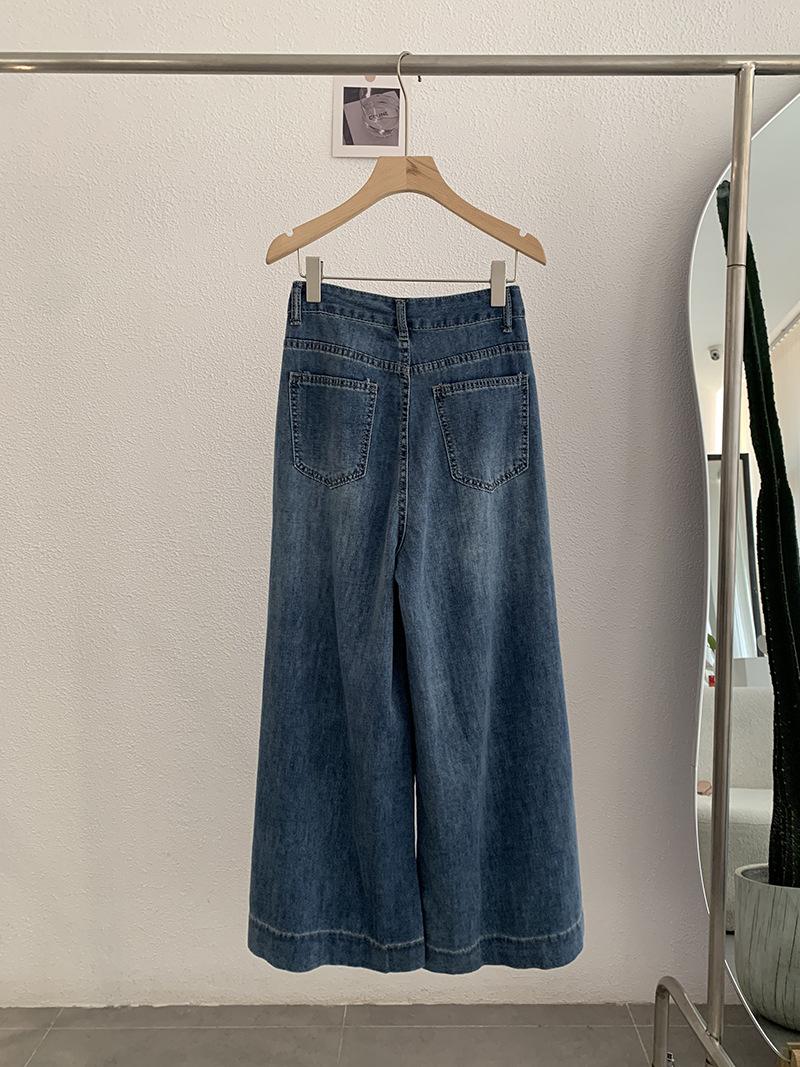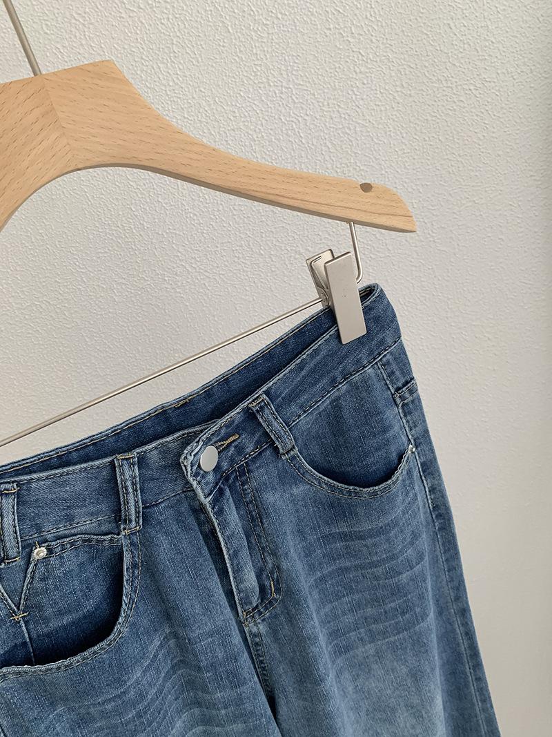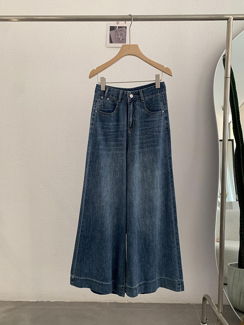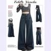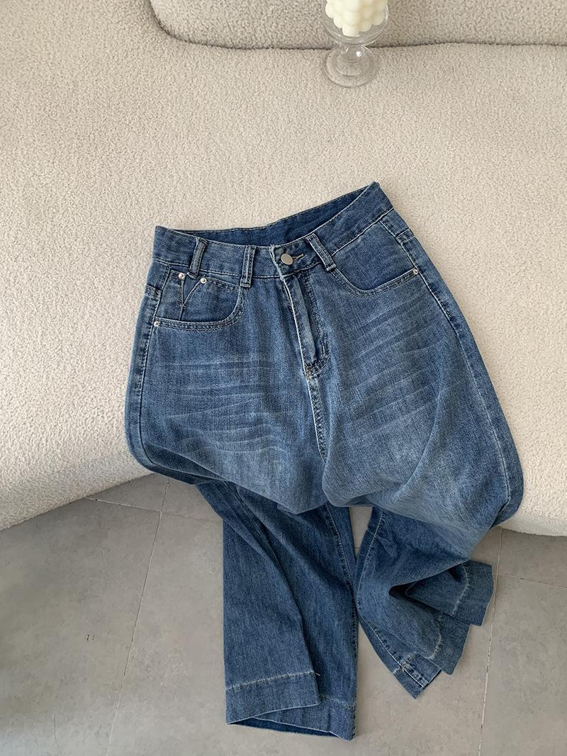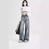 Omalai Jeans Versátiles de Estilo Coreano de Cintura Alta Retro Estilo Acampanado Grande Drapeados para Mujer Otoño Nueva Tendencia 4116