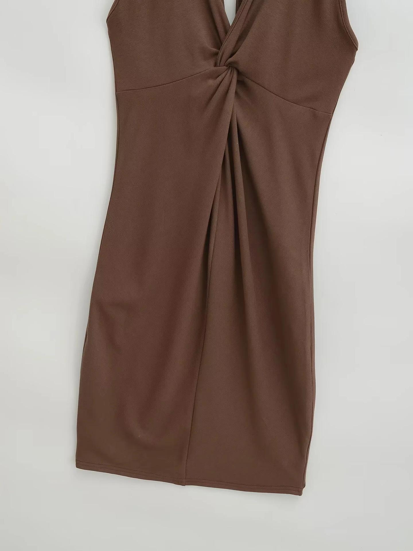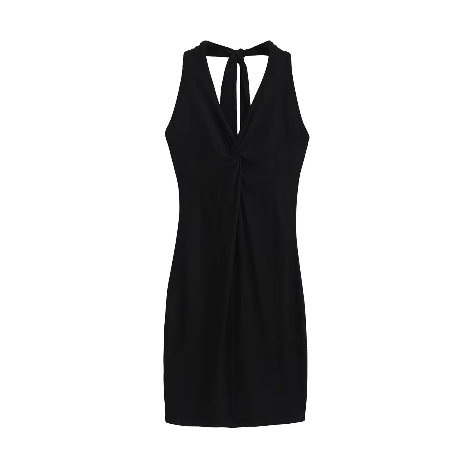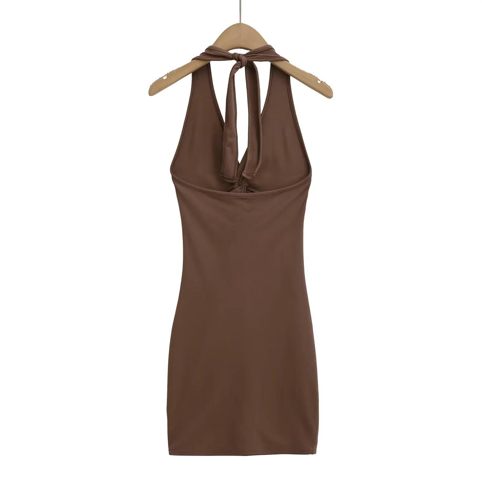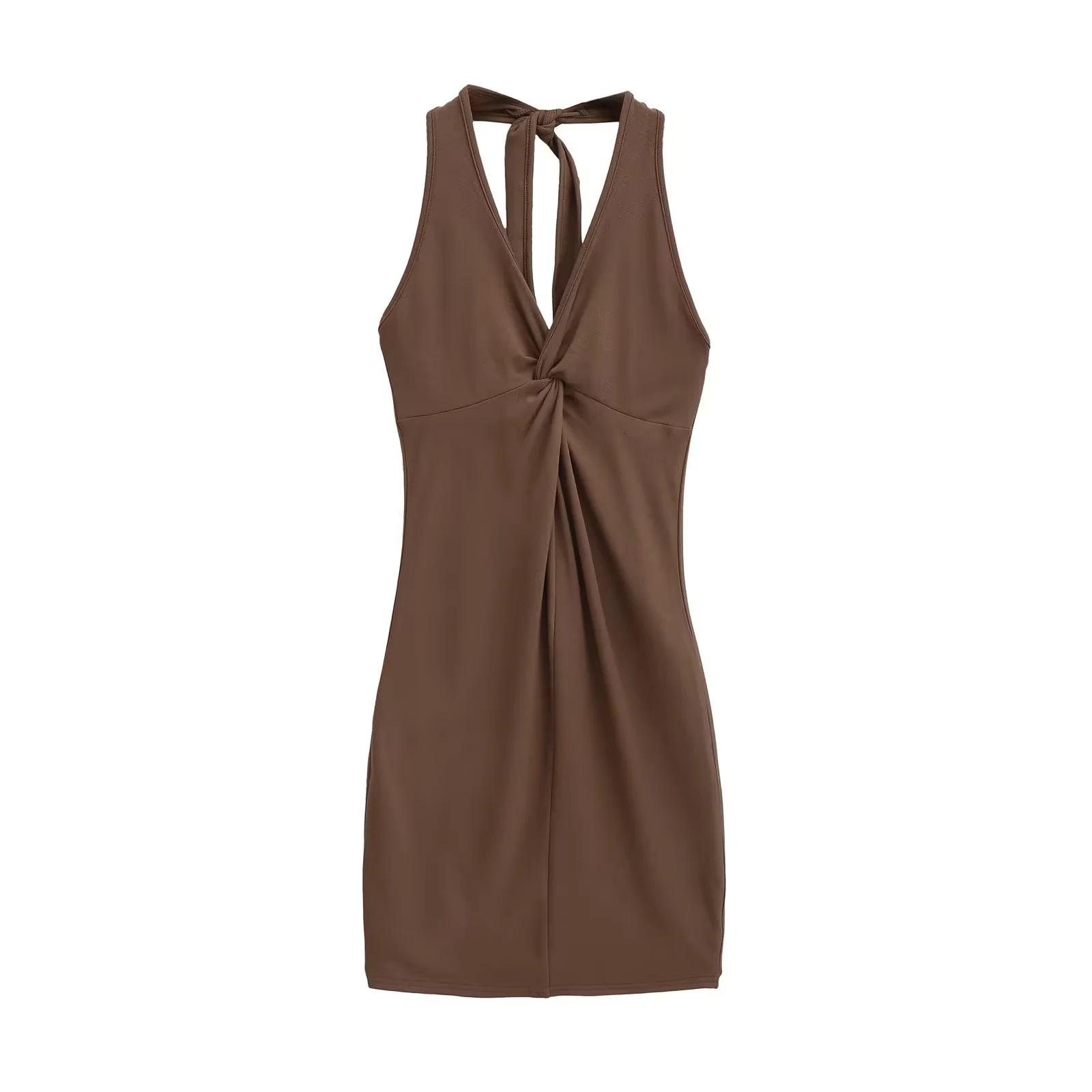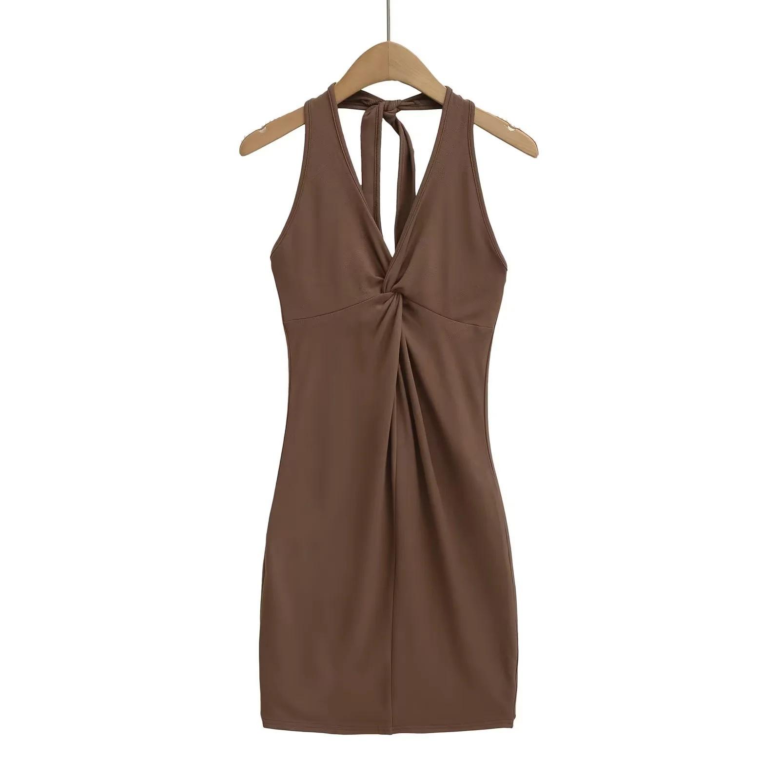 Ins Puro Deseo Torcido Cuello en V Hermoso Espalda Vestido Halter 2025 Verano Diseño Slim Sexy Falda Corta Ajustada a las Caderas