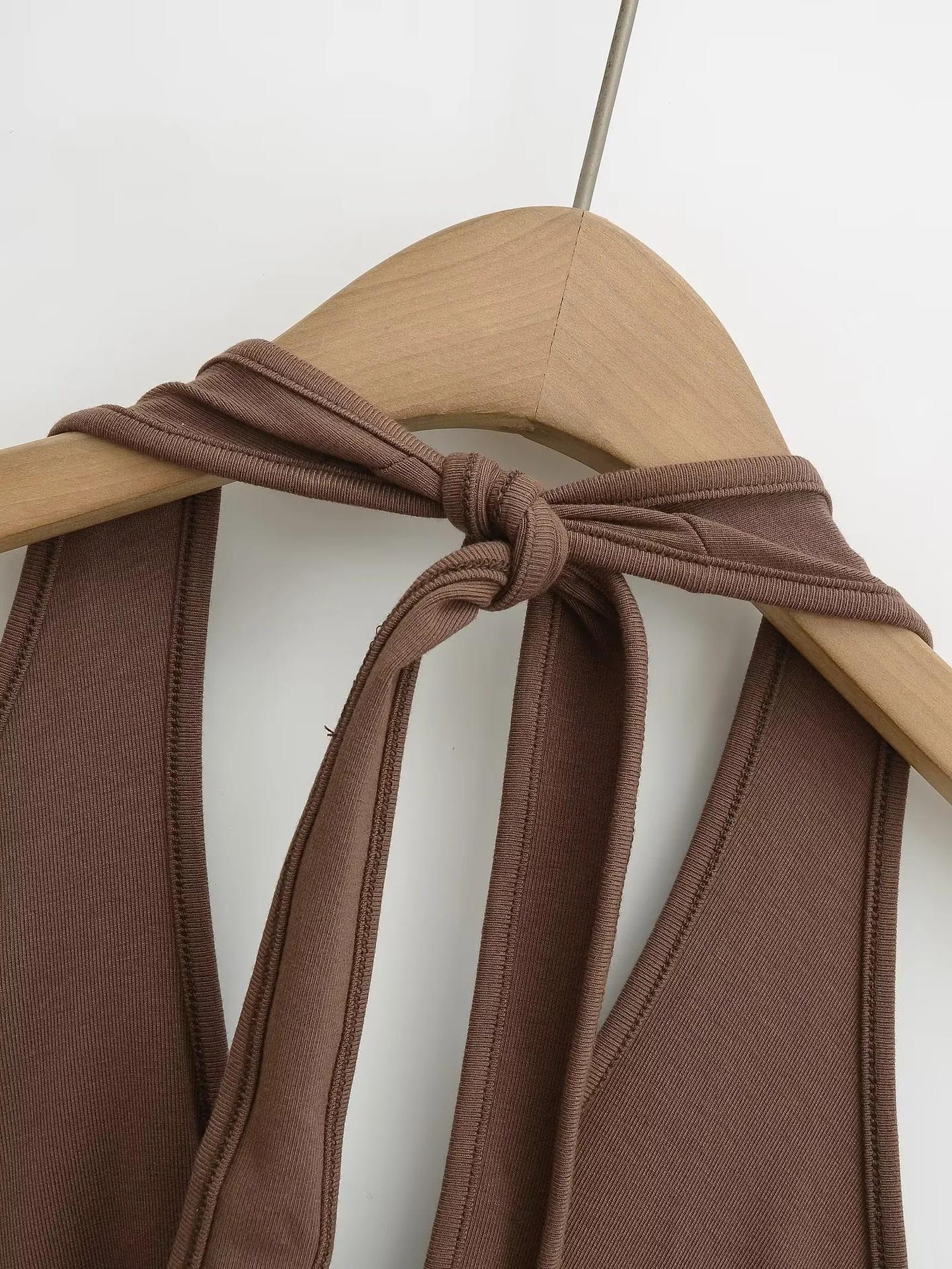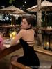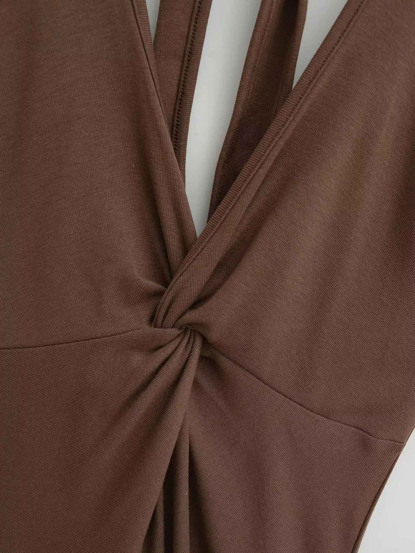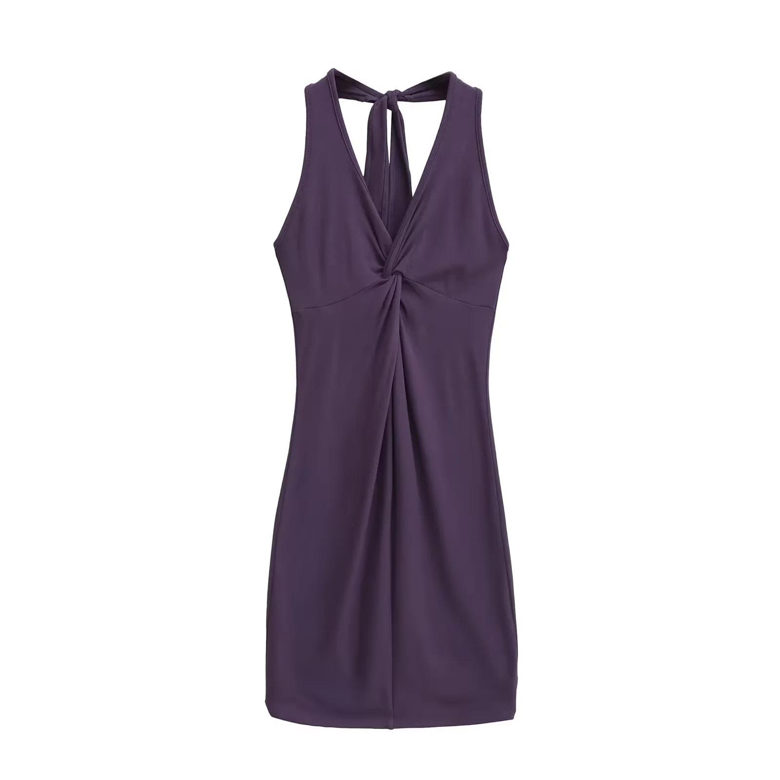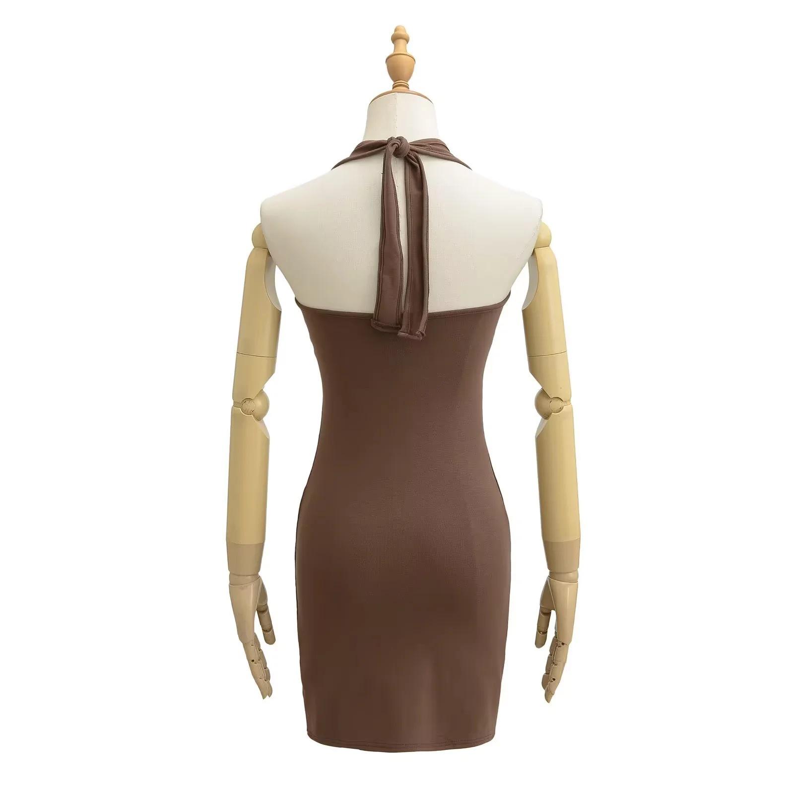Ins Puro Deseo Torcido Cuello en V Hermoso Espalda Vestido Halter 2025 Verano Diseño Slim Sexy Falda Corta Ajustada a las Caderas