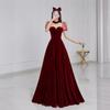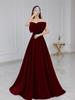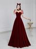 Fuentes de comercio exterior al por mayor Vestido de novia rojo vino princesa para banquete de brindis de boda