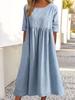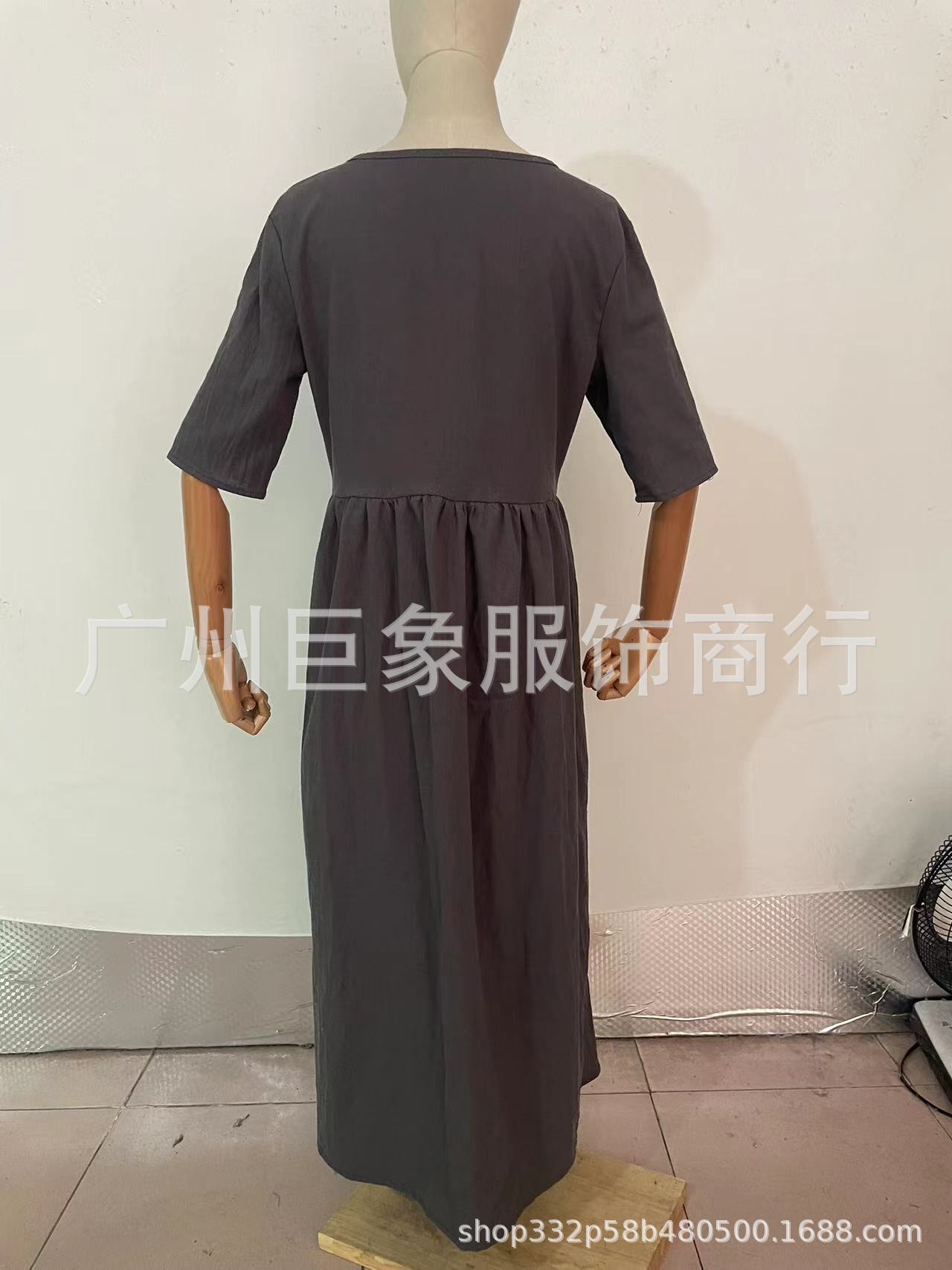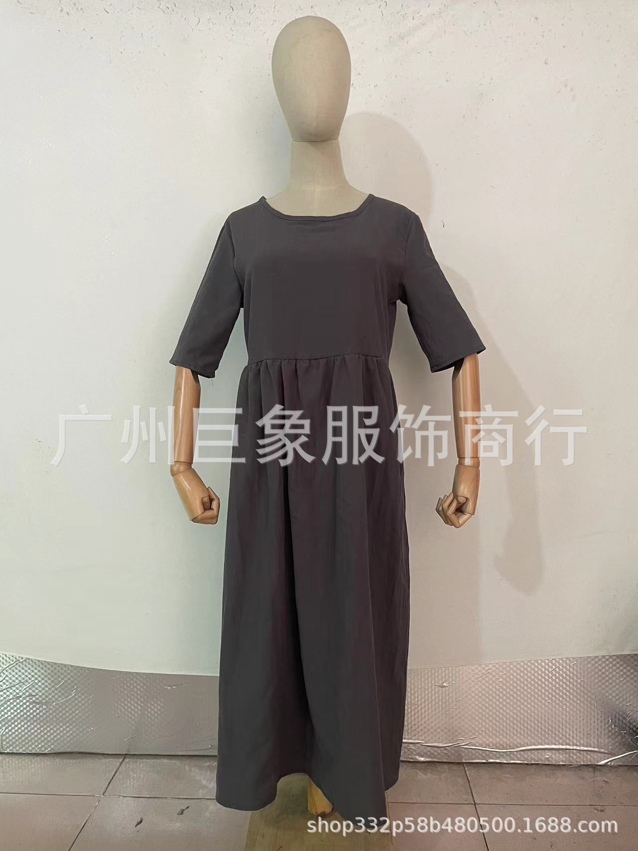 Transfronterizo Transfronterizo Comercio Exterior 2025 Primavera y Verano Nuevo Cuello Redondo Manga 5/8 Talla Grande Casual Suelto Largo Color Sólido Algodón y Lino