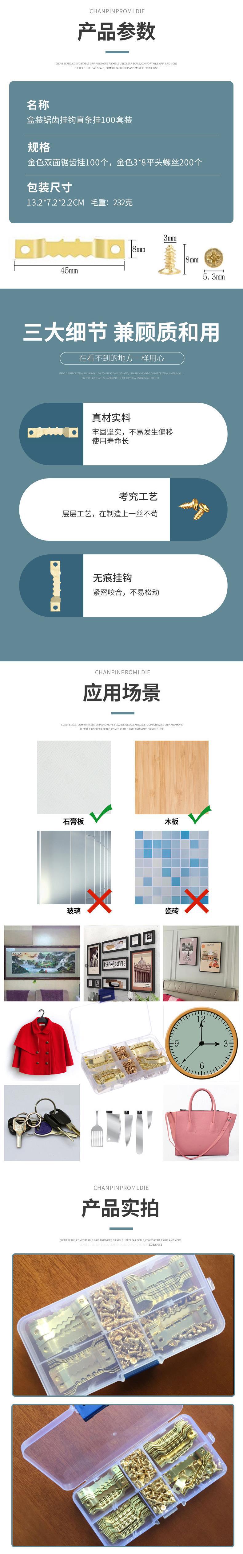 Caja de Oro de Doble Cara Serrada Colgante Cabeza Plana Tornillo Combinación Metal Barra Recta Colgante Marco de Fotos Gancho Accesorios Venta al por Mayor
