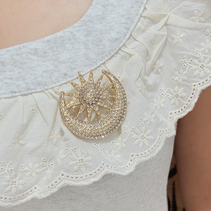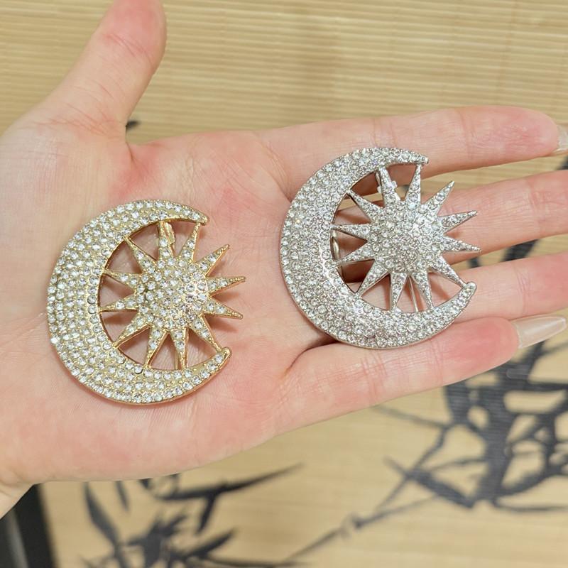 Nuevo Broche de Moda Versátil de Diamantes Completos Luna Girasol Anti-Exposición Sol y Luna Brillo Broche de Alta Gama