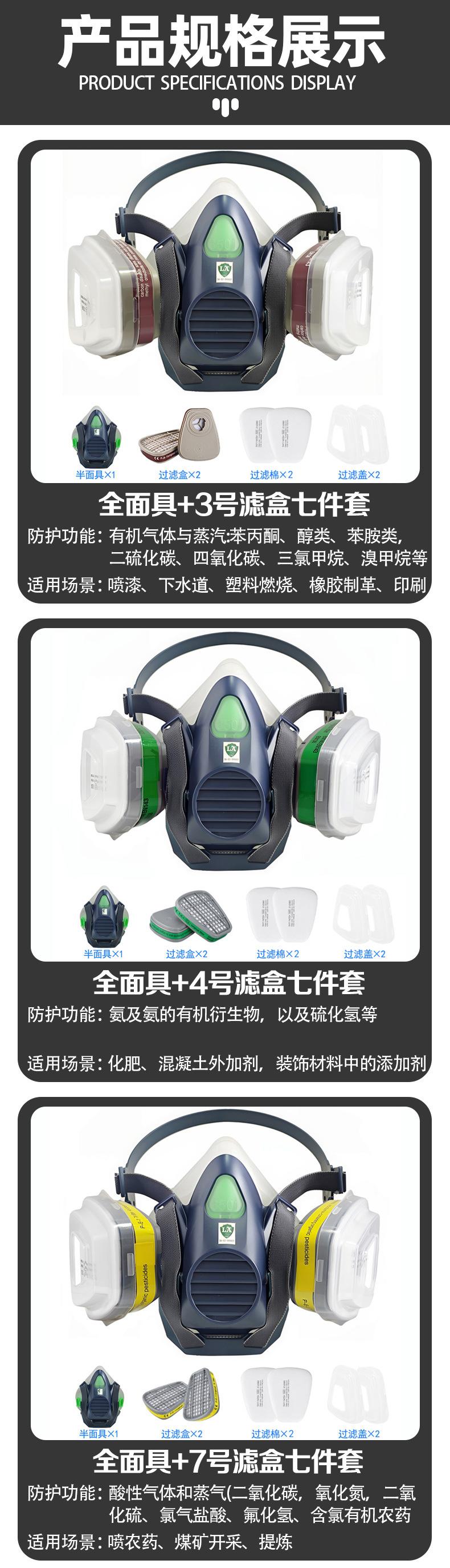 Silicone mask + no. 3 filter box seven-piece set, Silicone mask + no. 3 filter box seven-piece set + goggles, ...