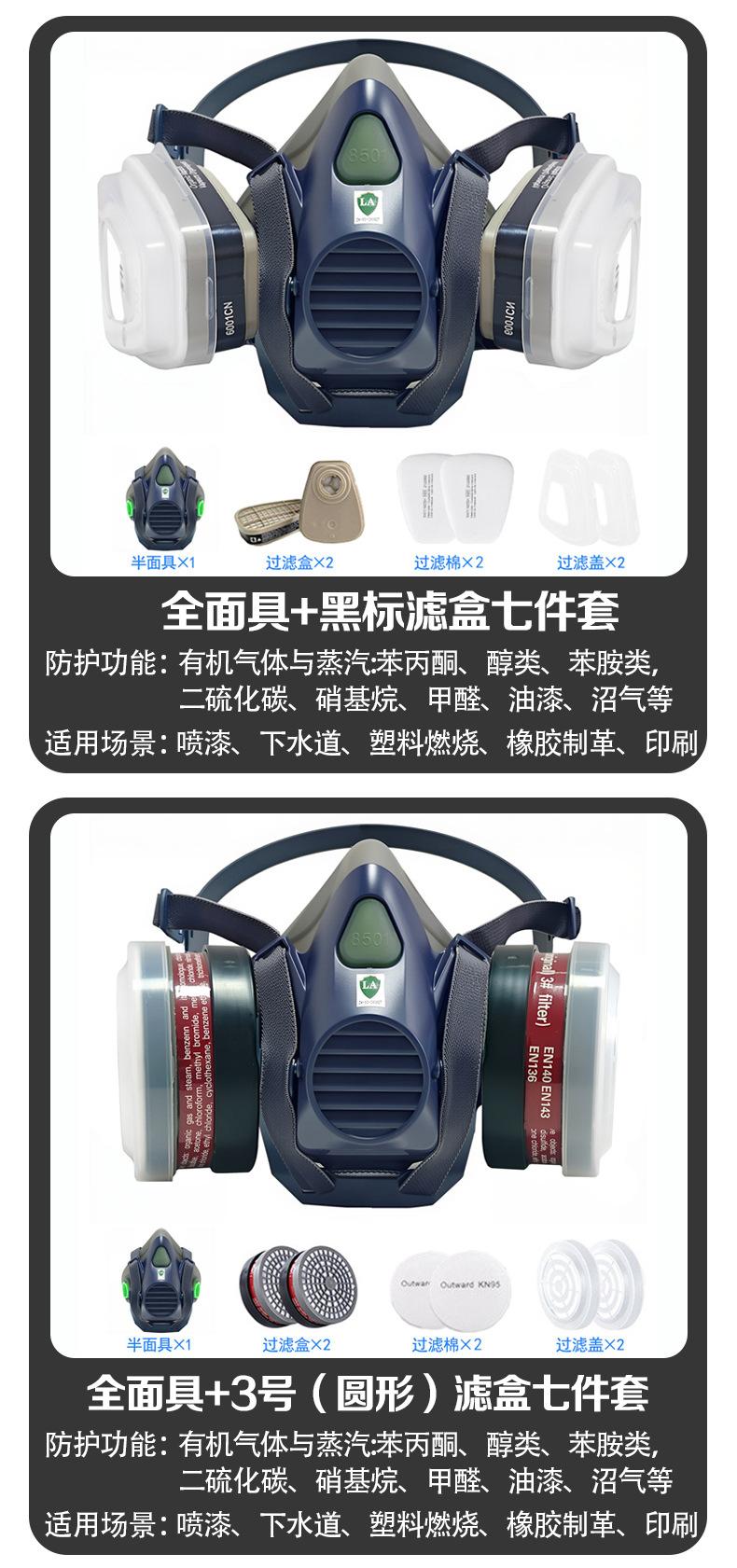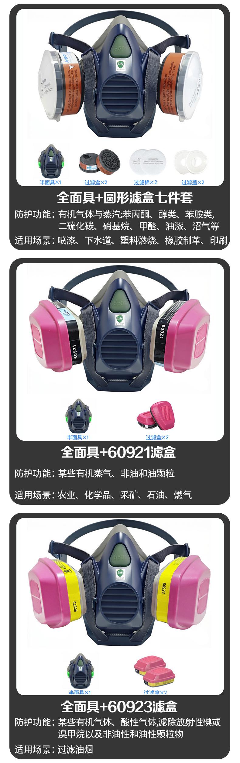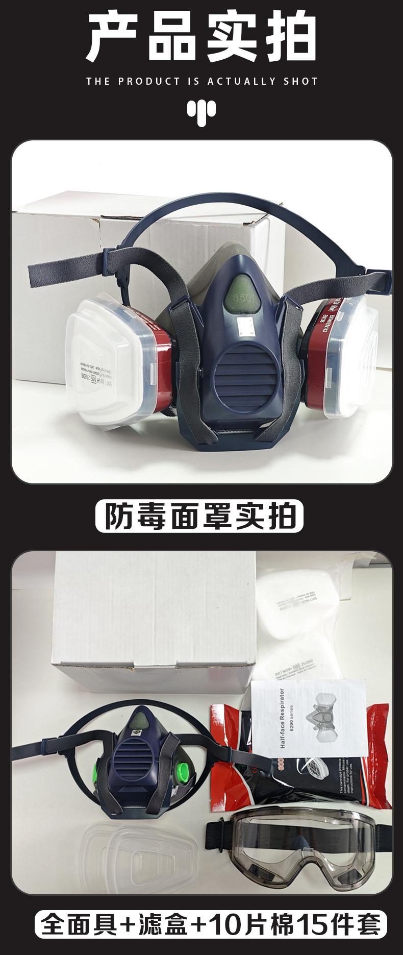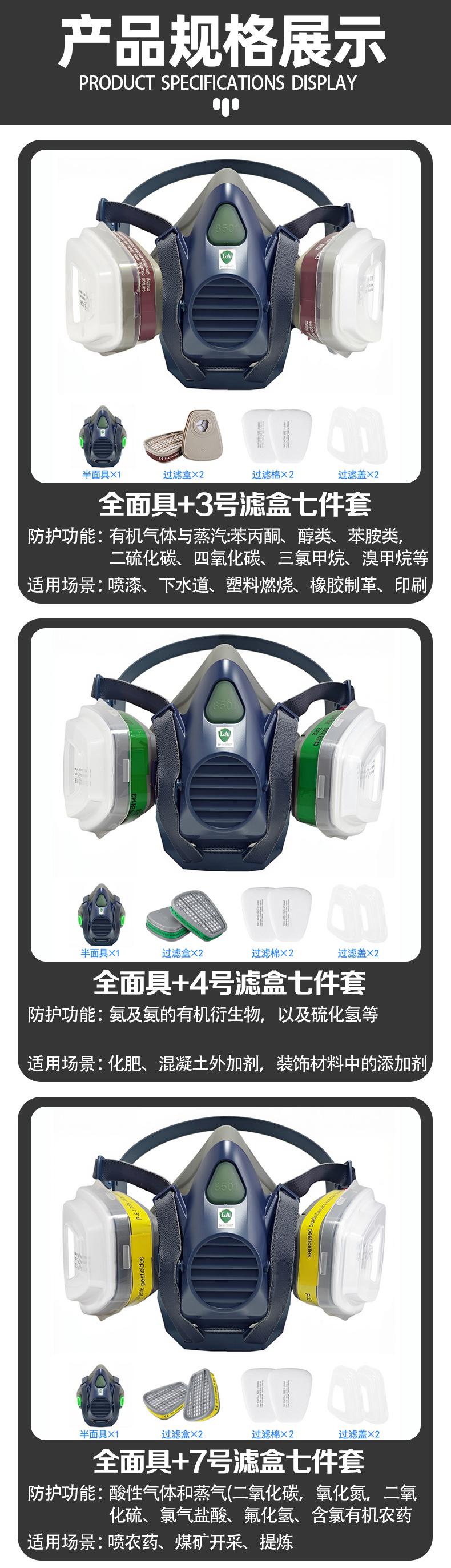 Half mask + no. 3 filter box seven-piece set, Half mask + no. 3 filter box seven-piece set + goggles, Half mas...