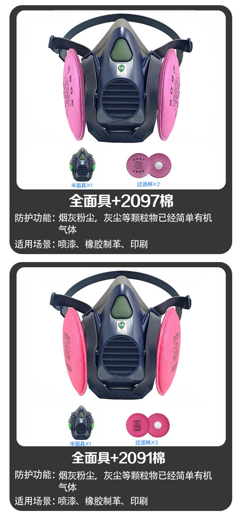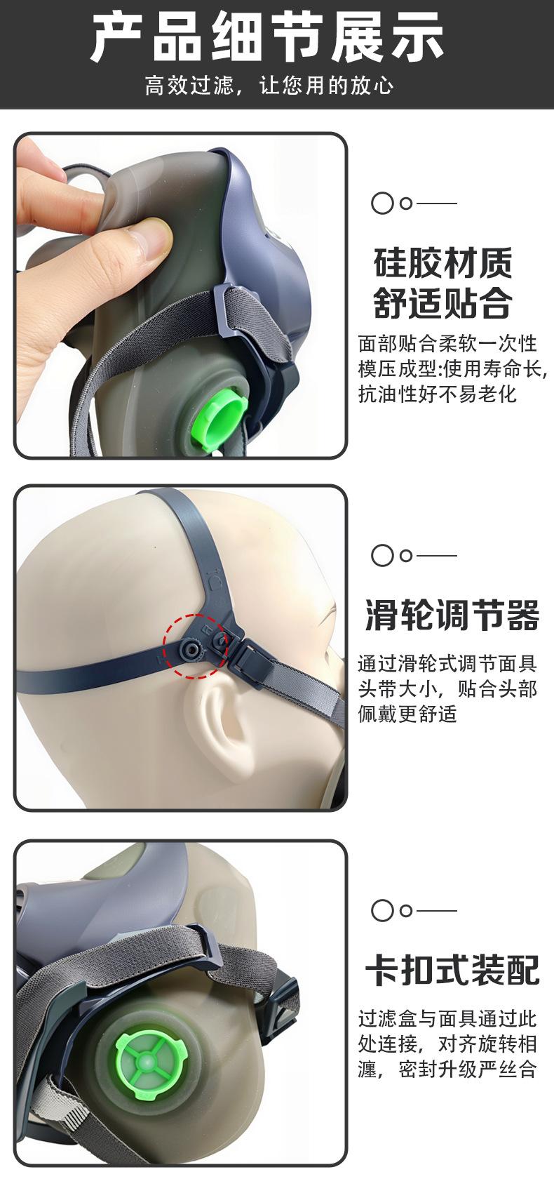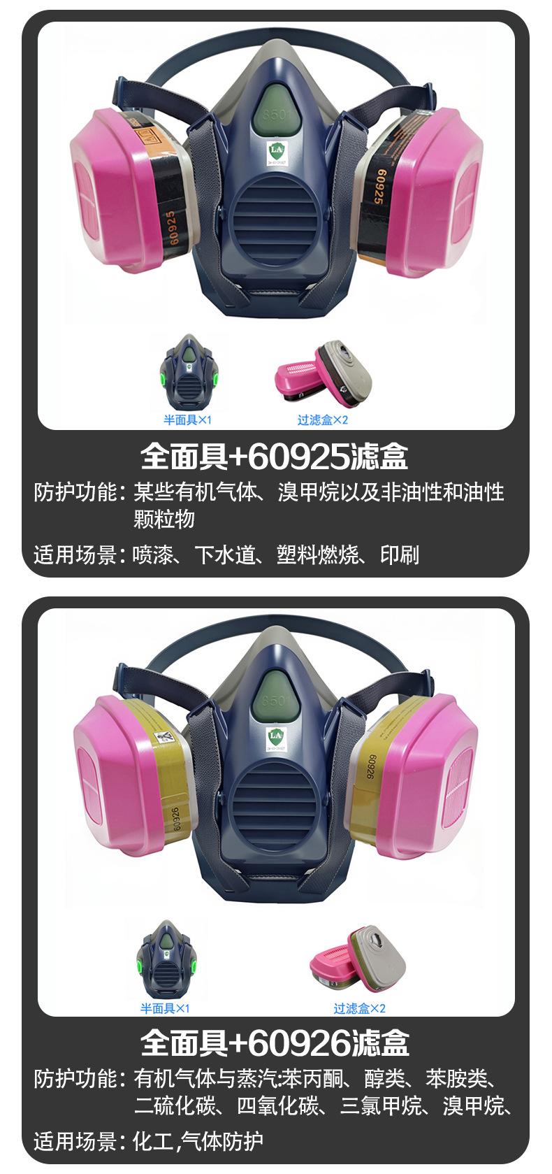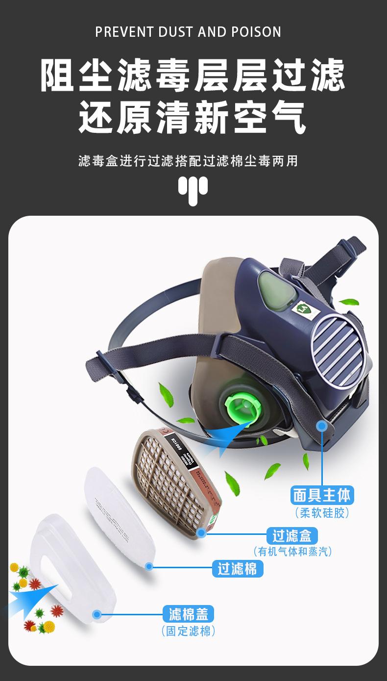 Half mask + no. 3 filter box seven-piece set, Half mask + no. 3 filter box seven-piece set + goggles, Half mas...