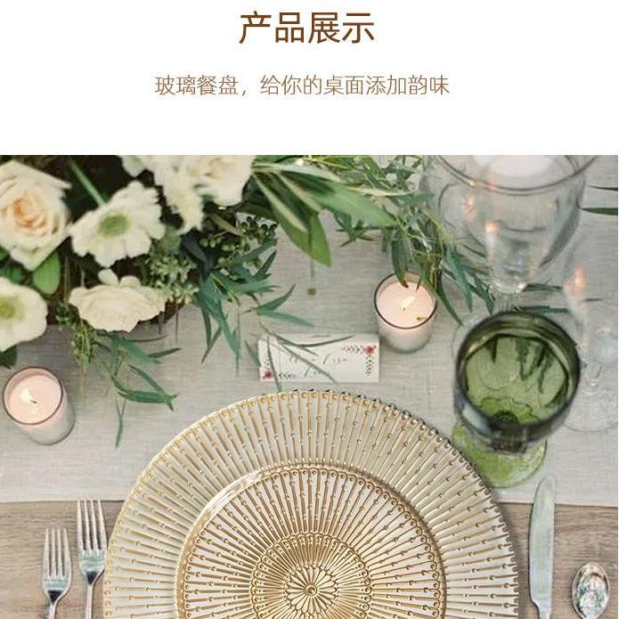 Plato de vidrio punteado de 13 pulgadas plato de vidrio plato transparente plato dorado plato de comida occidental plato de boda plato de decoración de boda fruta postre