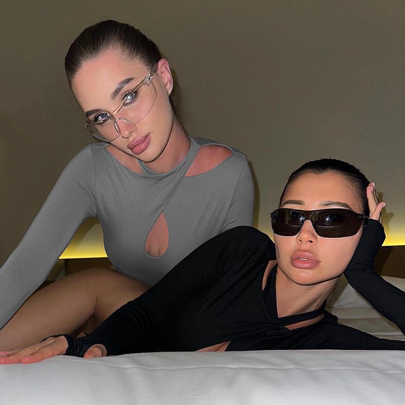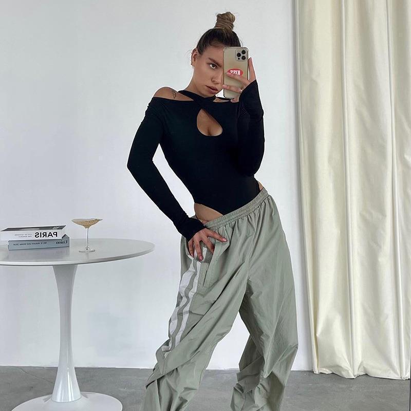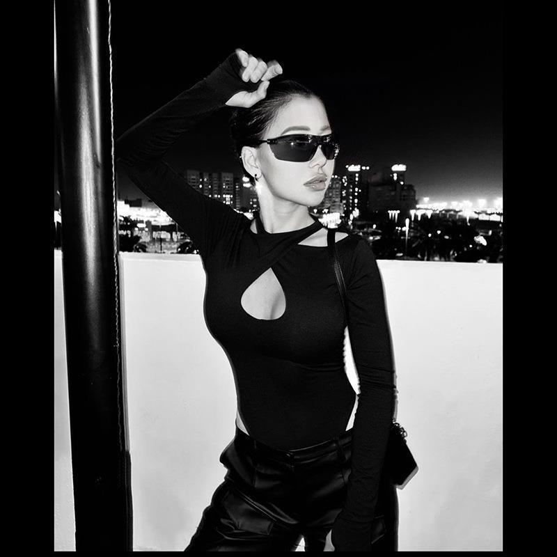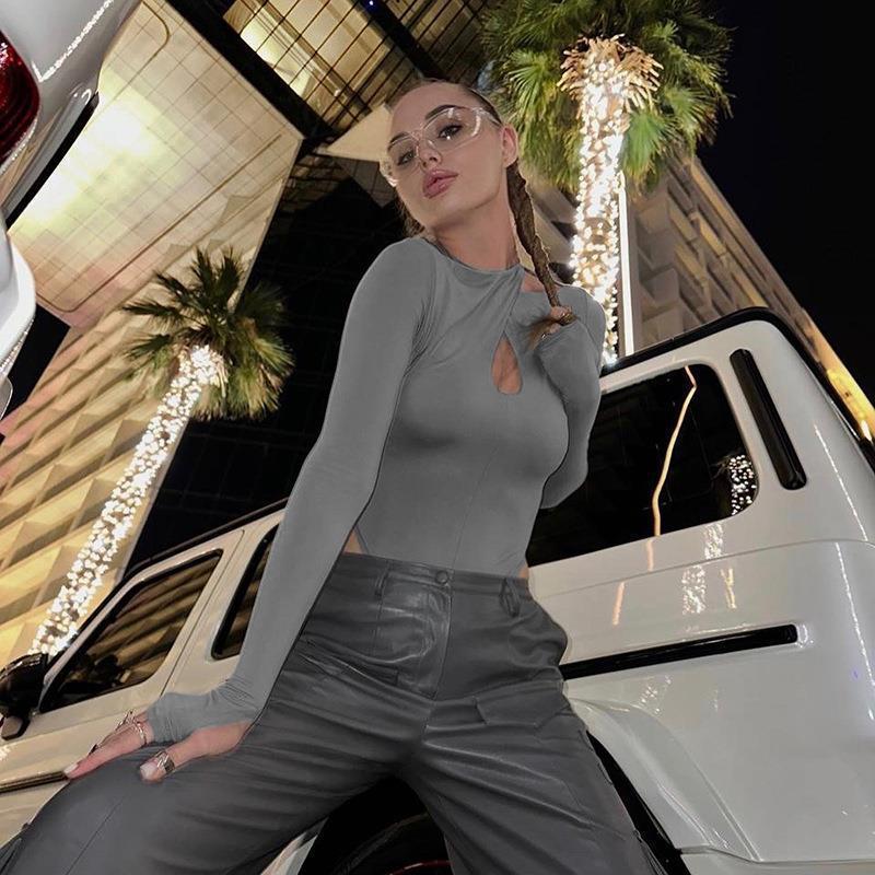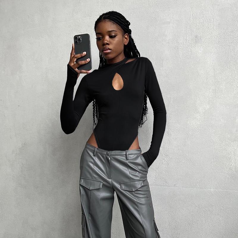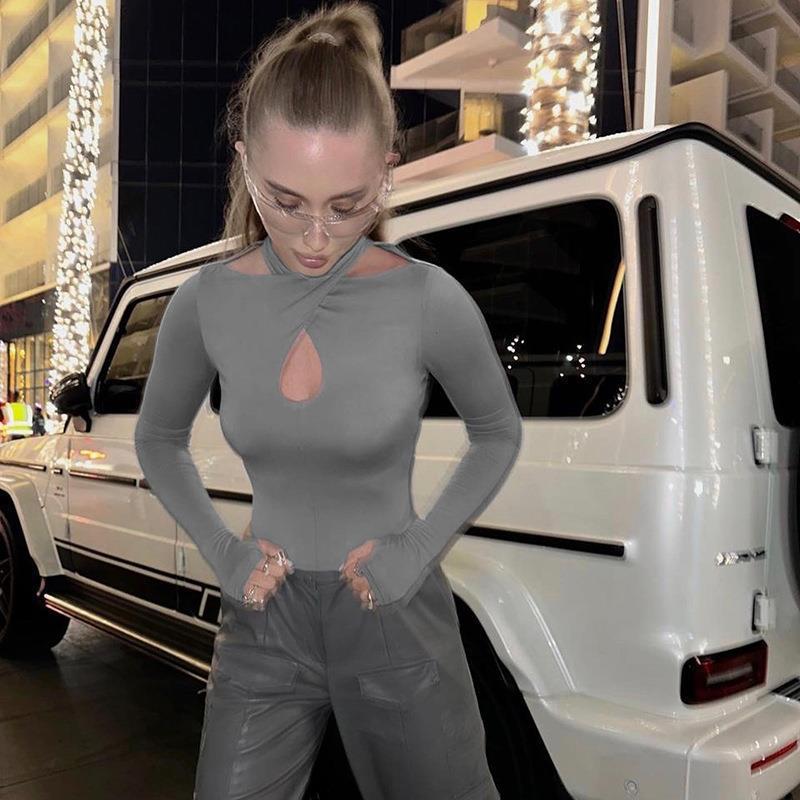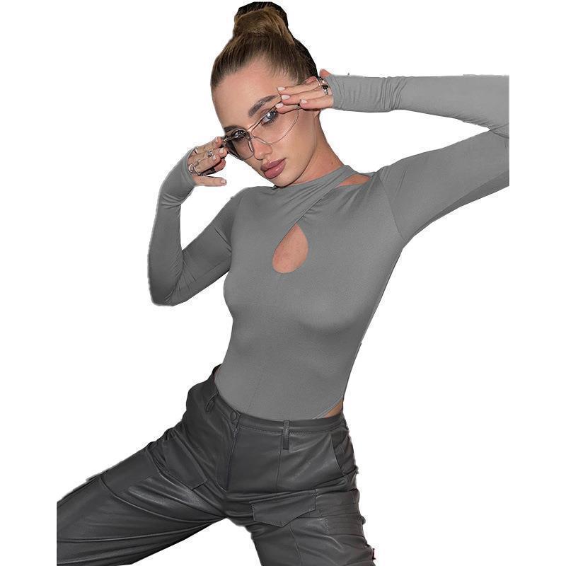 Verano 2025 Nuevo Simple Personalidad Moda Calado Sexy Chica Caliente Adelgazante Básico Cruzado Manga Larga Body
