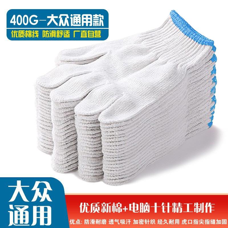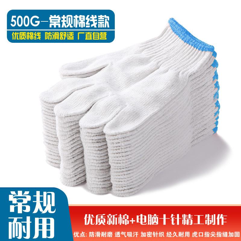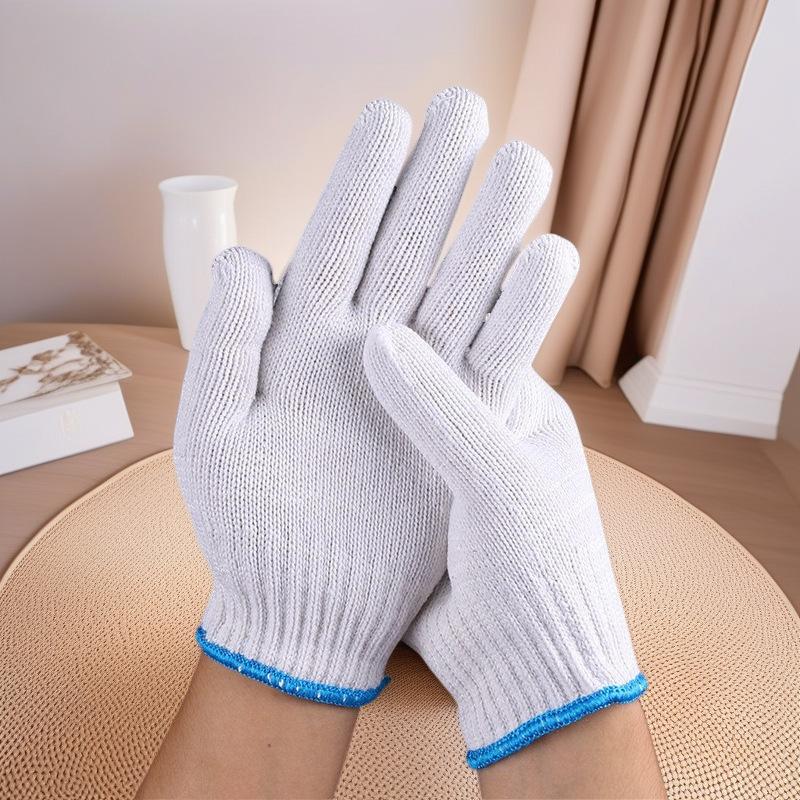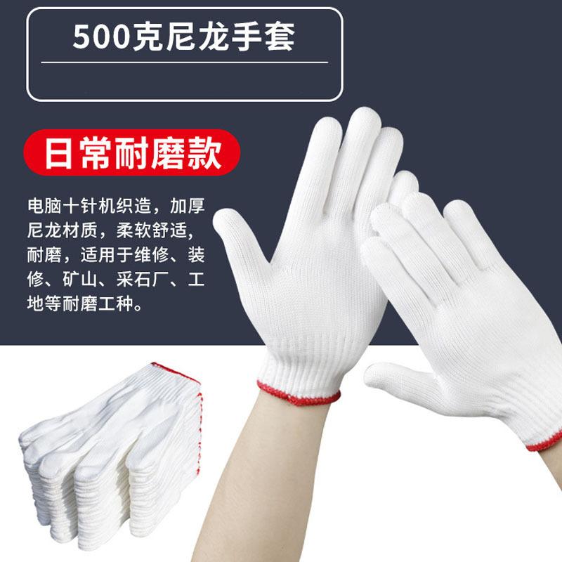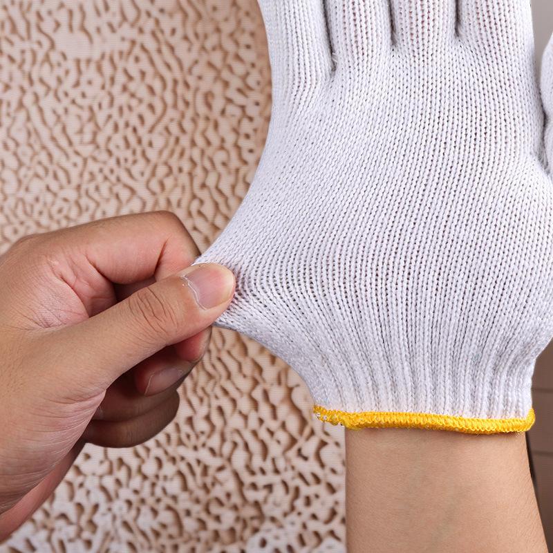 Guantes de protección laboral guantes de algodón guantes de tela de hilo de nailon engrosado resistentes al desgaste y duraderos trabajo hombres y mujeres guantes blancos